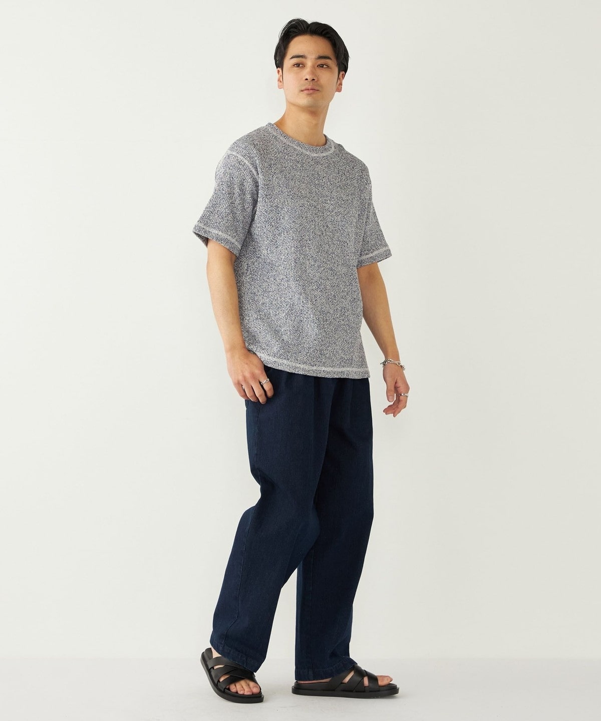 普通のTシャツとは違った雰囲気をコーディネートに与えてくれる1枚です。