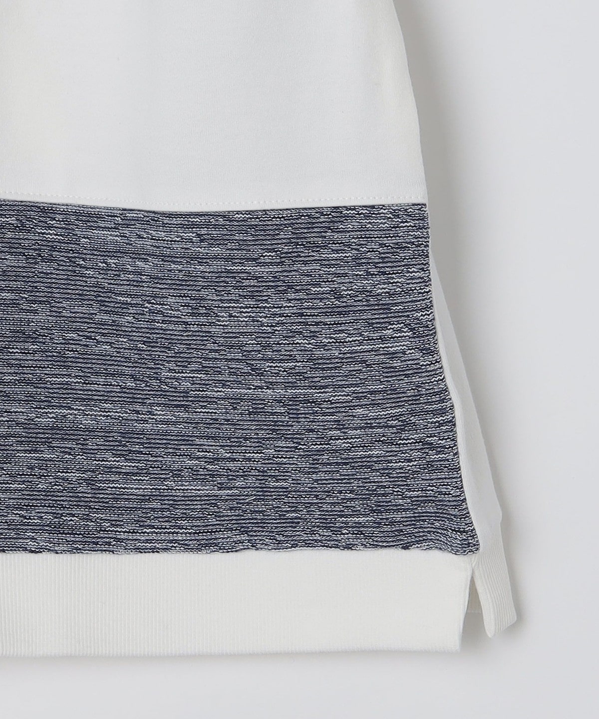 ニットのような表情のジャージ素材を、太めのピッチで切り替えました。