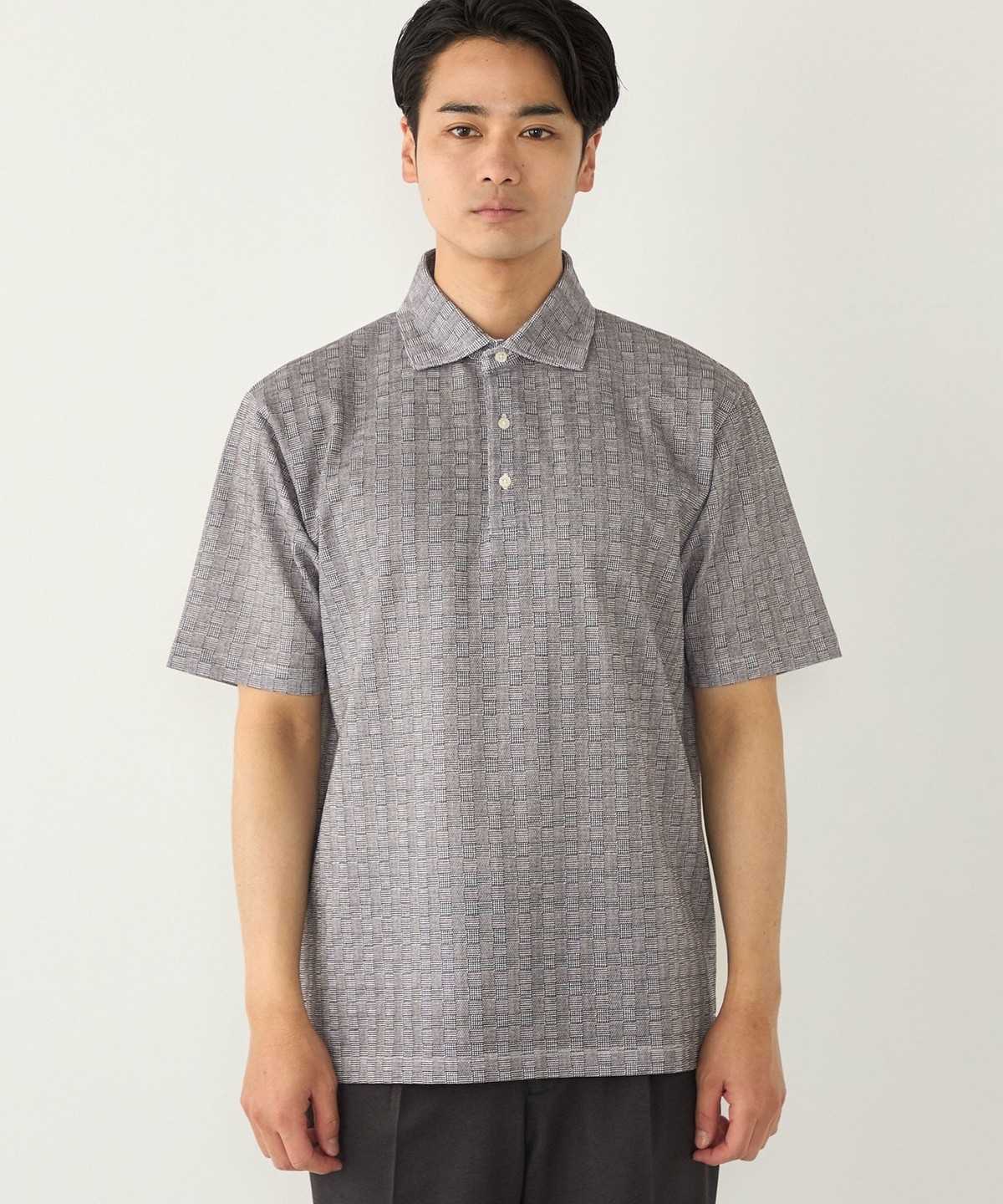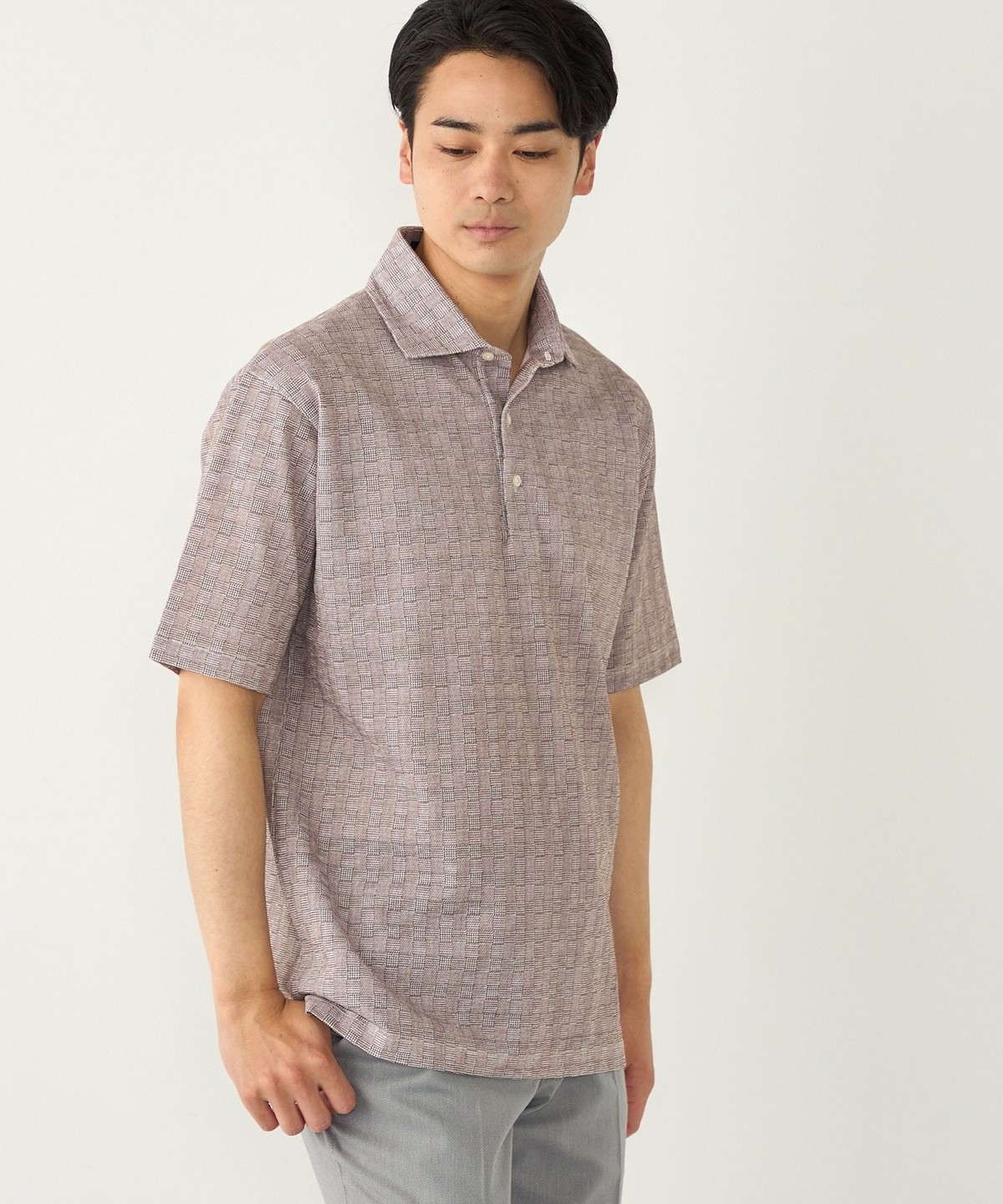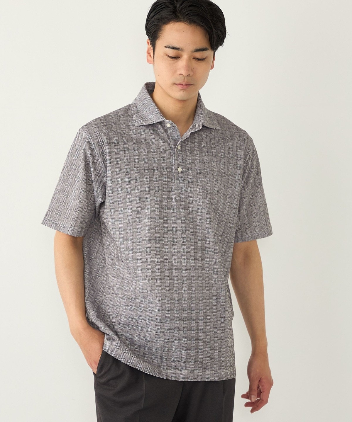 24. SHIPS Colors:〈吸水速乾〉カノコ グレンチェック ワイドカラー ポロシャツ