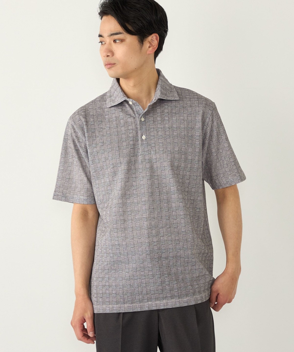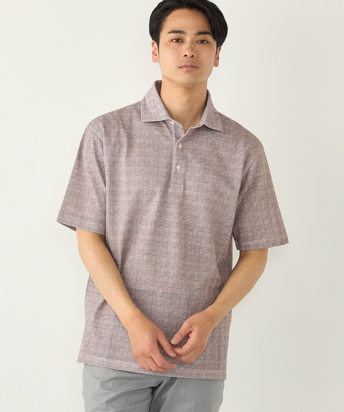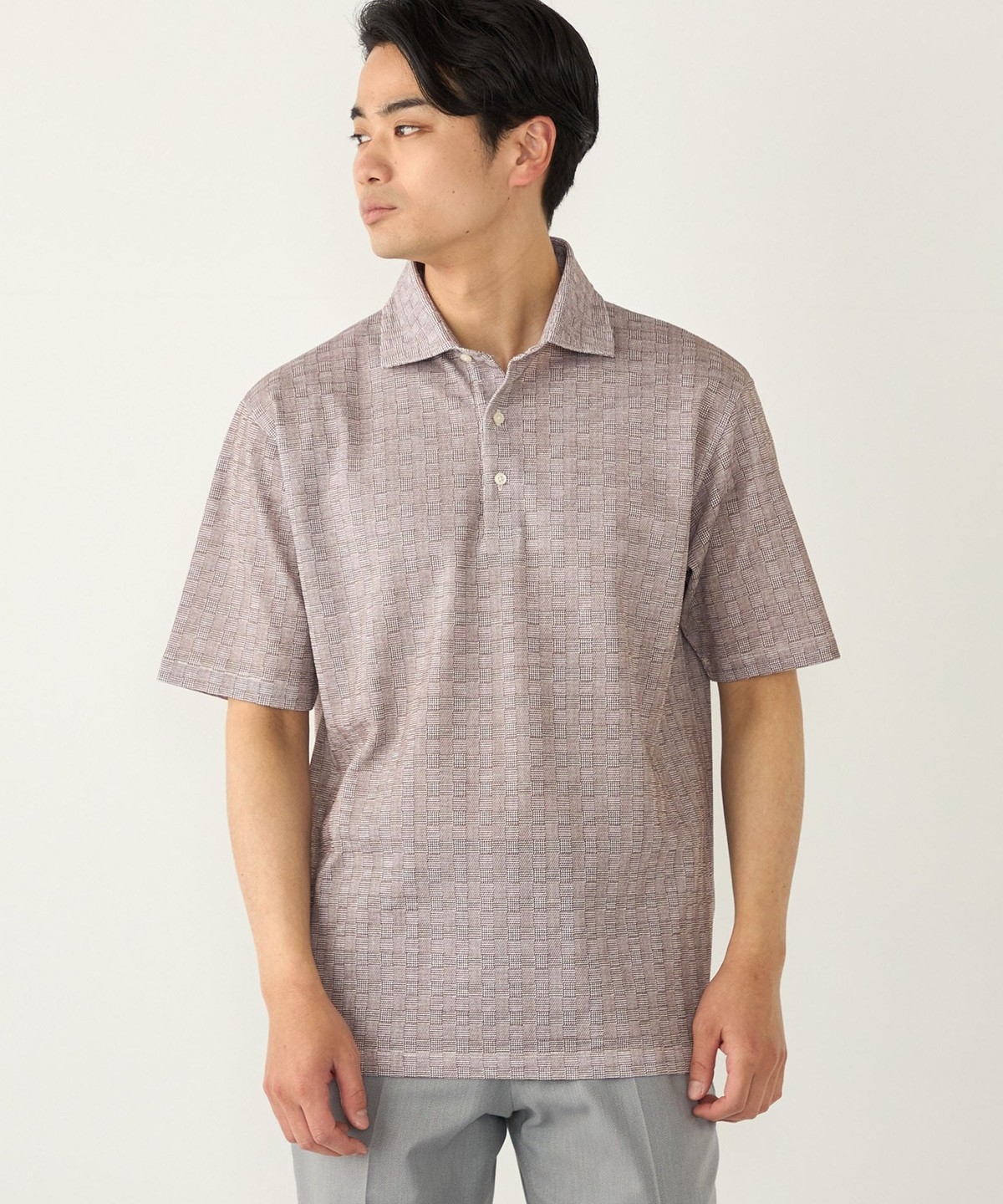24. SHIPS Colors:〈吸水速乾〉カノコ グレンチェック ワイドカラー ポロシャツ