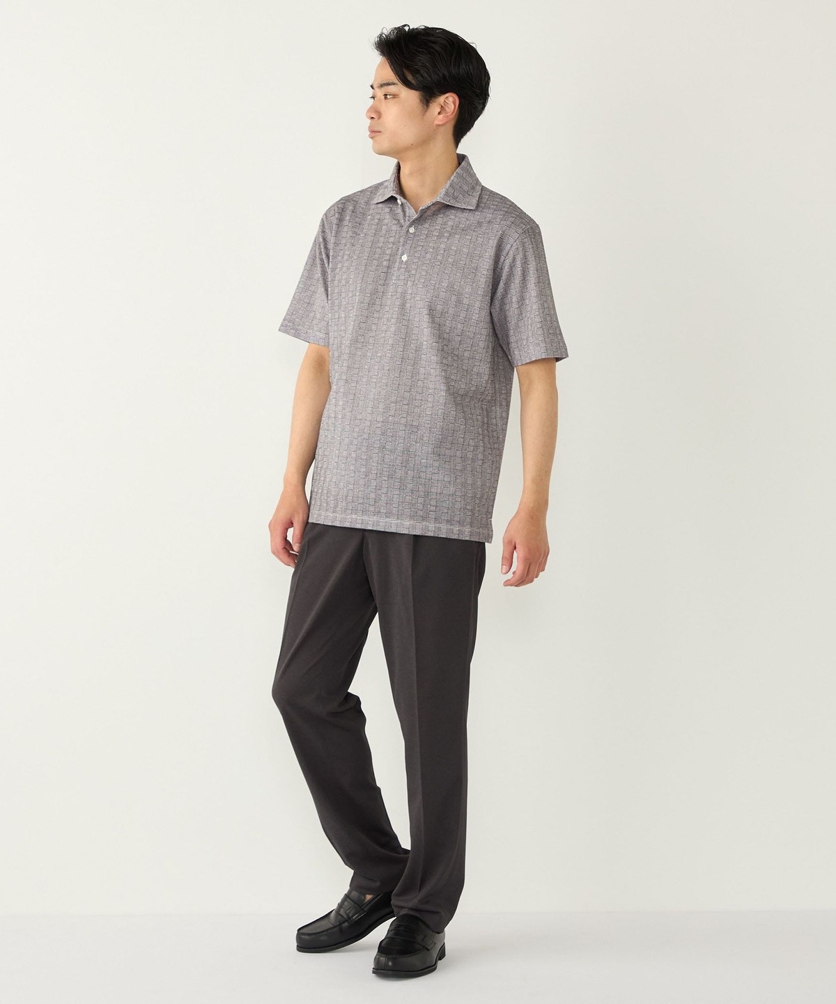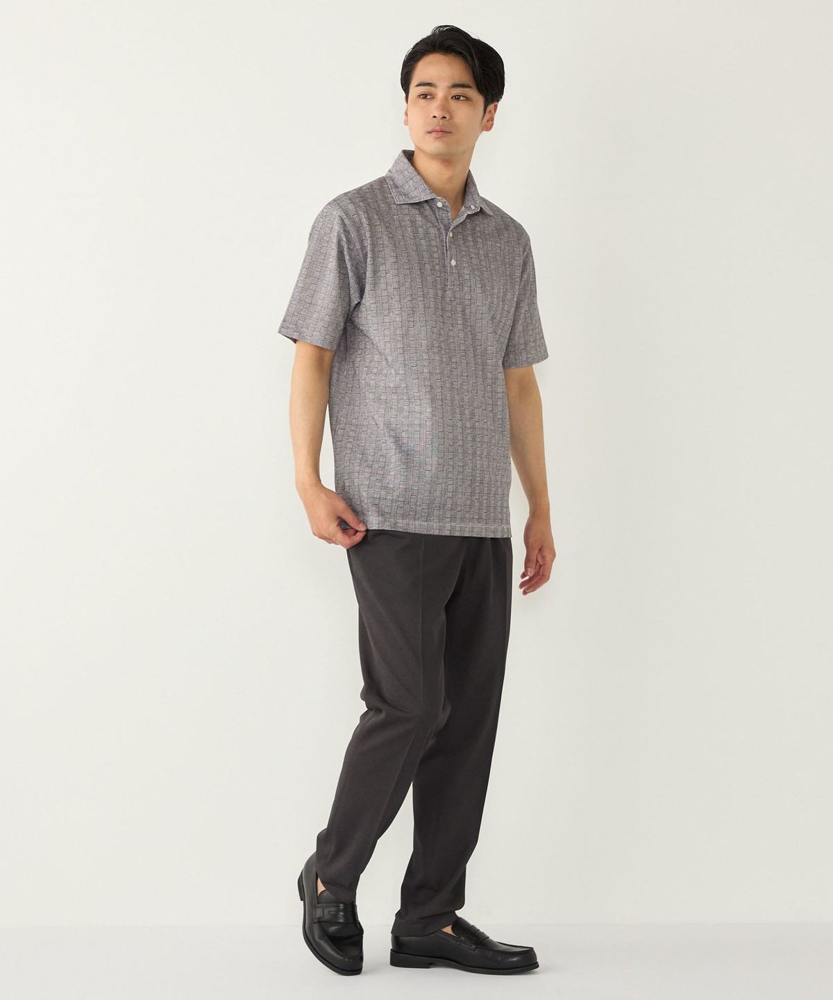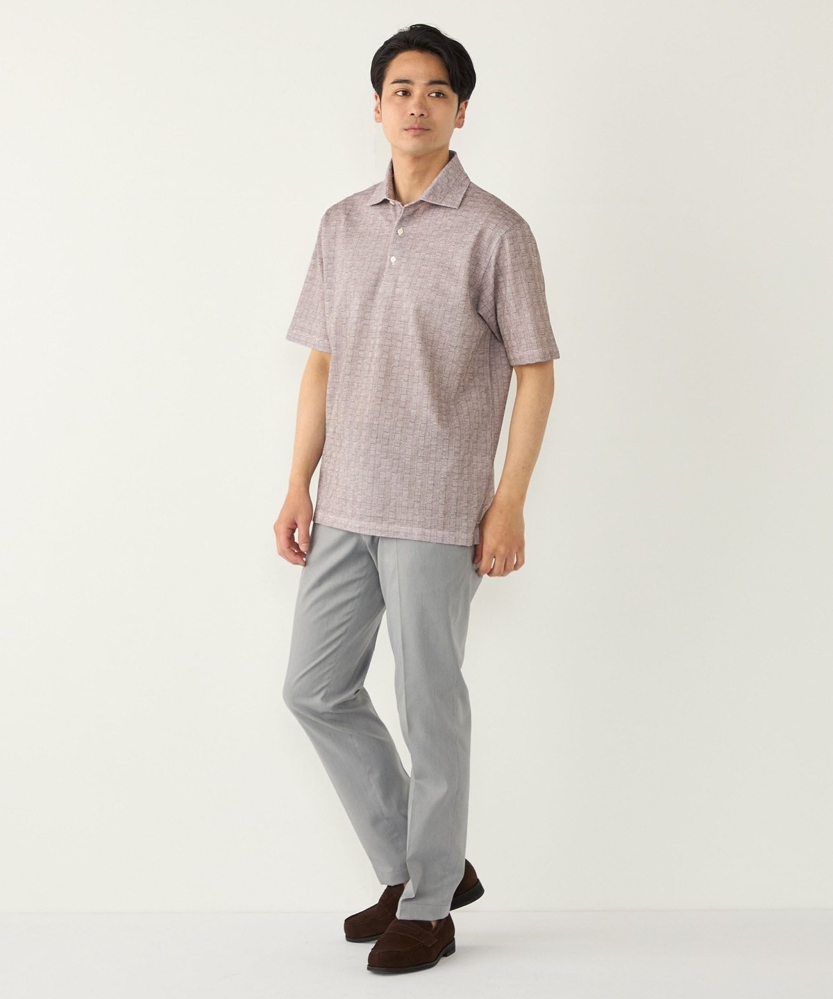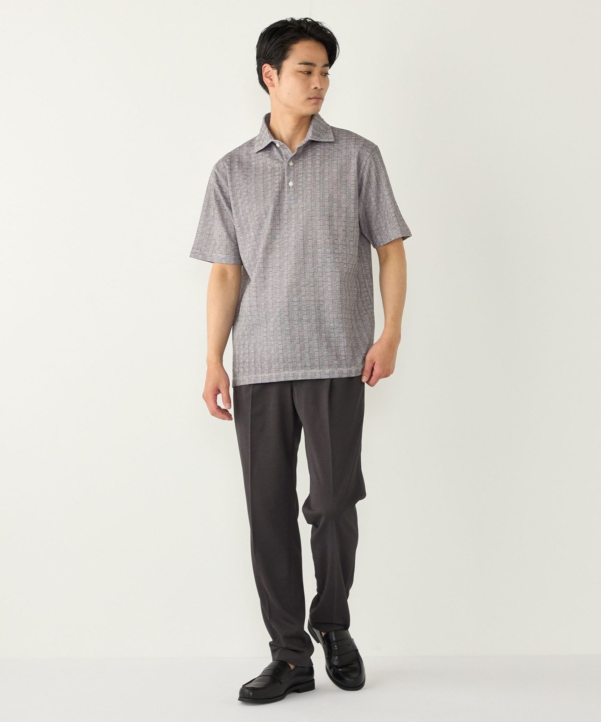 オンオフ兼用で使いやすい、全面にプリントを施したポロシャツ。