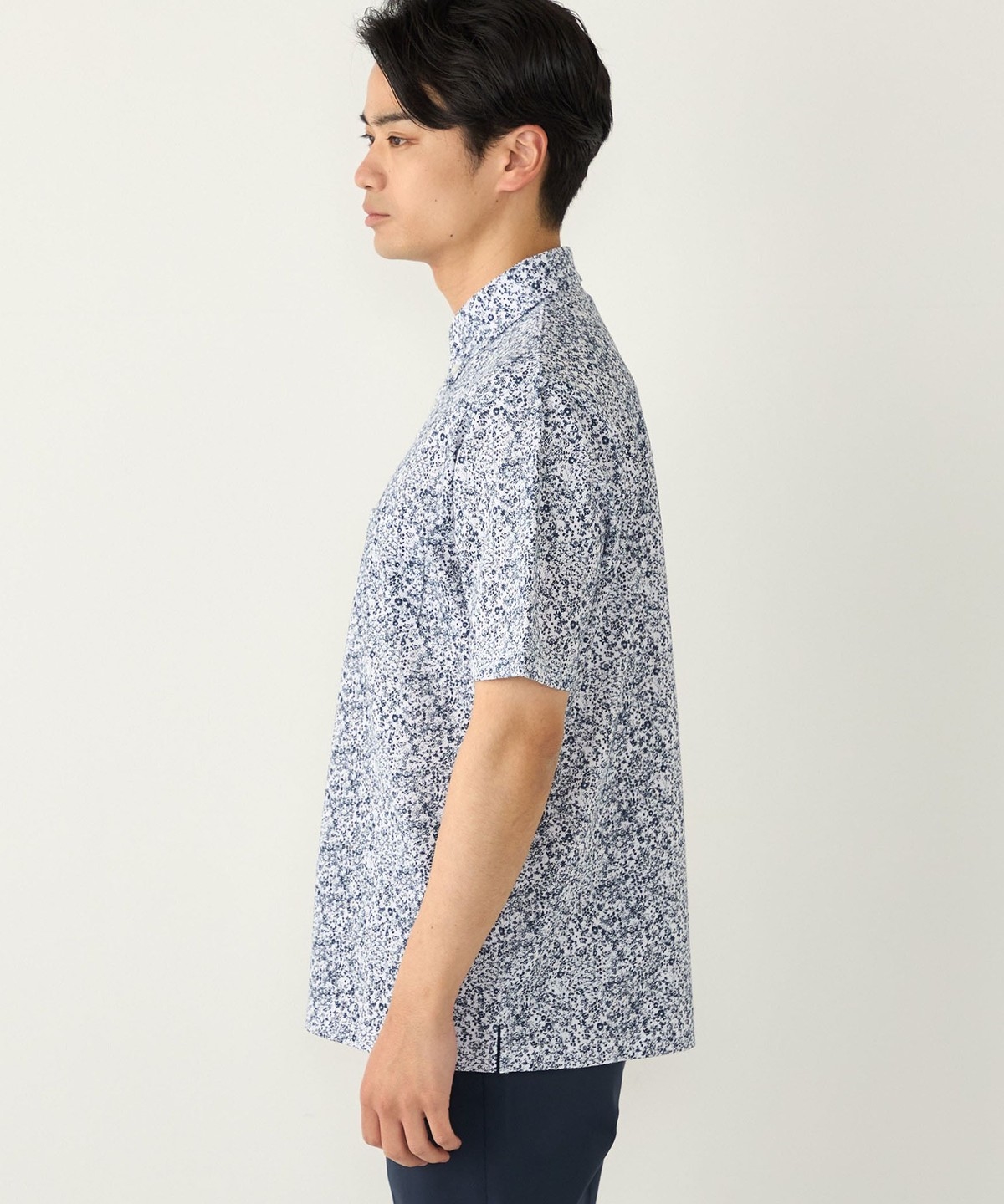 コットンとポリエステルの混紡素材に、小花柄をプリントした爽やかな表情の1枚。