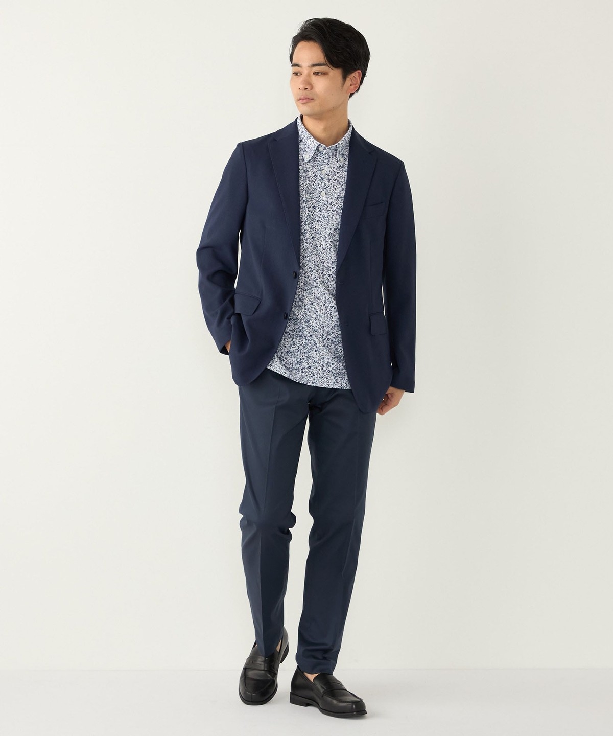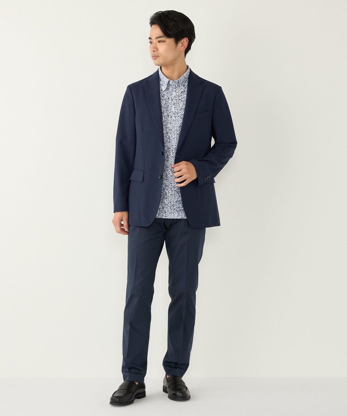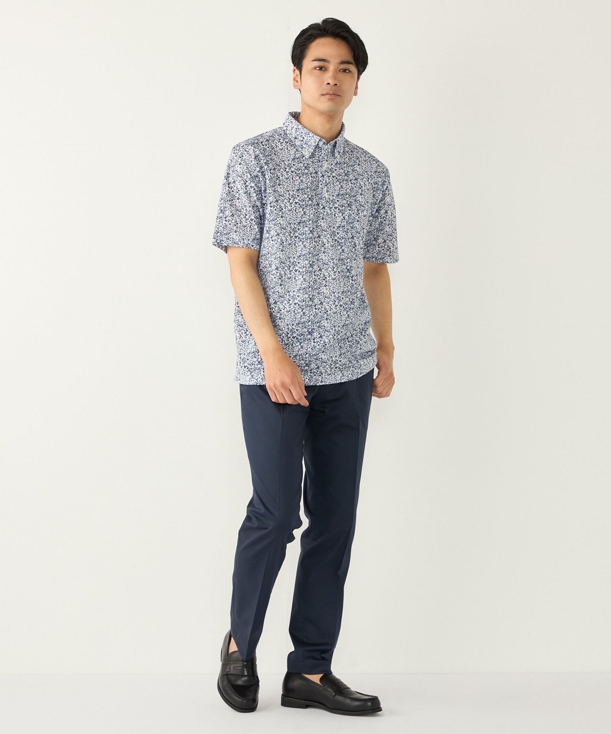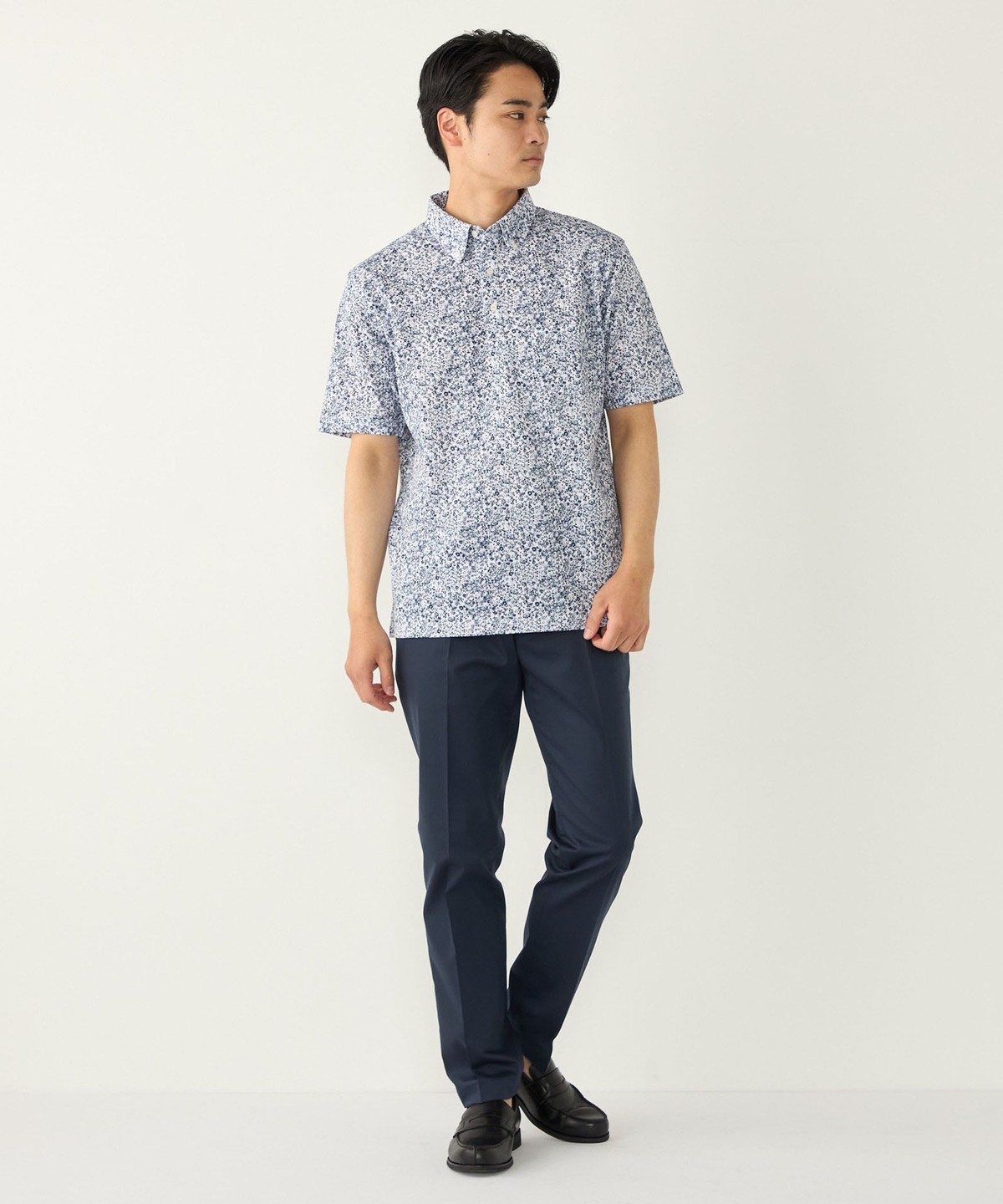 適度な存在感の小花柄が、無地のポロシャツとは違ったアクセントを着こなしにあたえてくれます。