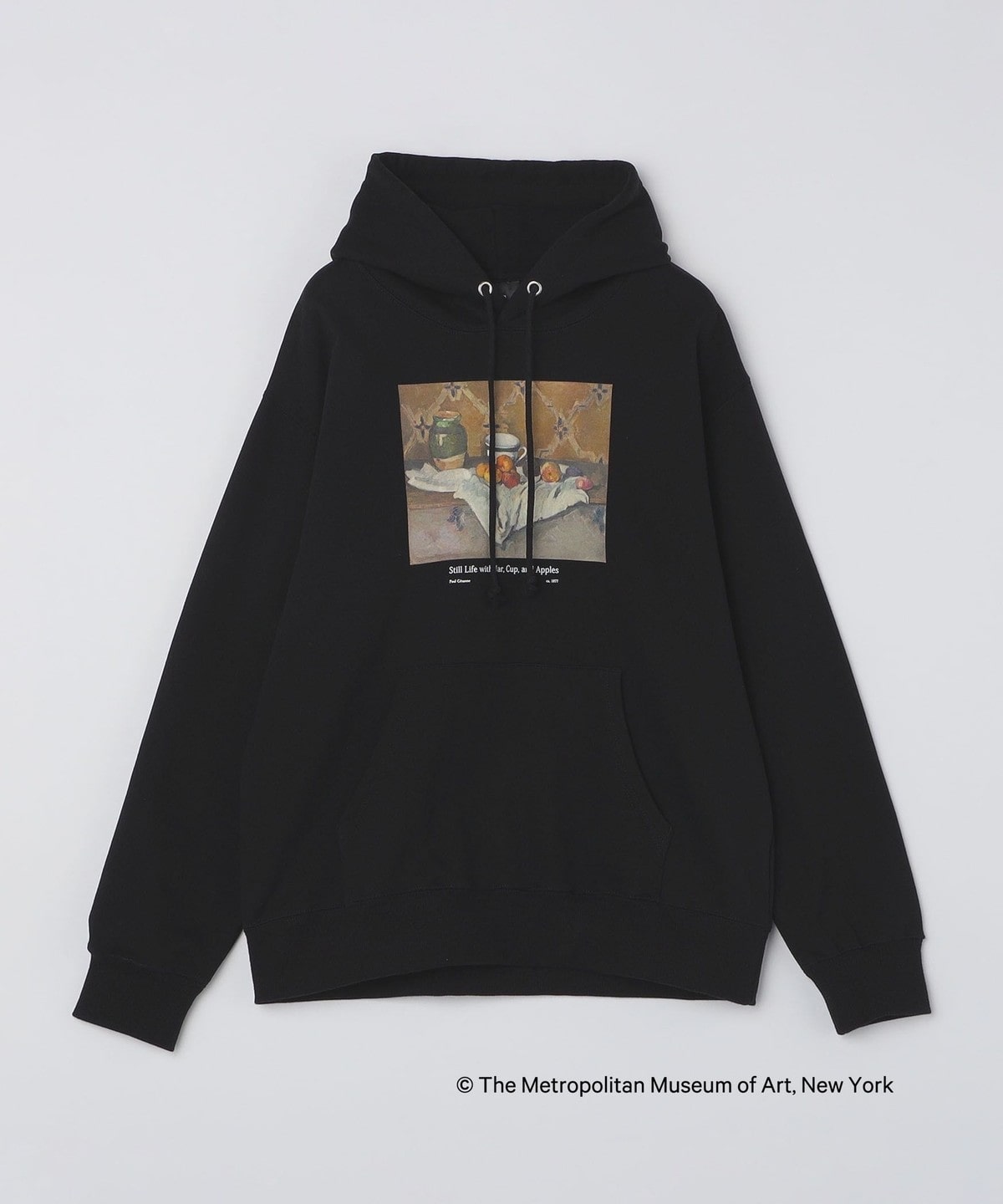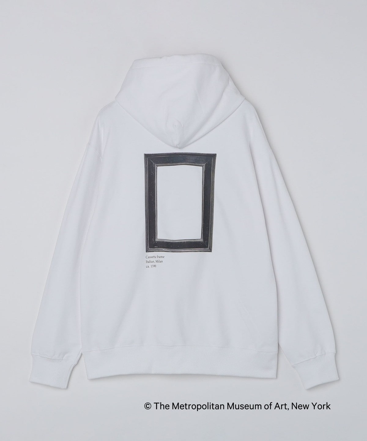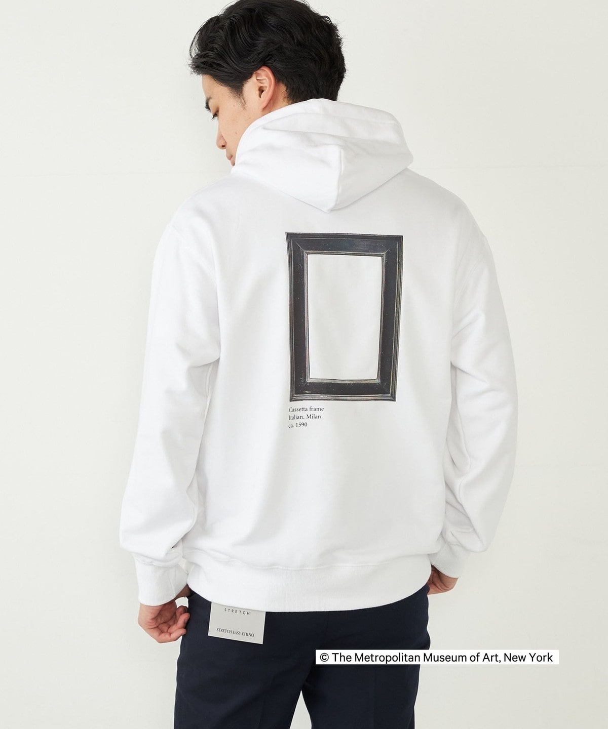 歴史的な絵画や額縁、「THE MET」のロゴなど、コーディネートの主役になってくれるパーカーです。