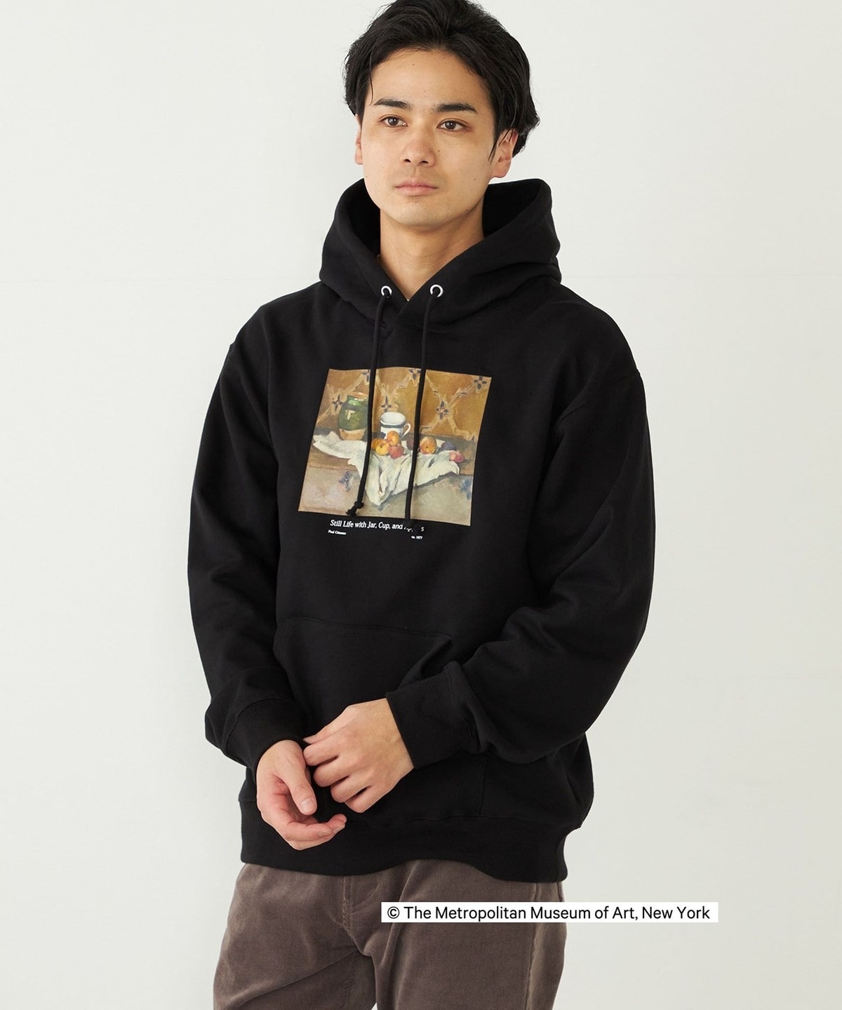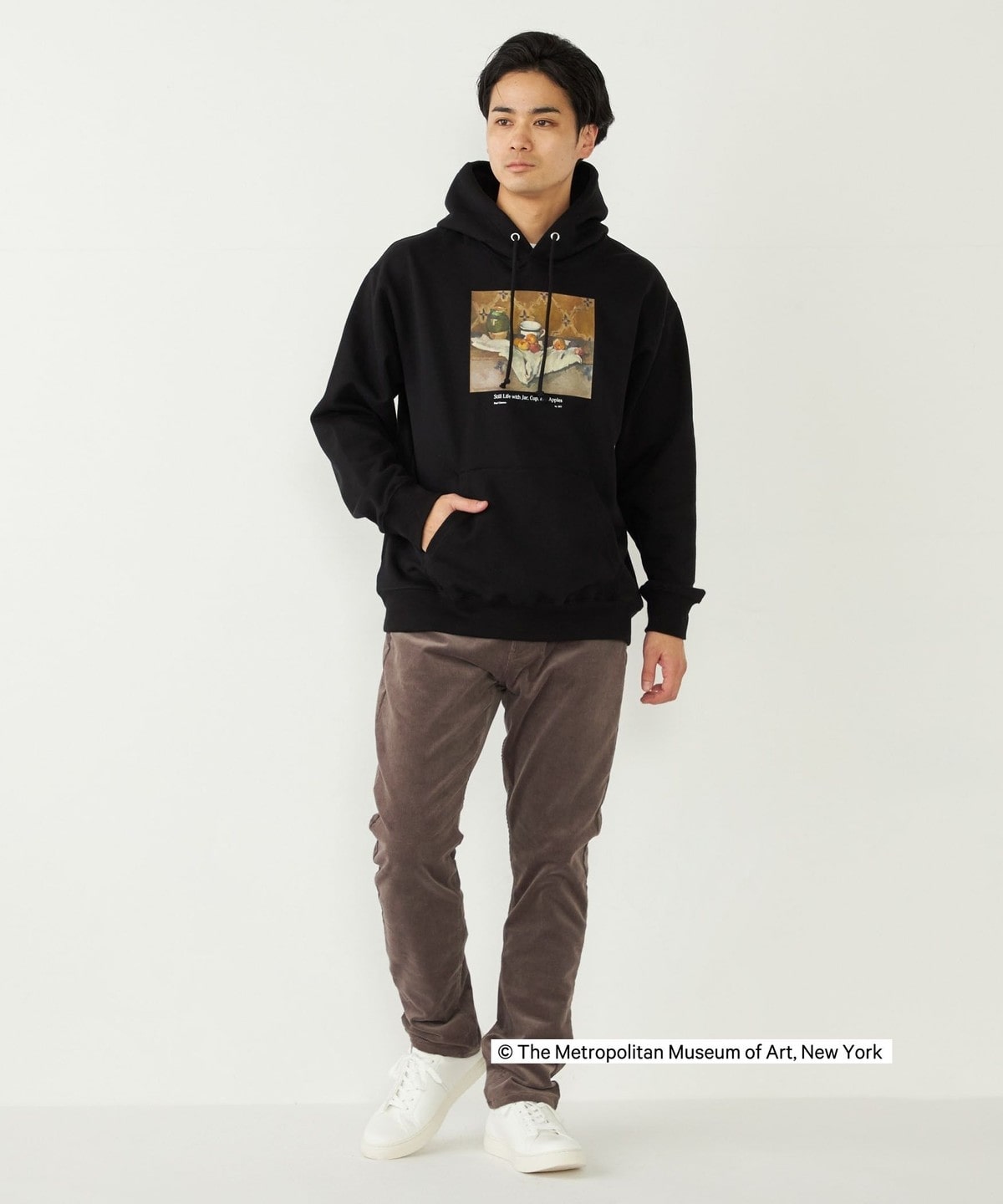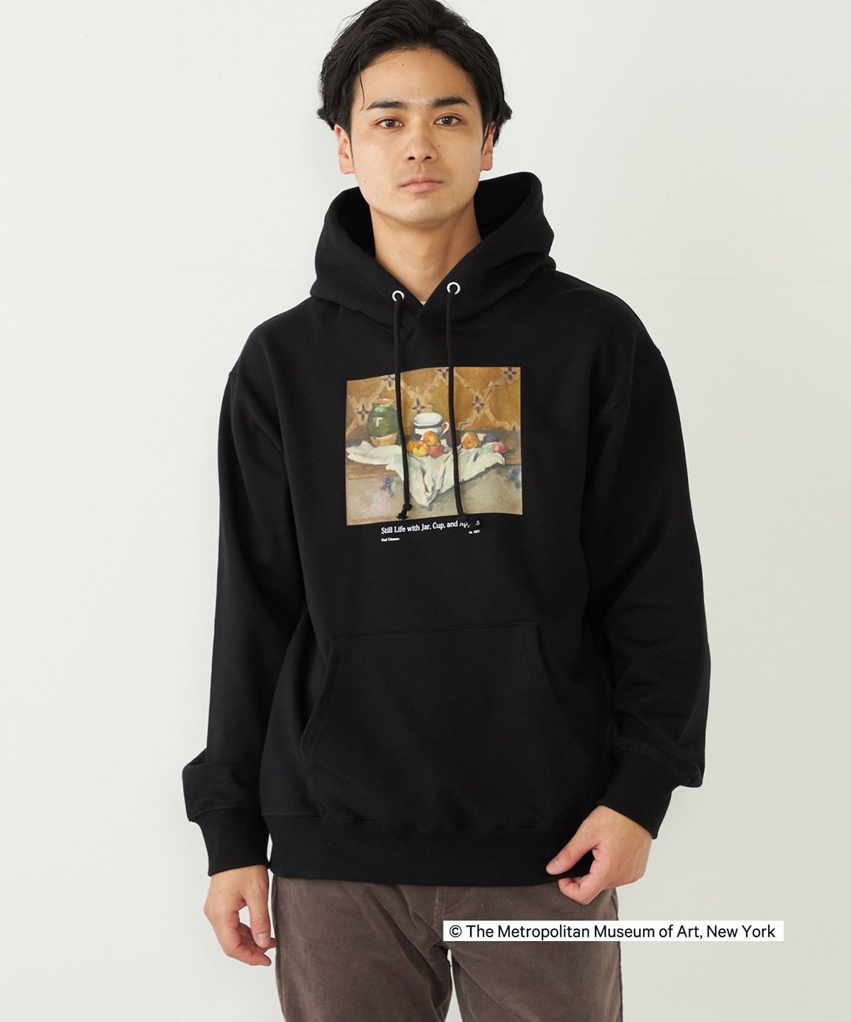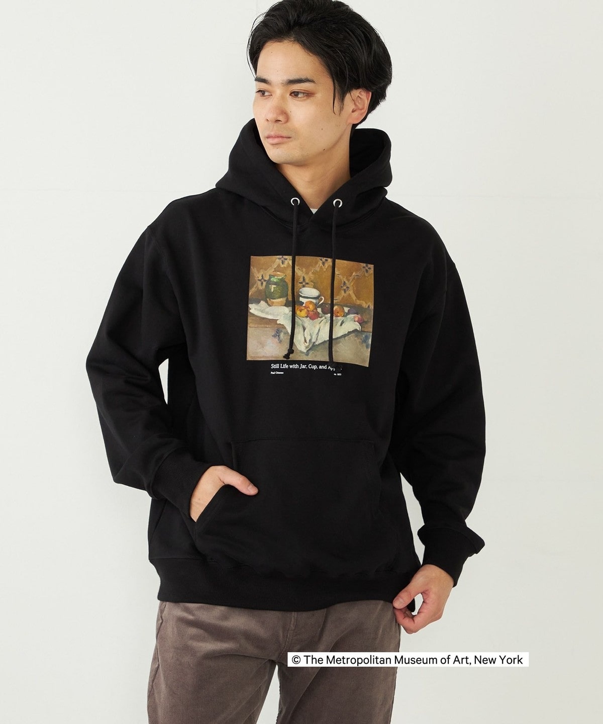 歴史的な絵画や額縁、「THE MET」のロゴなど、コーディネートの主役になってくれるパーカーです。
