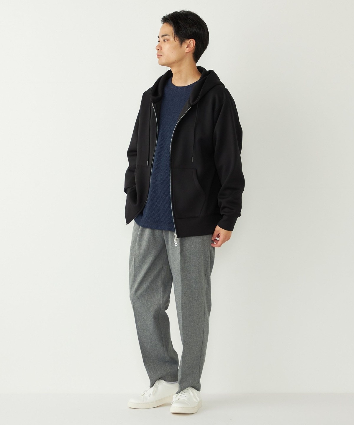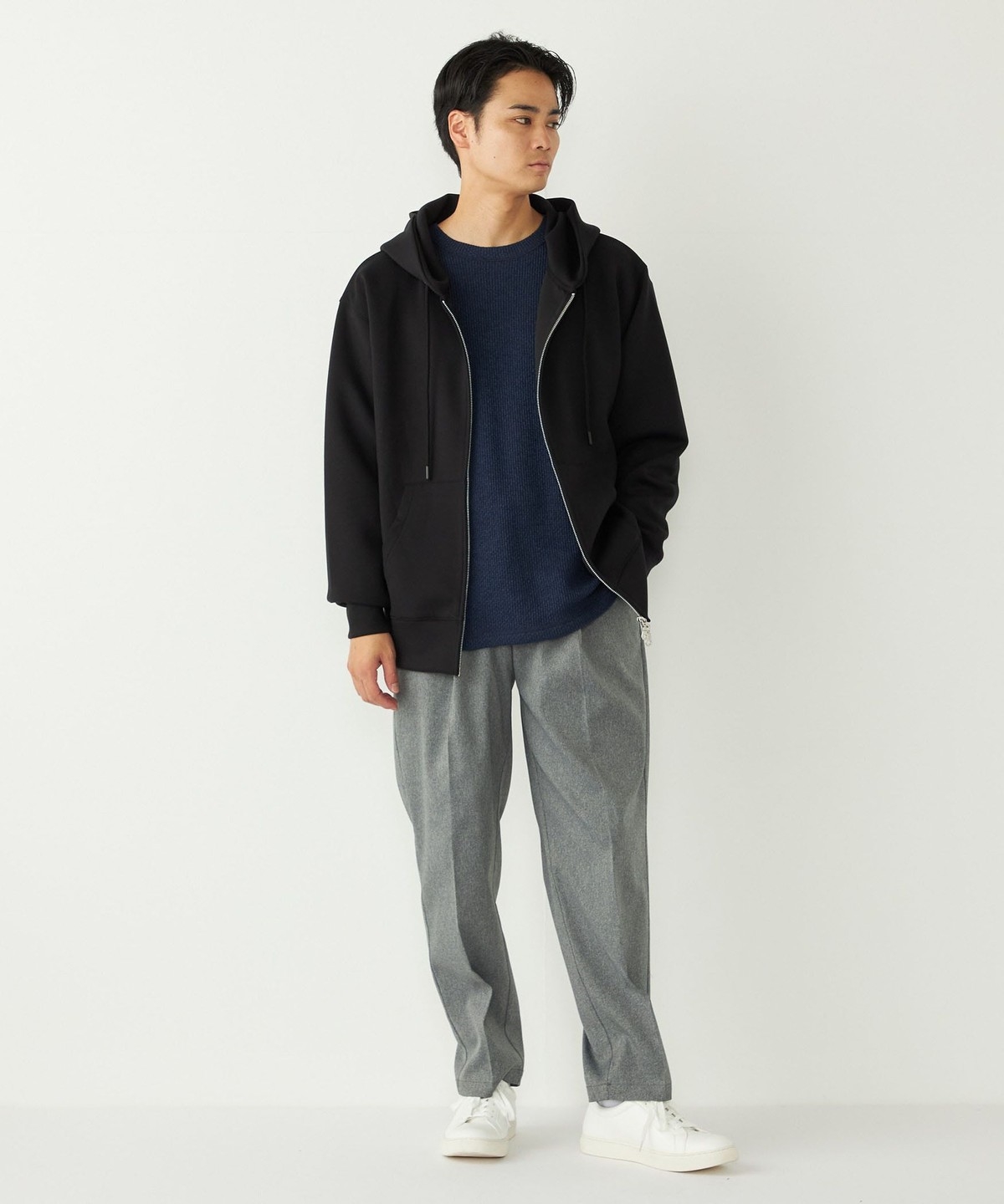 エアリーで柔らかなタッチ感のジャージー素材を使用したジップパーカー。