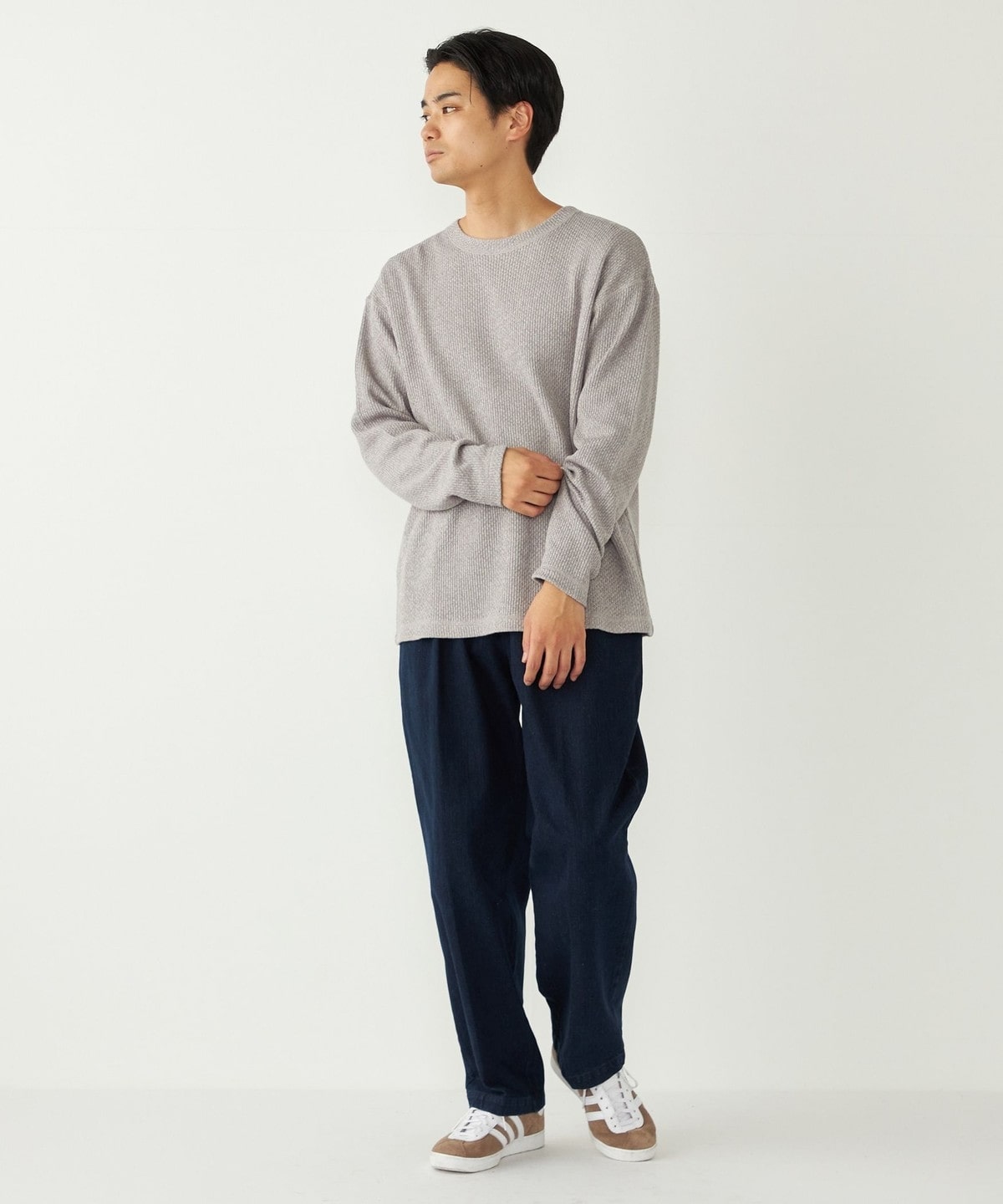 ワイドパンツながら裾にかけてテーパードをかけることで、すっきりとしたシルエットに仕上げました。