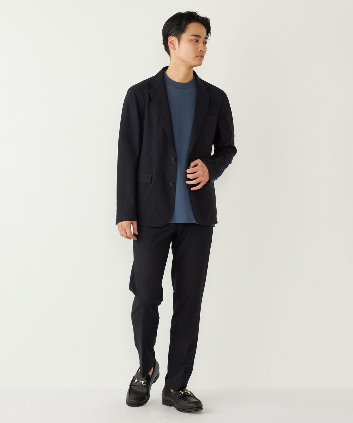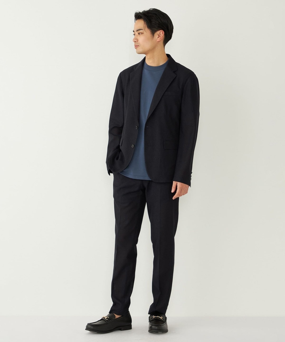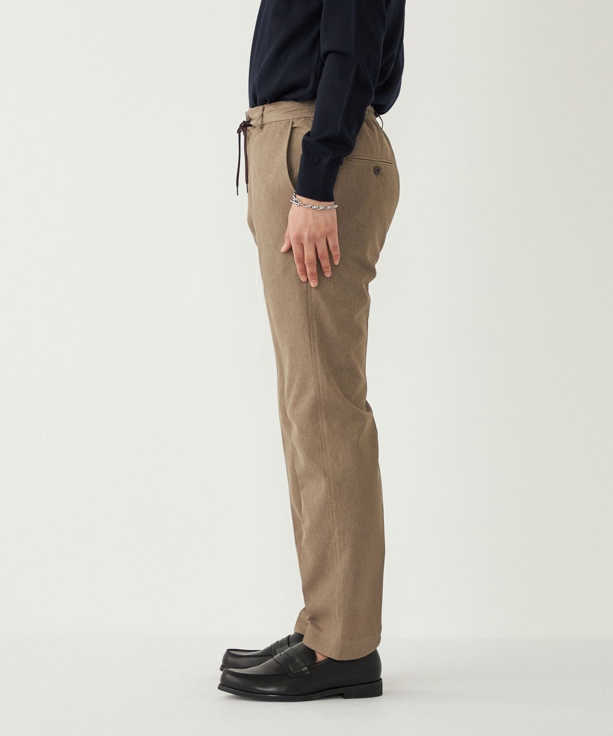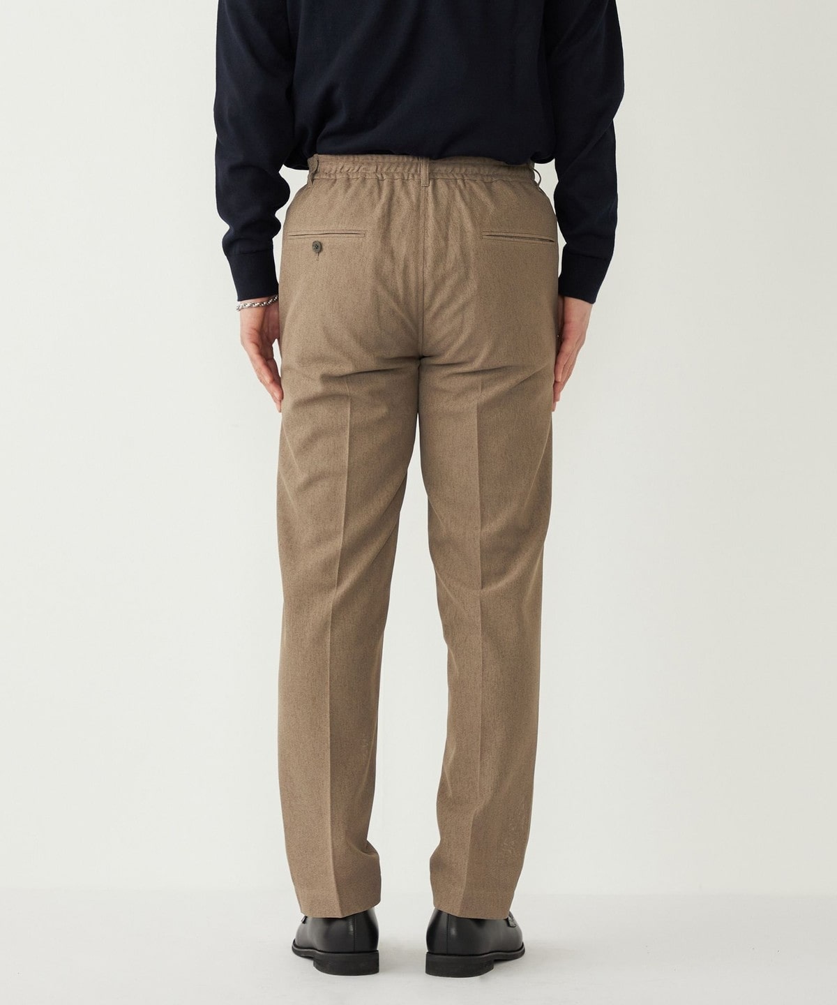 リラックス感のある素材感と仕様ながら、やや細身のシルエットで着こなしをきれいめにまとめてくれます。
