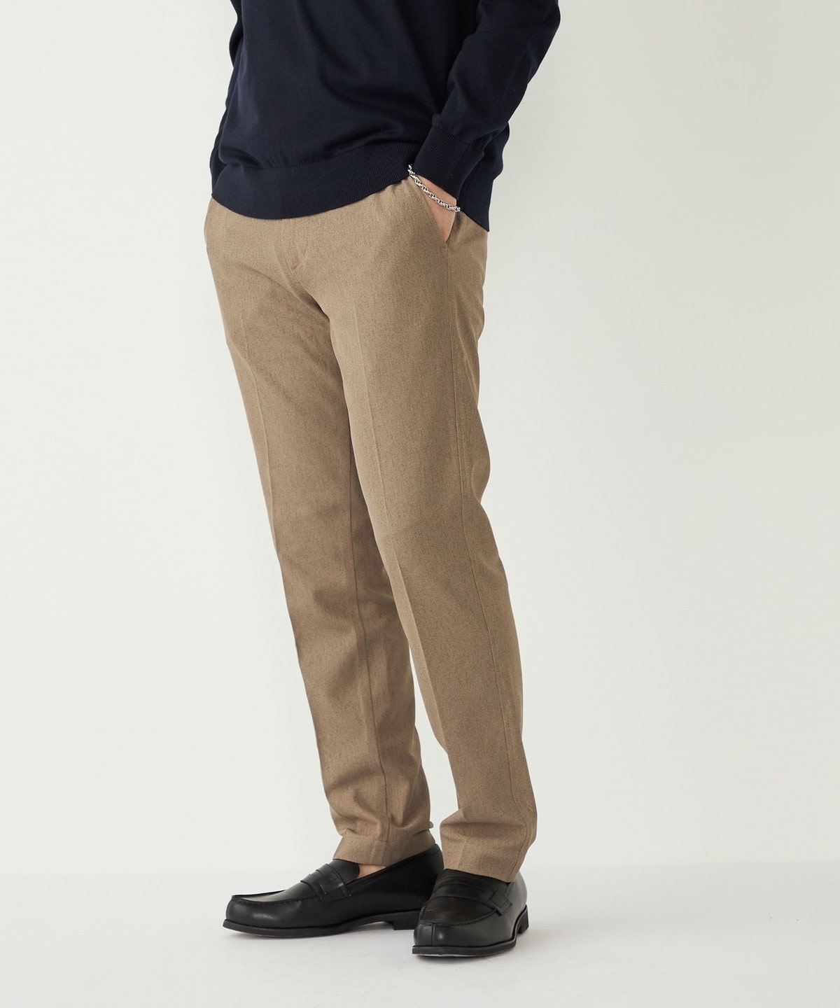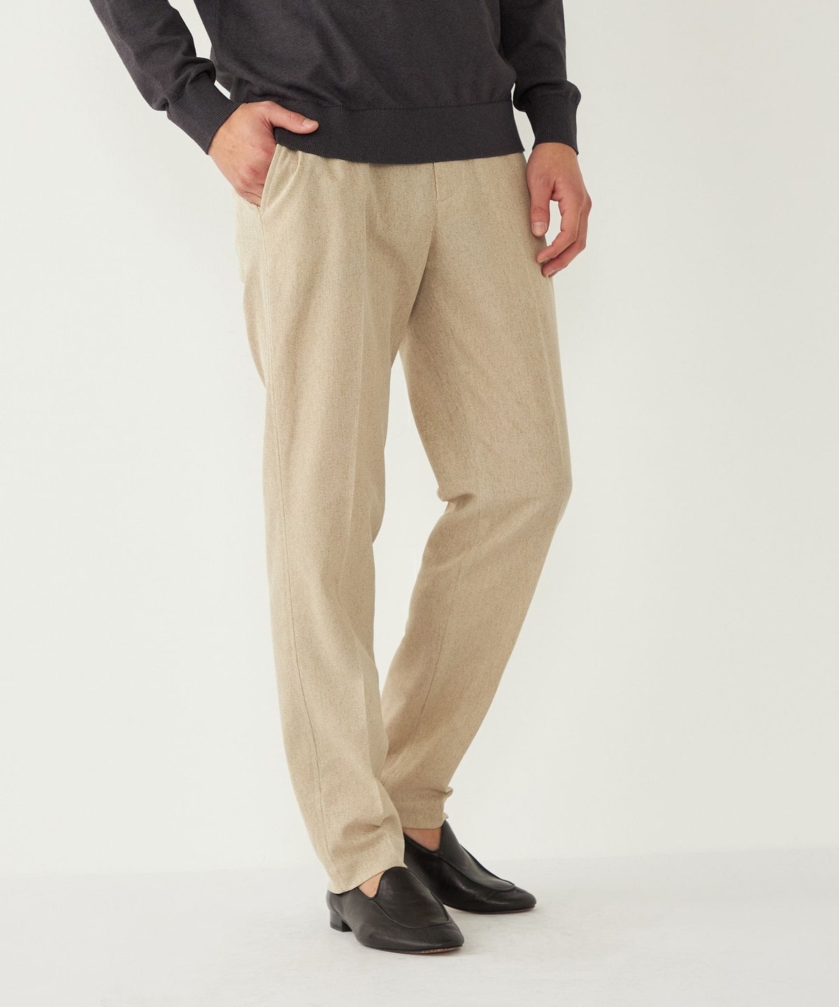 SHIPS Colorsで毎シーズンご好評いただいている「シャリルジャージー」素材を使用したセットアップ対応のスラックス。