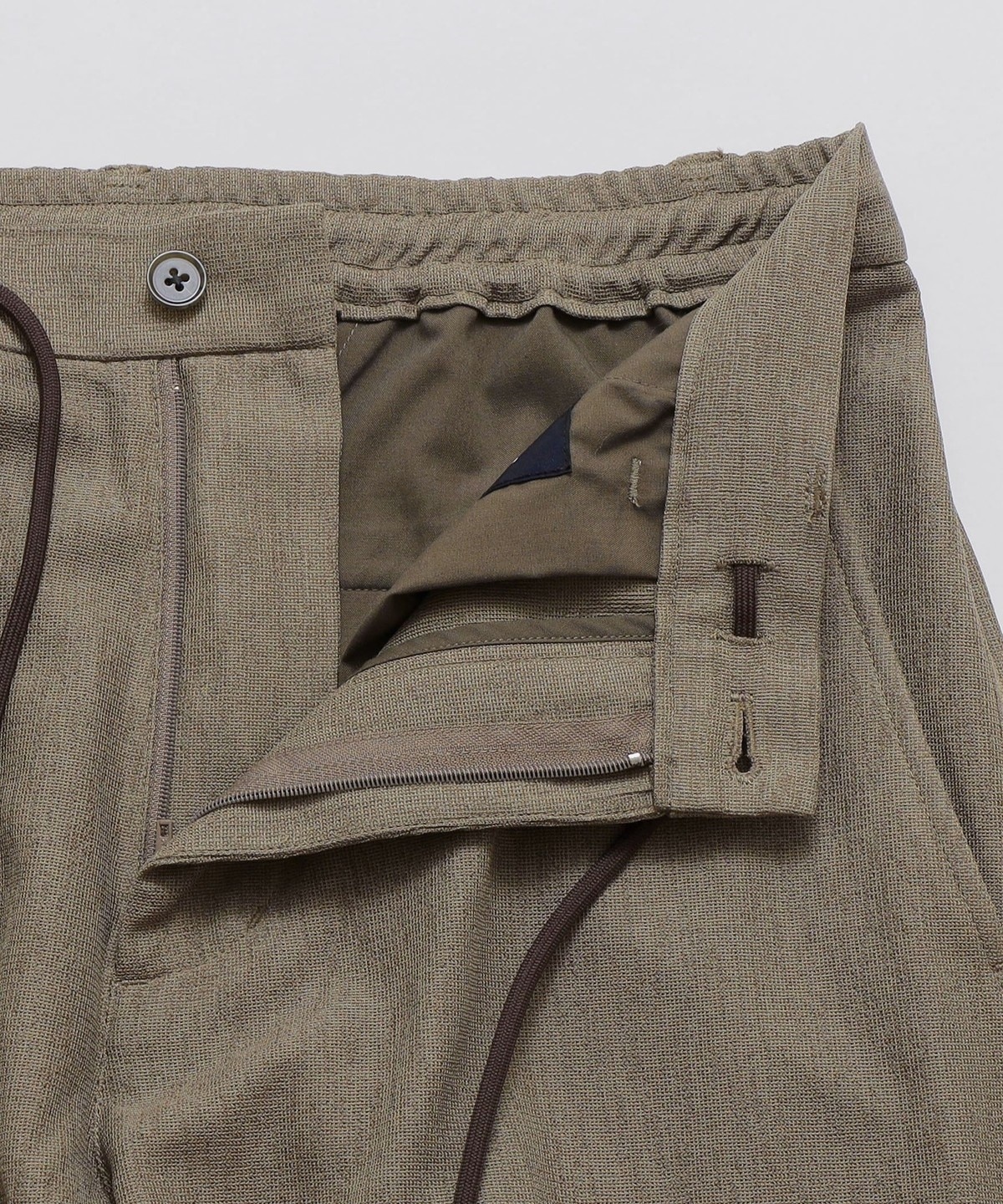 ウエスト背部にゴムを入れ、ヒモも備えたイージースラックス仕様です。