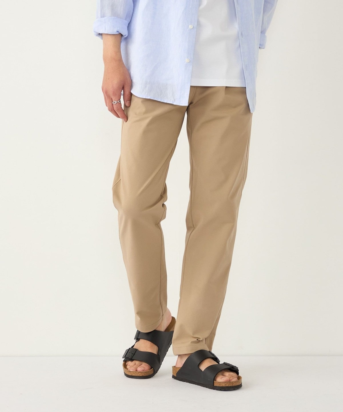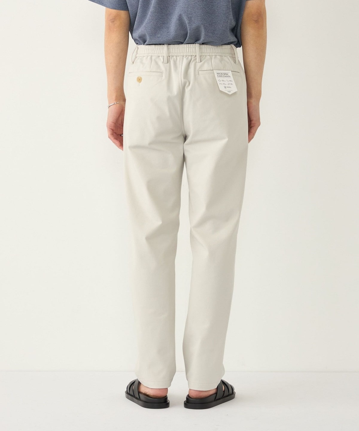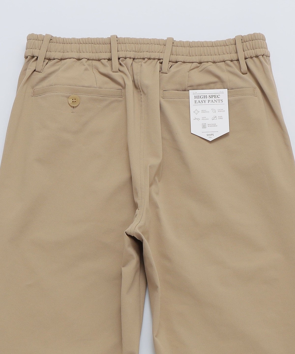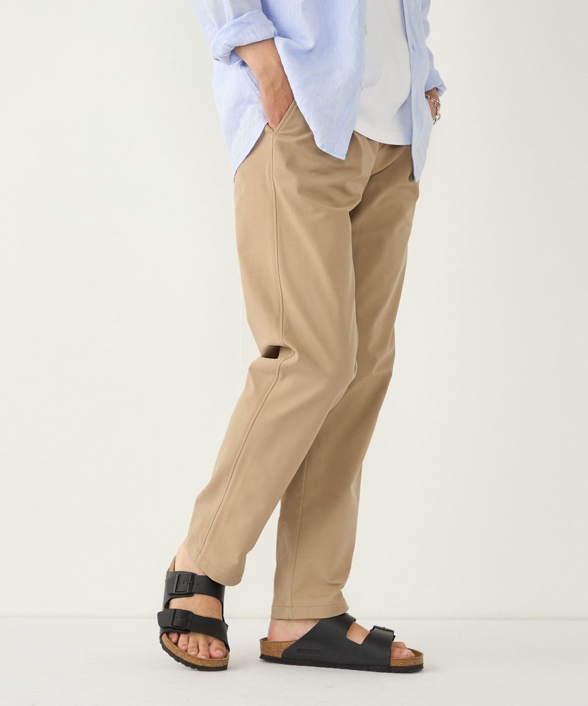 ポリエステル素材を使用したイージーチノパンツ。