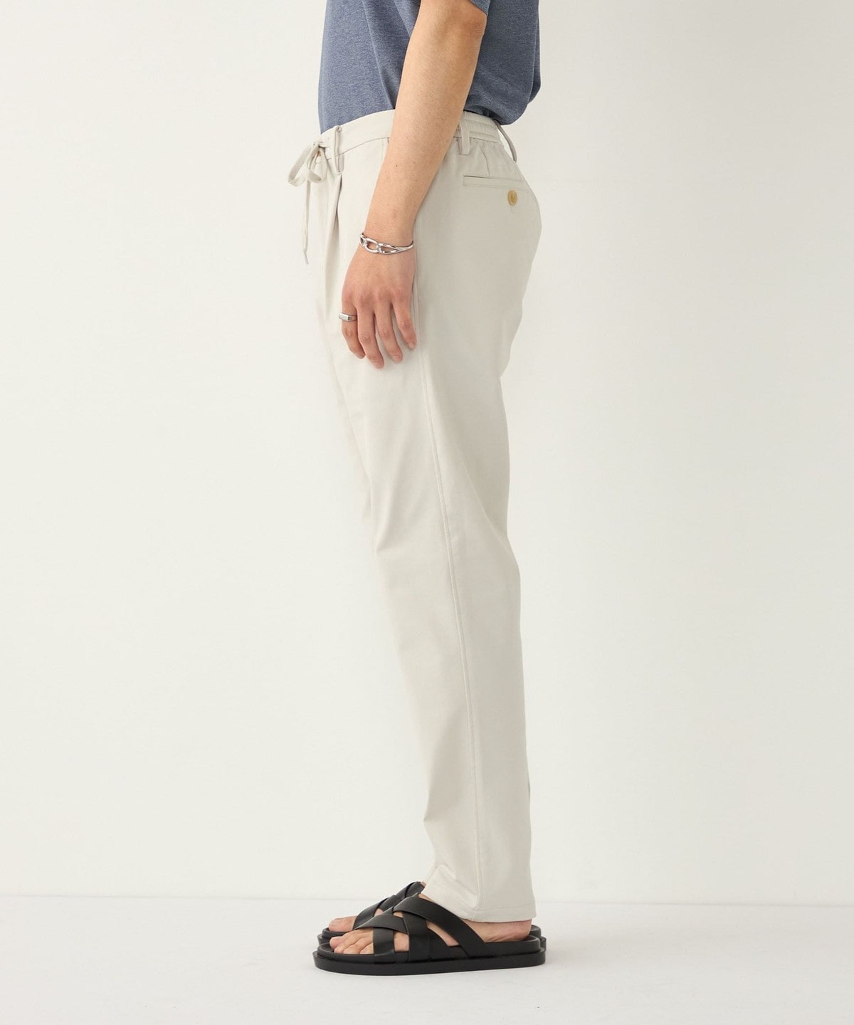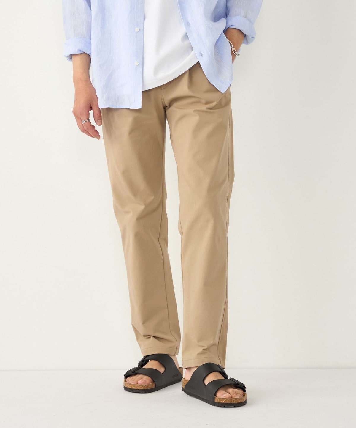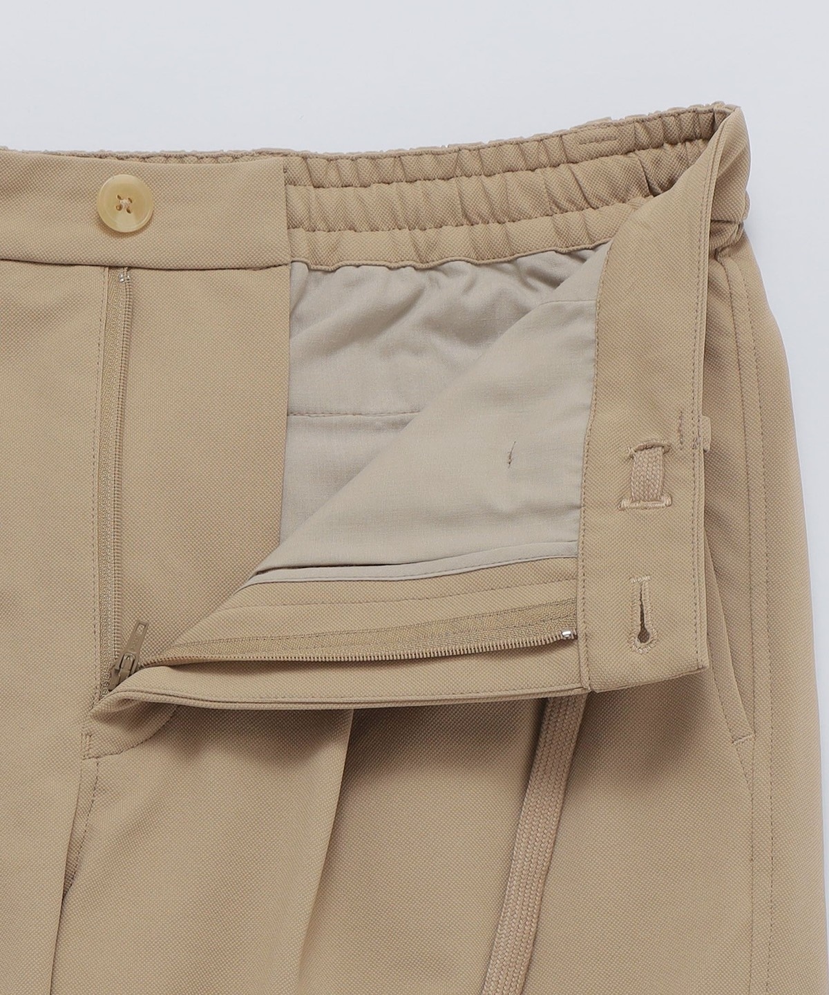 ポリエステル素材を使用したイージーチノパンツ。