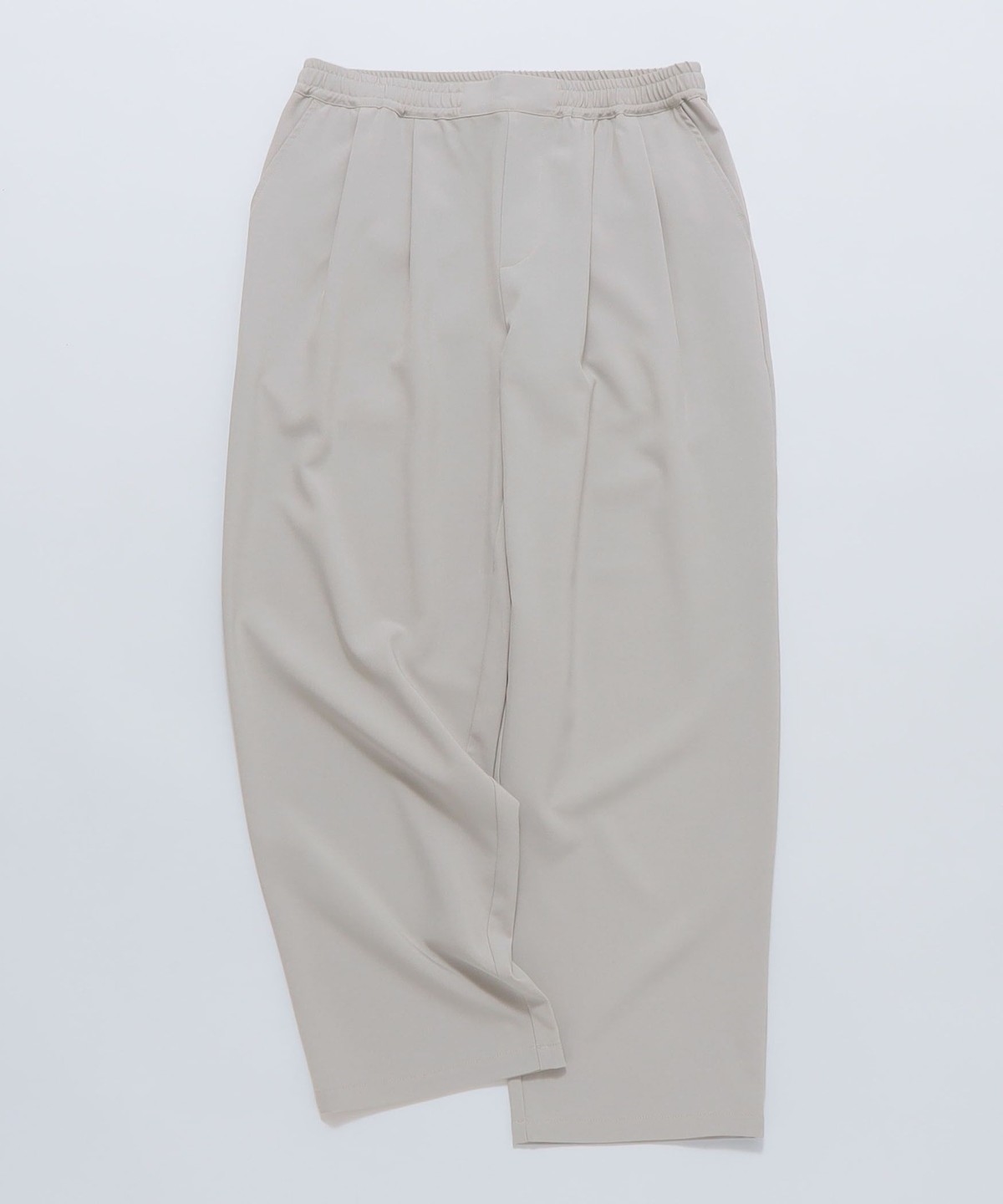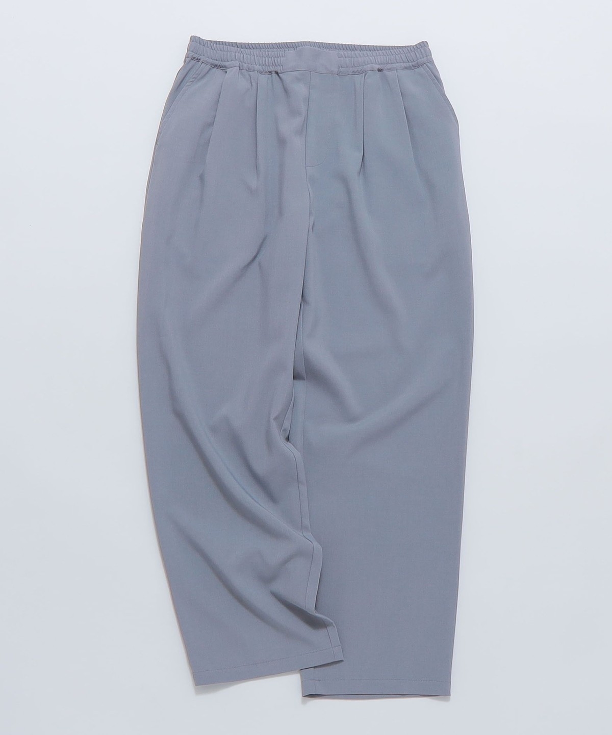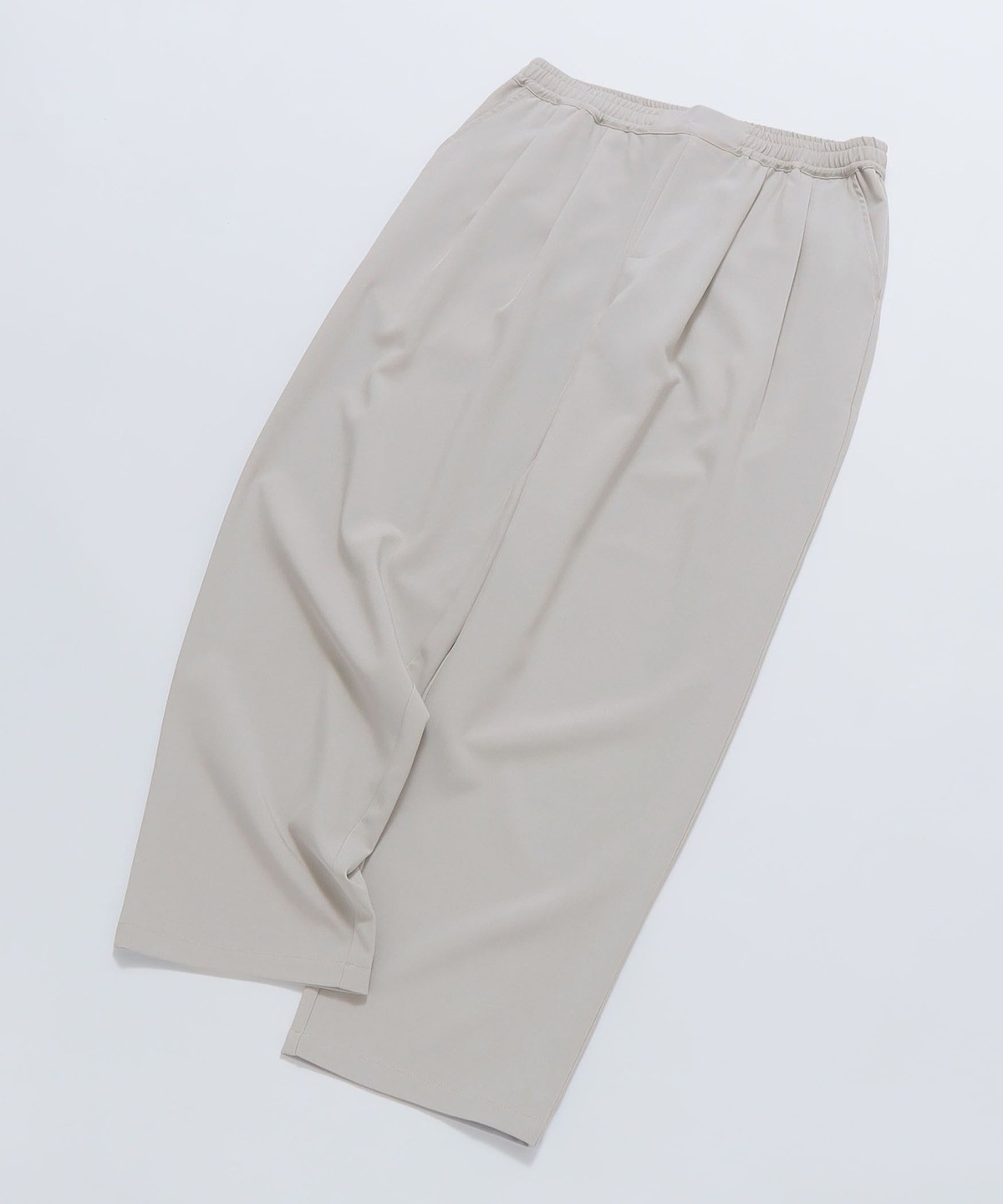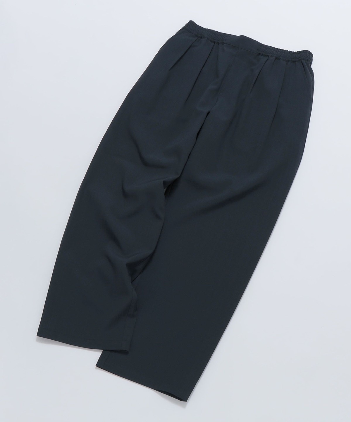 イージーケア性も魅力の合繊素材を使用したワイドパンツ。