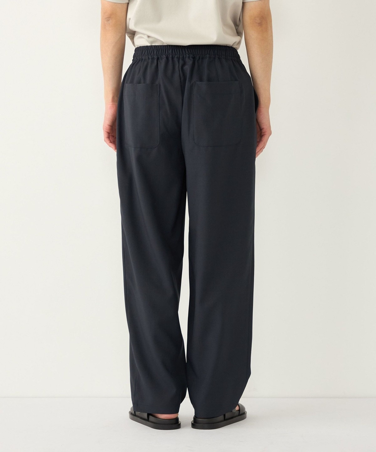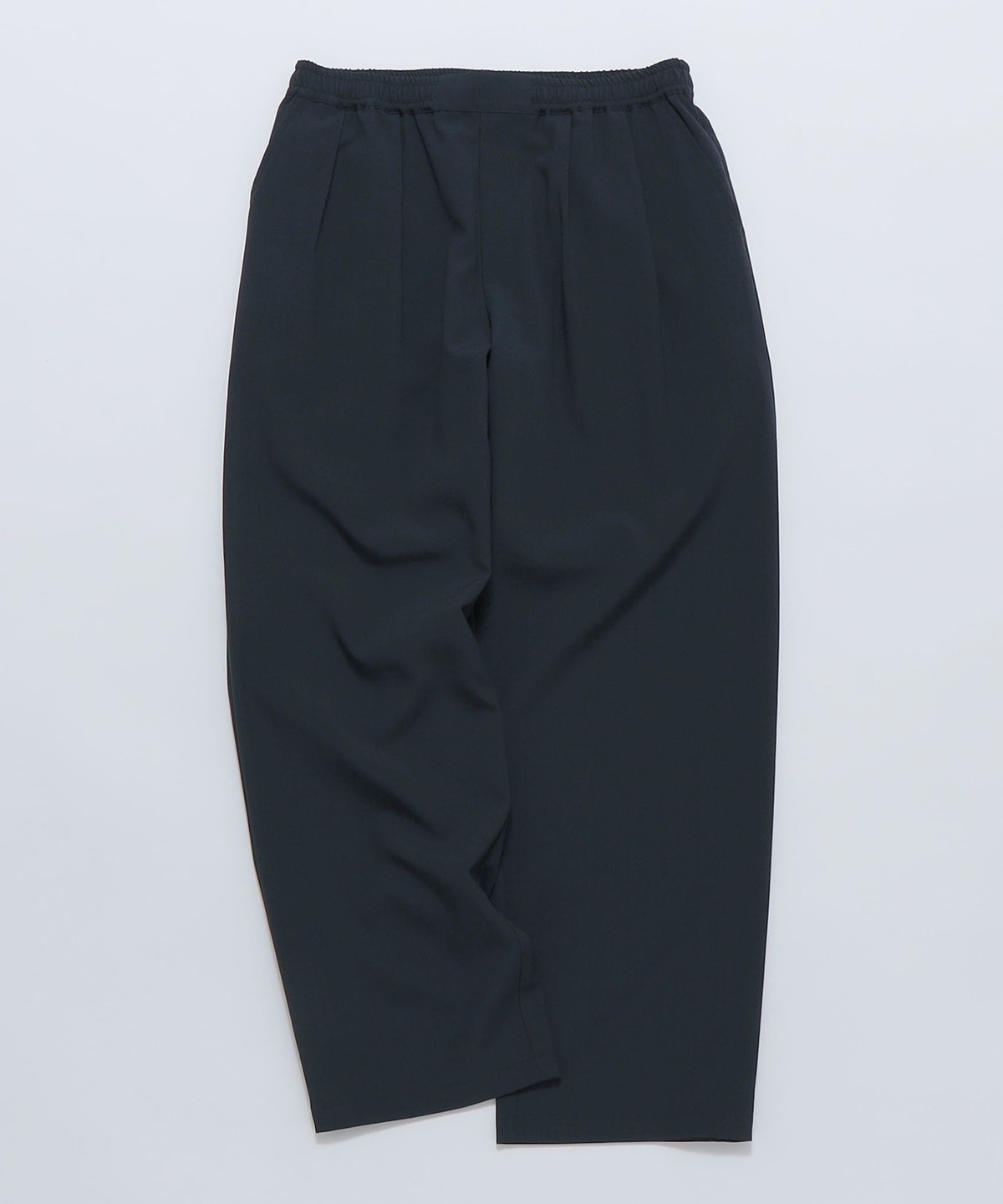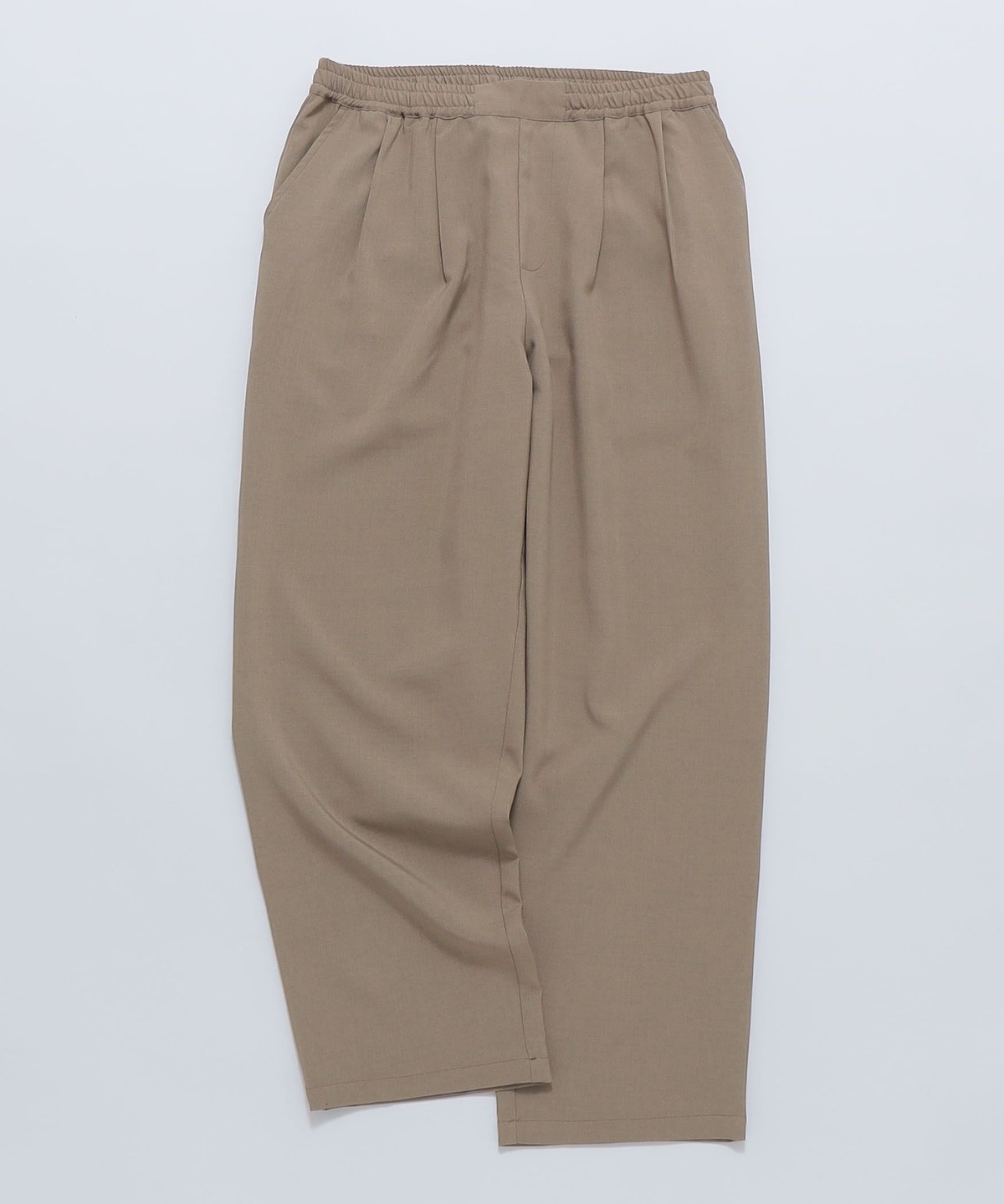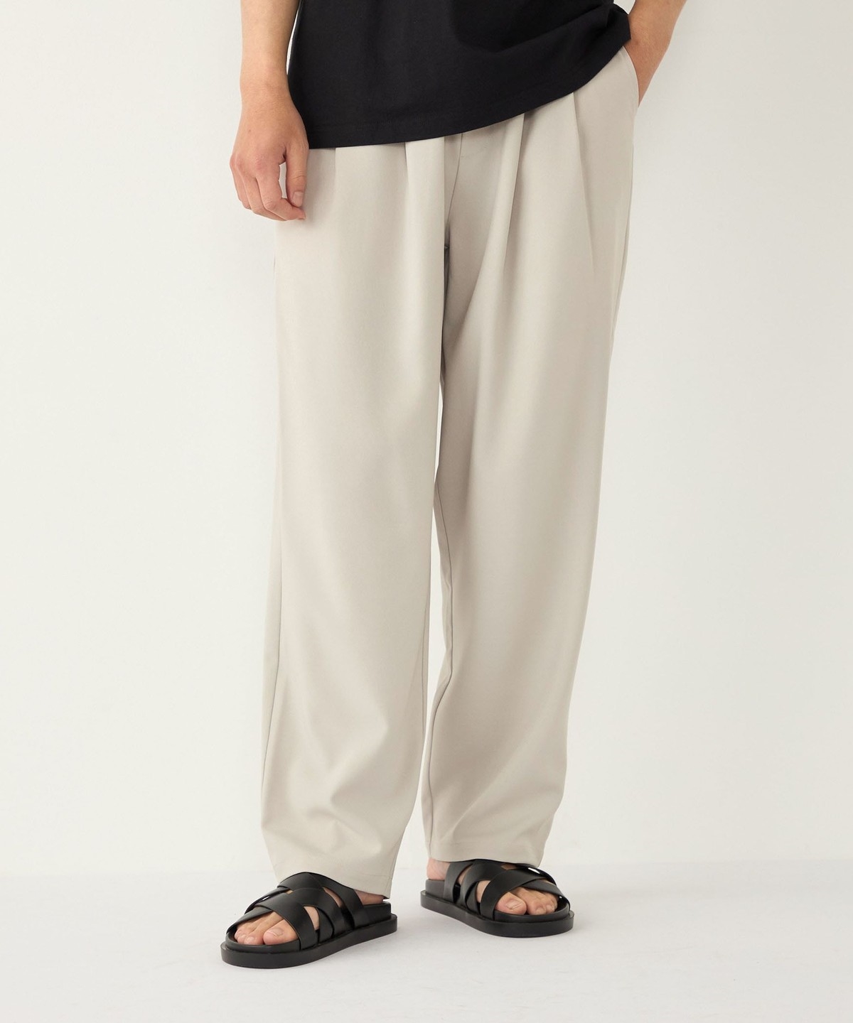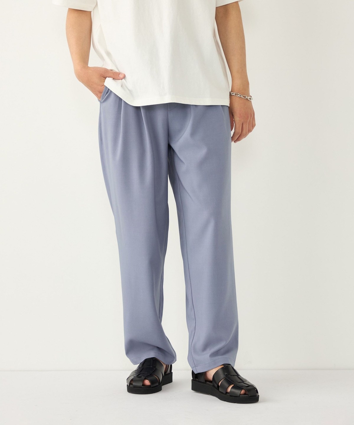 イージーケア性も魅力の合繊素材を使用したワイドパンツ。