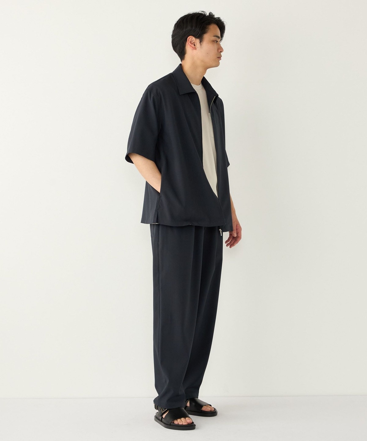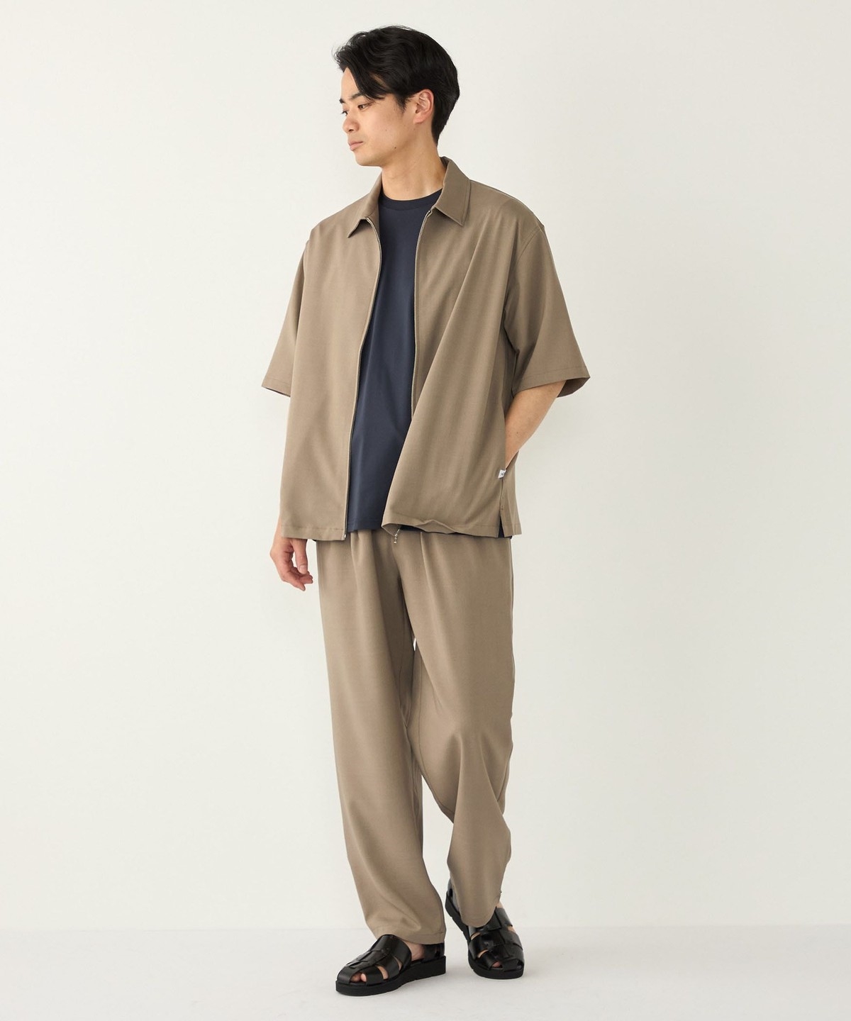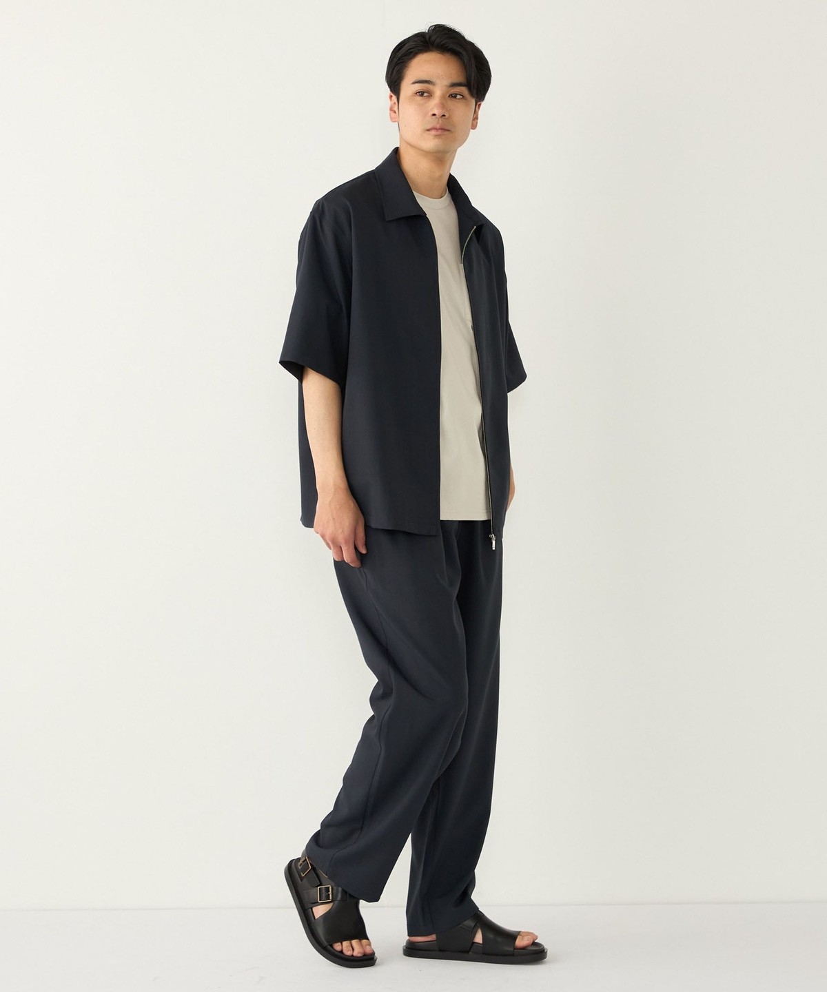 同素材でフロントボタンシャツとジップシャツもご用意しており、セットアップでのご着用も可能です。