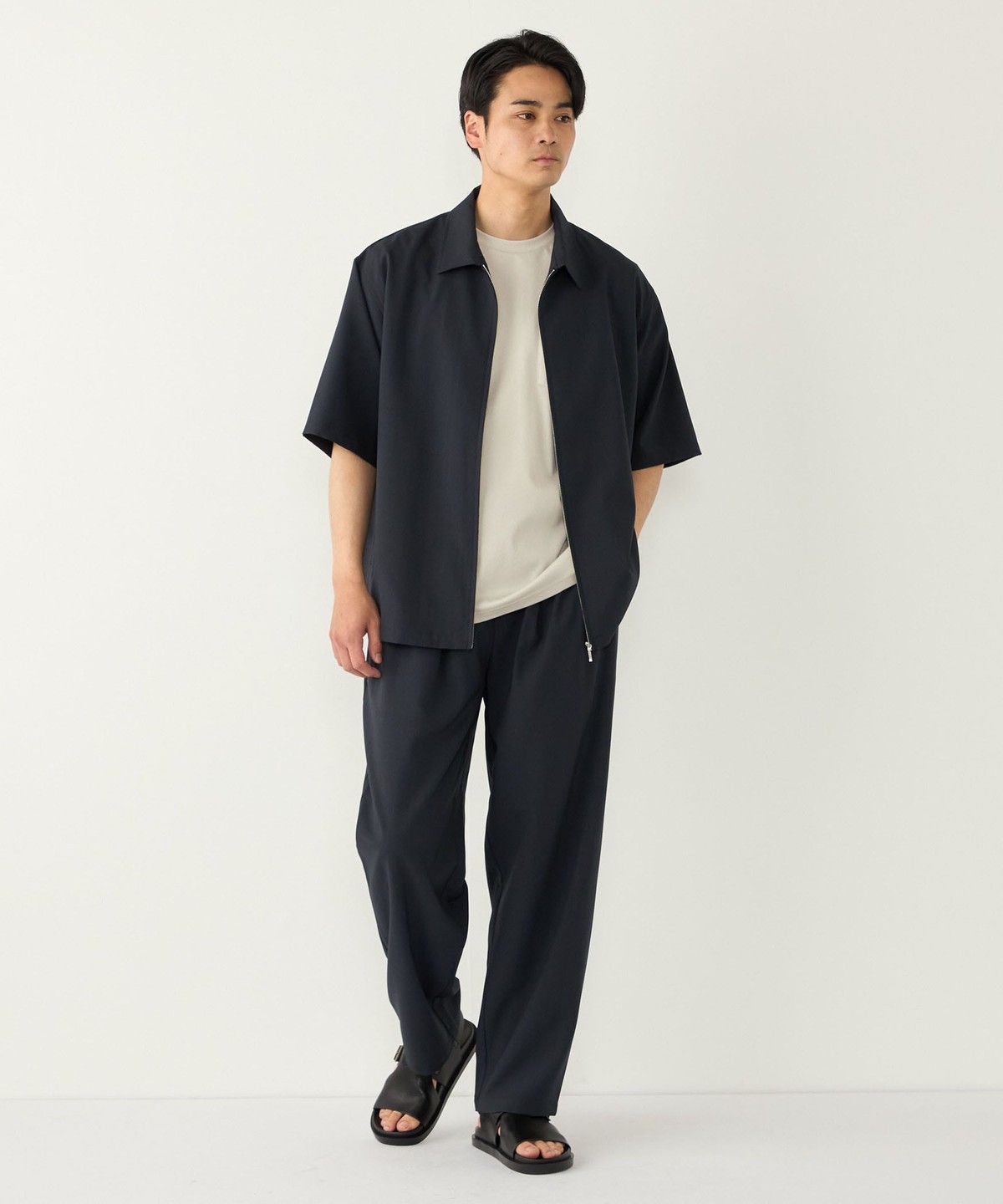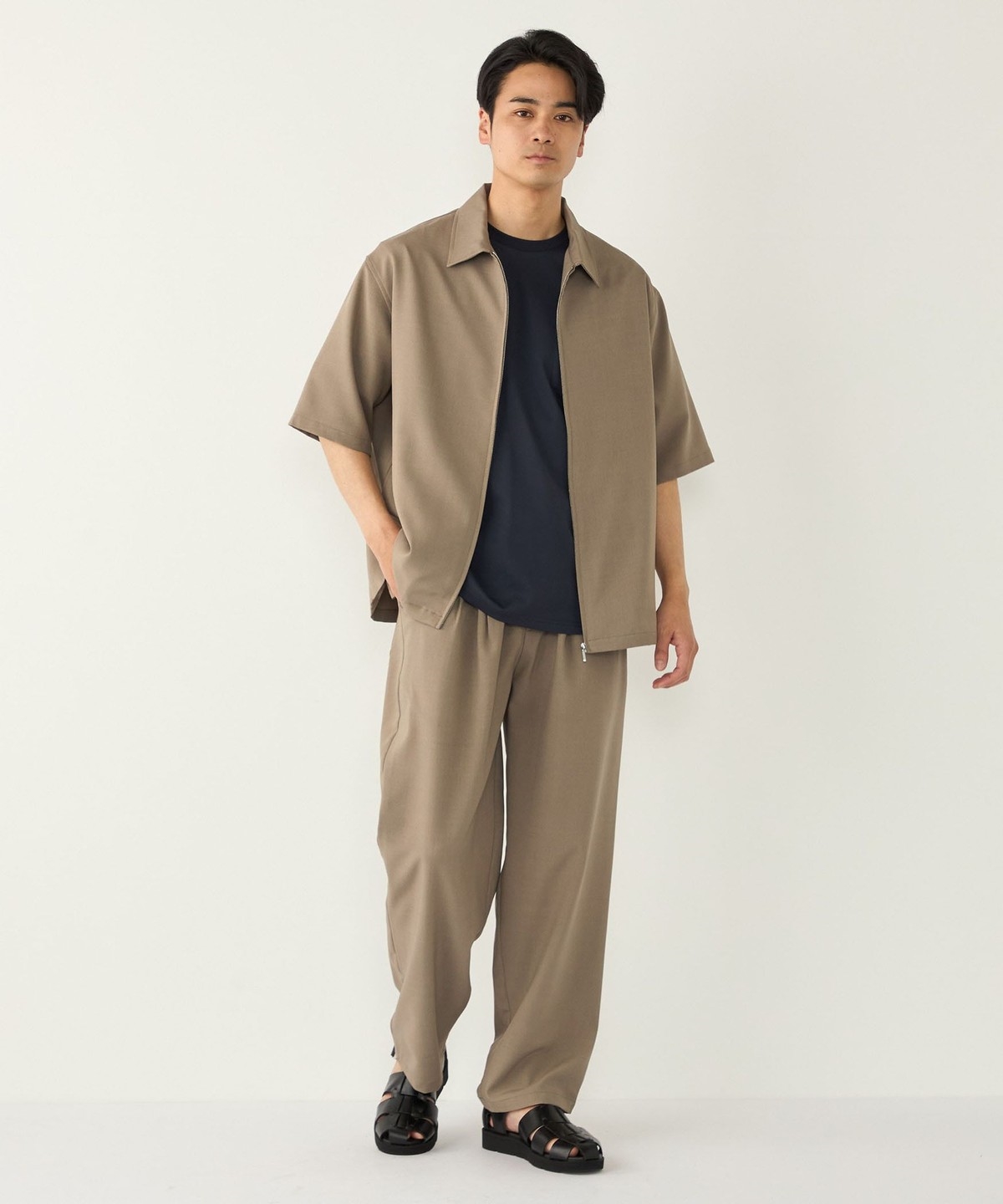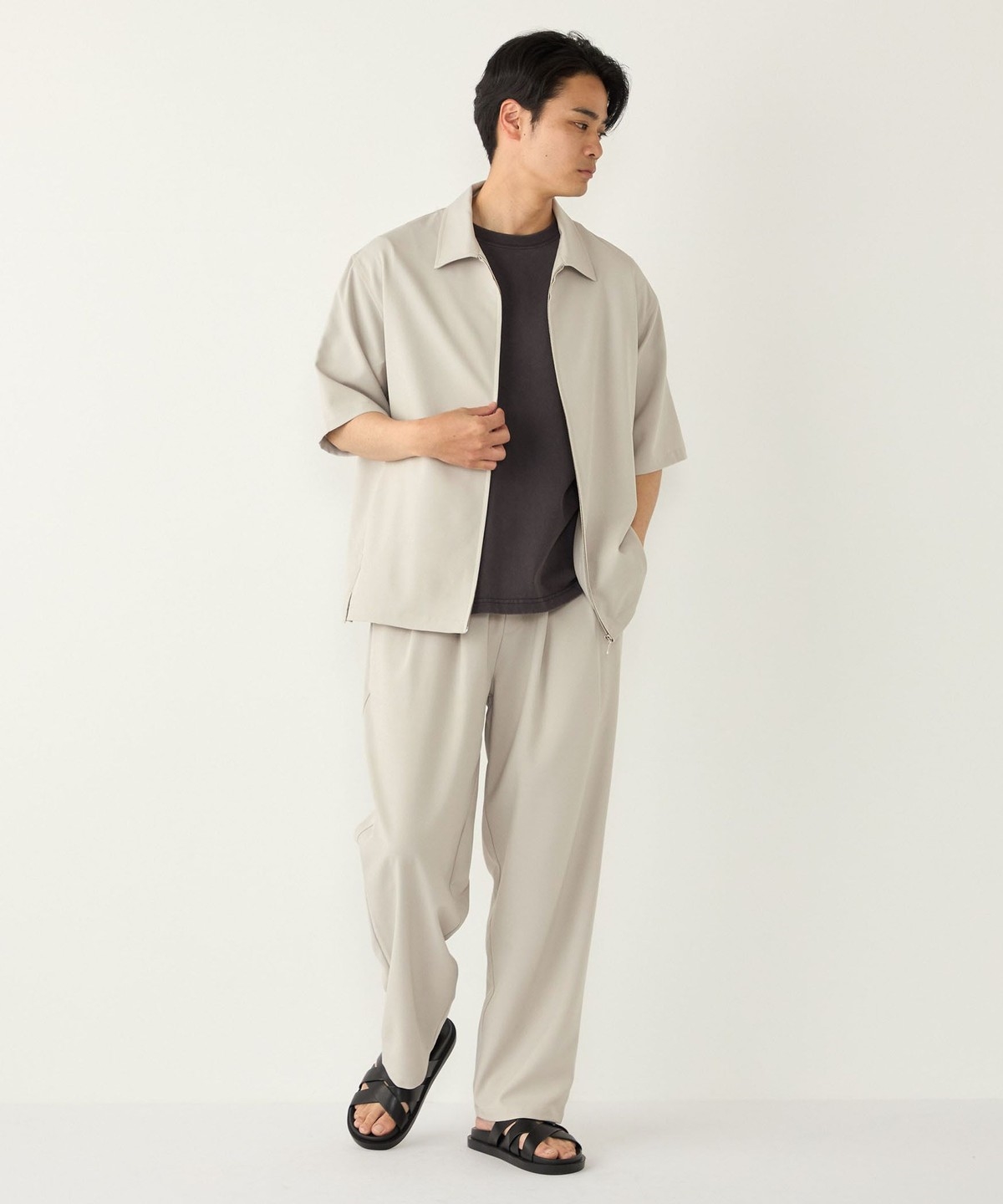 同素材でフロントボタンシャツとジップシャツもご用意しており、セットアップでのご着用も可能です。