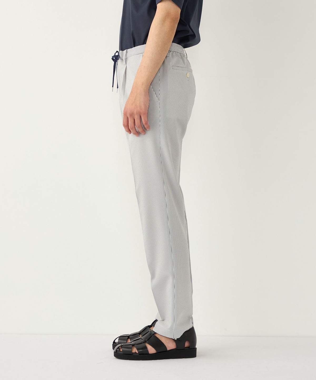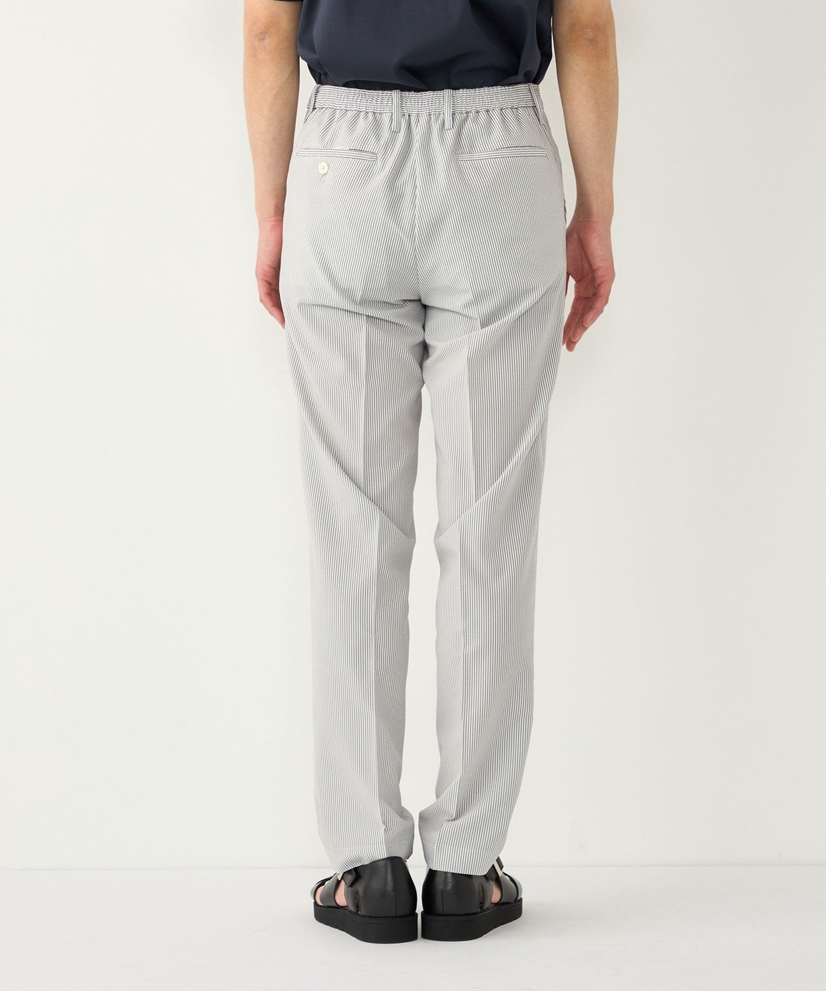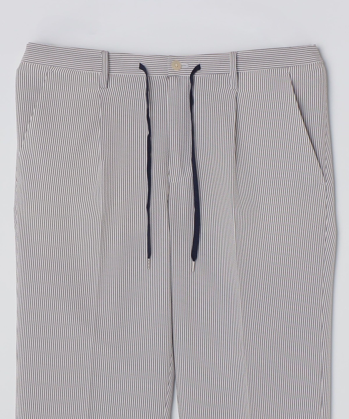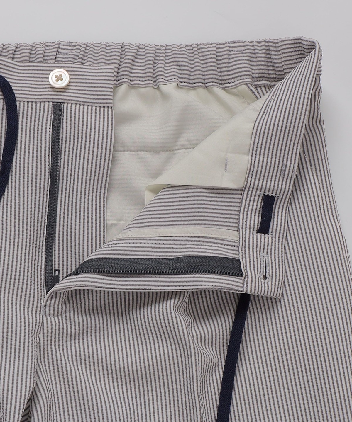 見た目にも涼やかな、シアサッカー特有の凹凸ある生地の表情もポイントです。