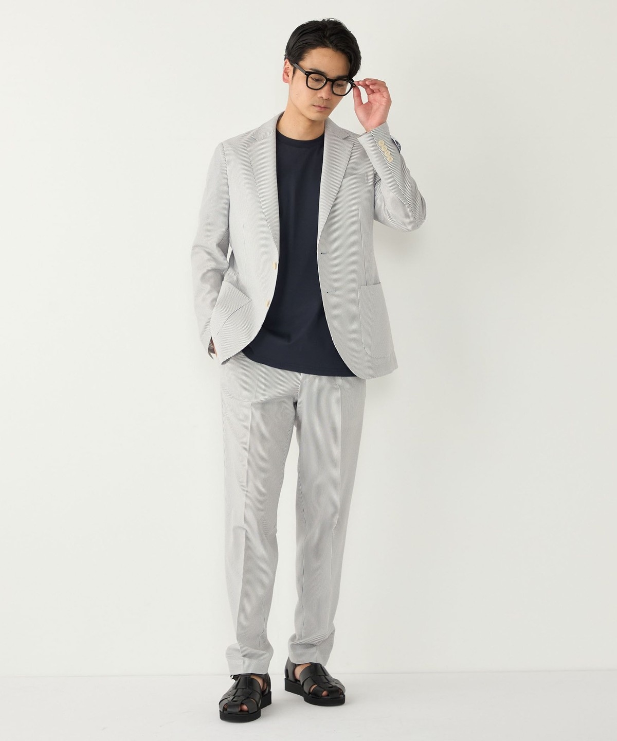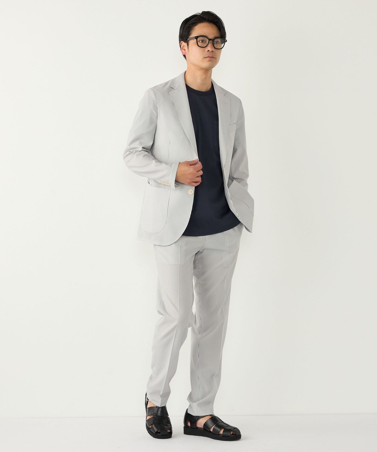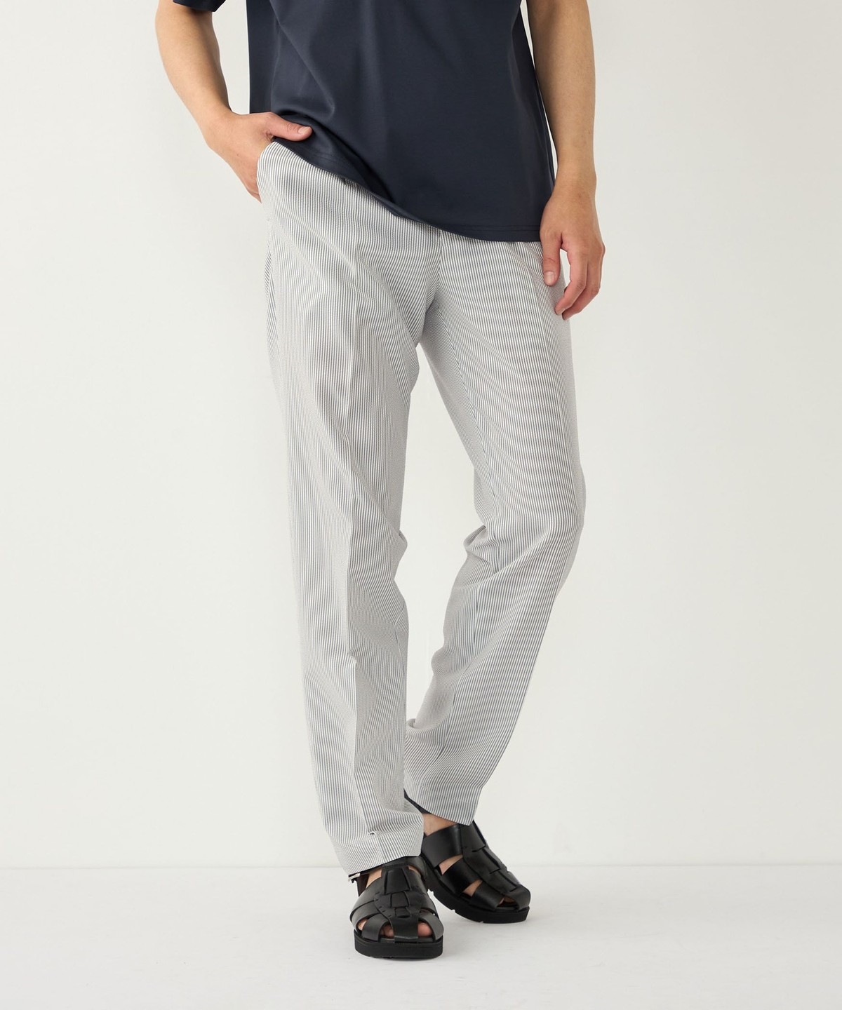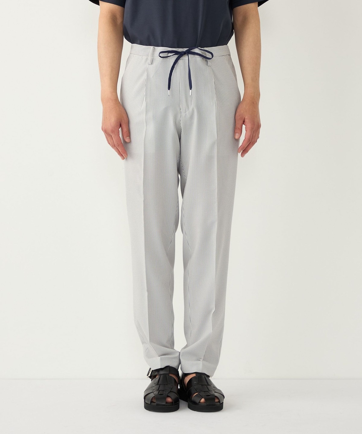 見た目にも涼やかな、シアサッカー特有の凹凸ある生地の表情もポイントです。