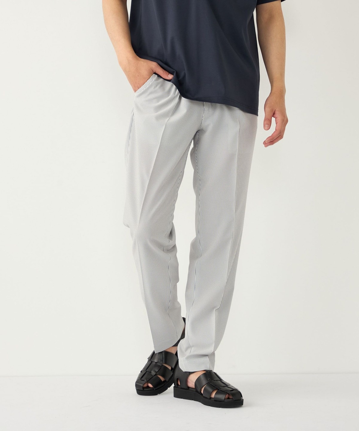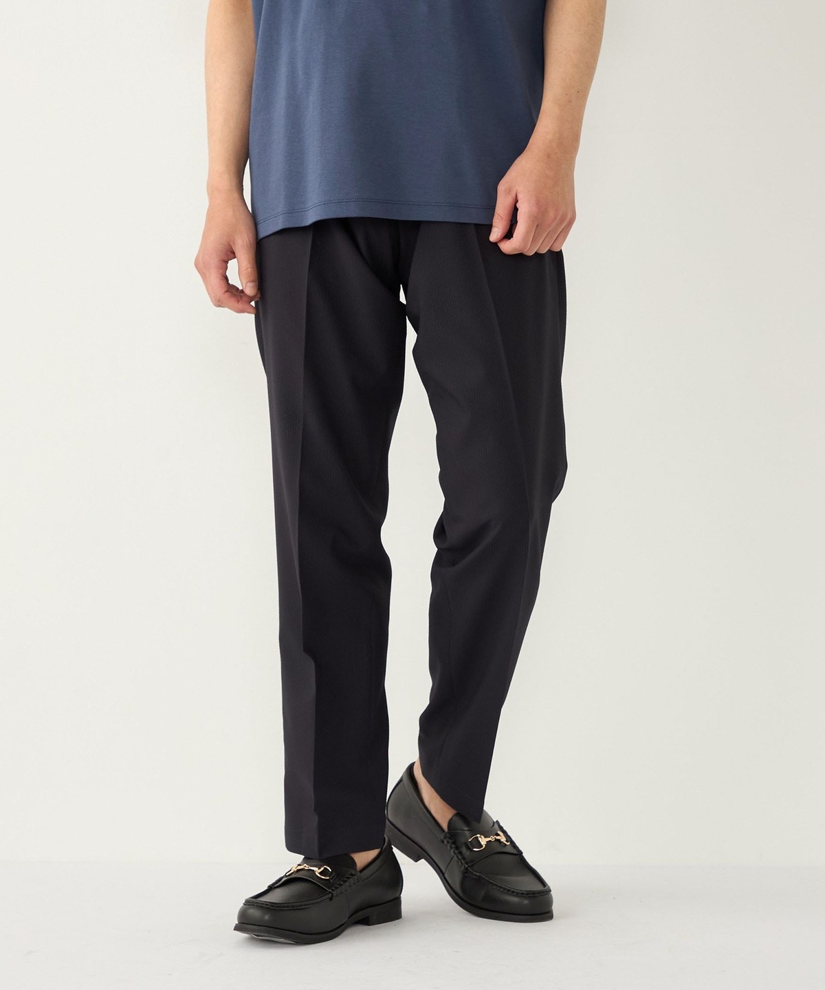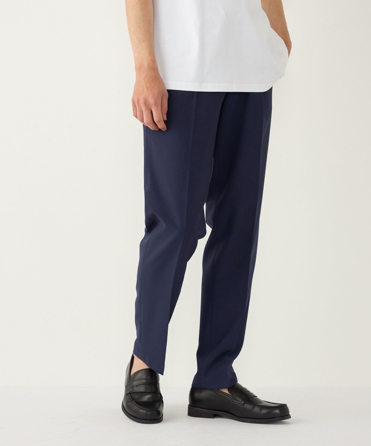 イージーな仕様ながら、テーパードをきかせたやや細身のシルエットで、コーディネートを品よくまとめてくれます。