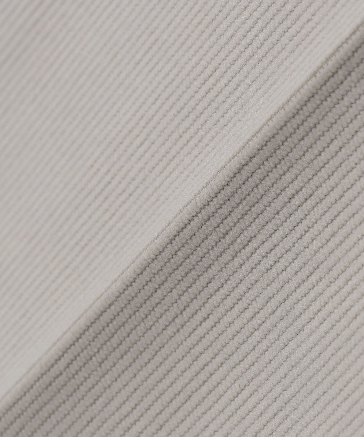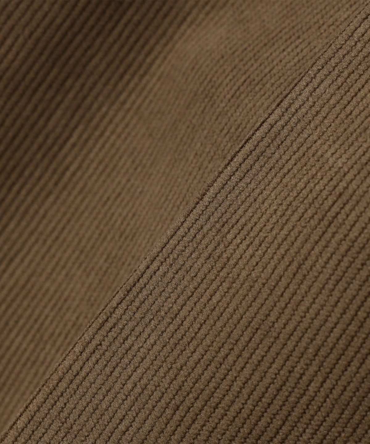 ポリエステル素材の生地は、ストレッチ性と防シワ性を持ち、コーデュロイながらやわらかな生地感です。