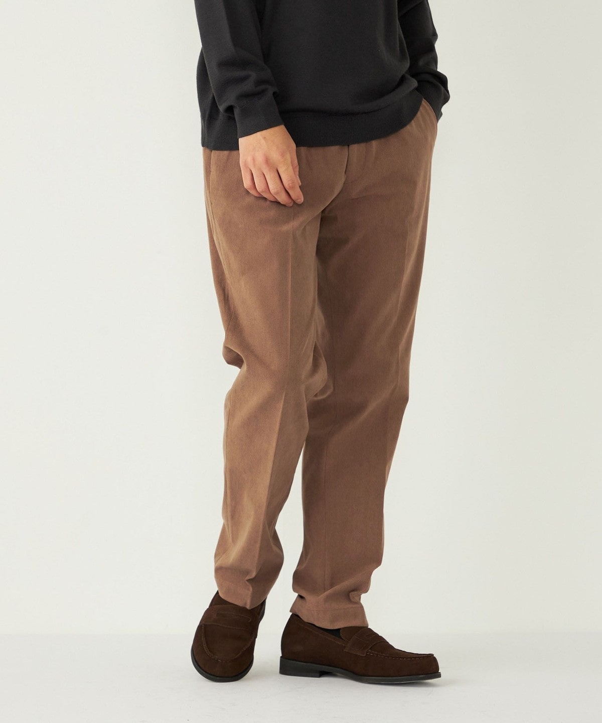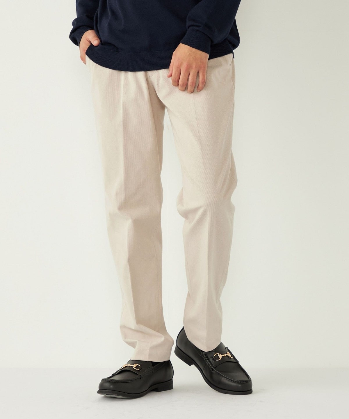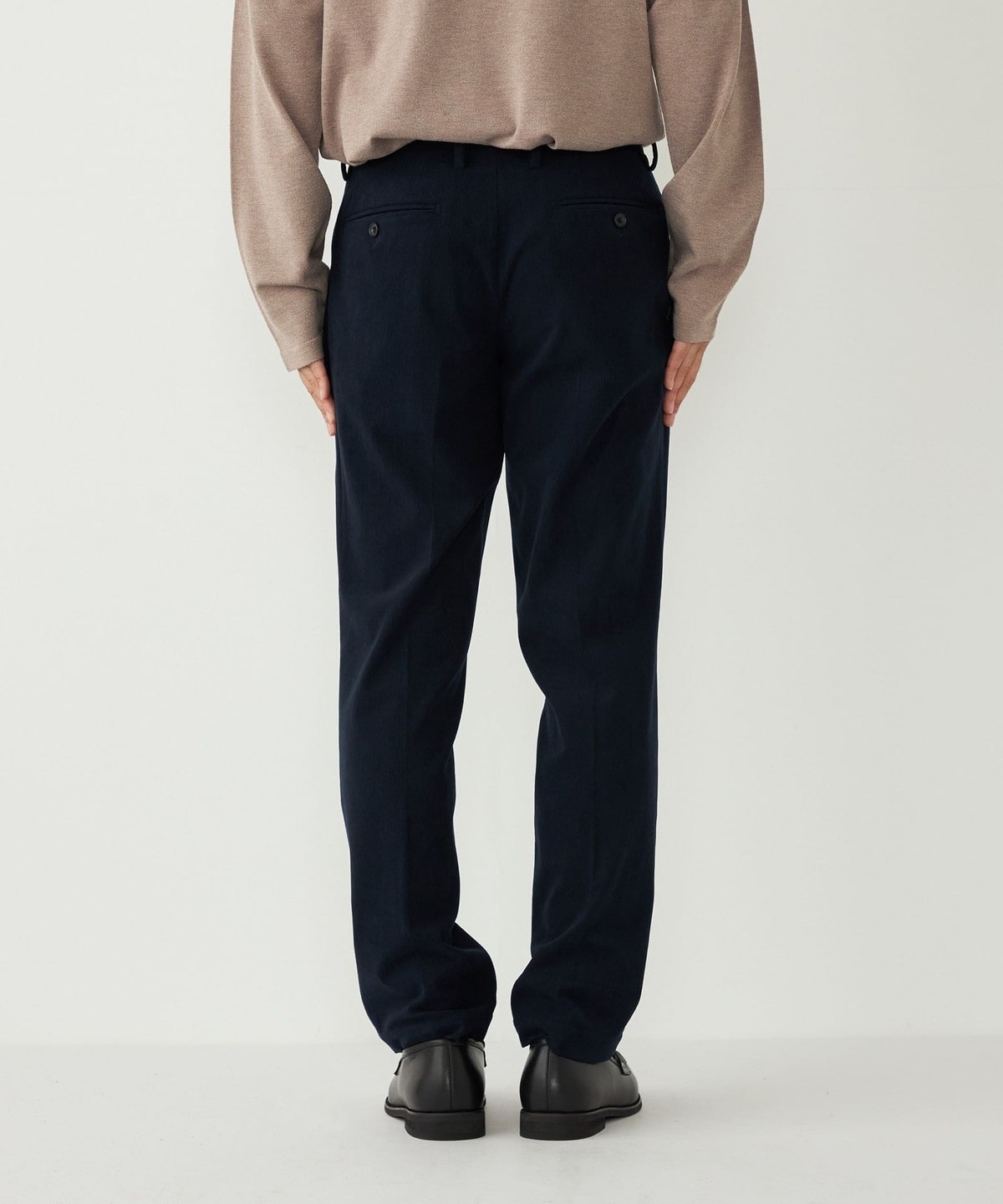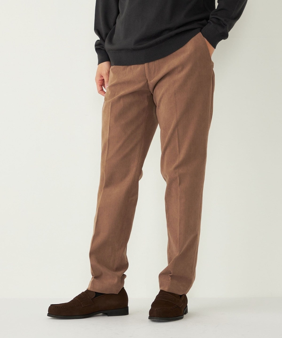 細畝のコーデュロイを採用することで、程よくカジュアル感はありつつも上品な印象の1本。