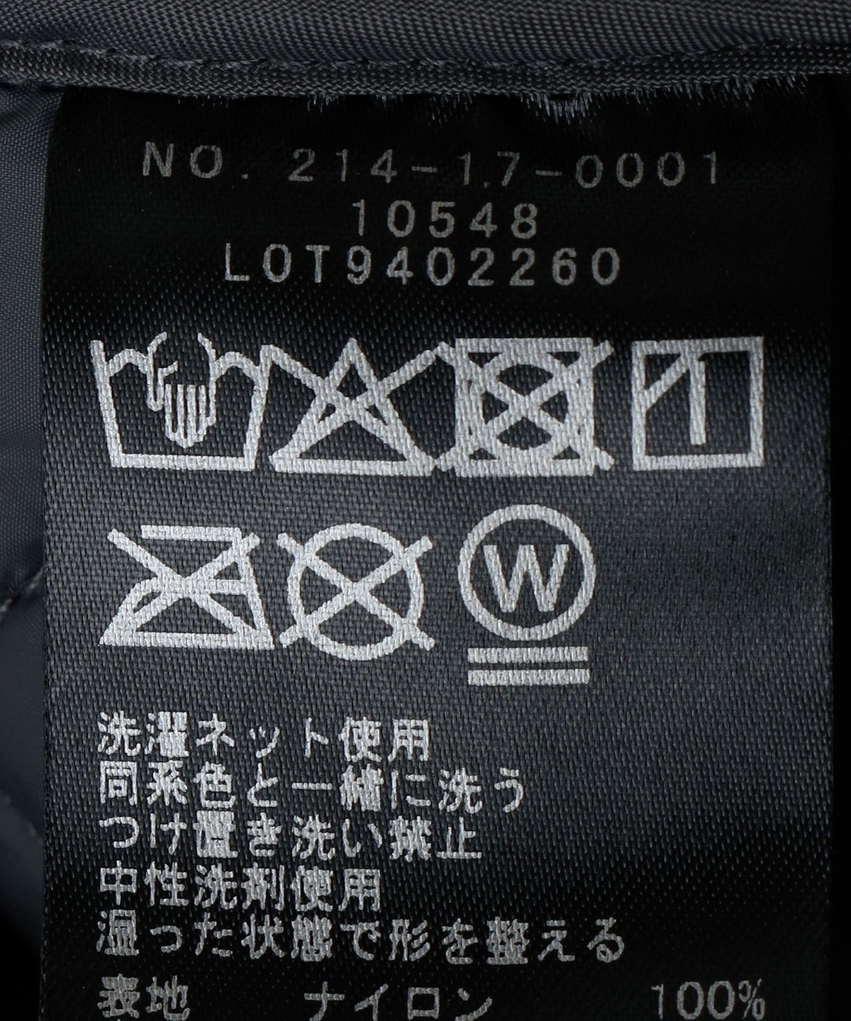 素材:表地(ナイロン100%)裏地(ナイロン100%)別布(ポリエステル100%)中わた(ポリエステル100%)