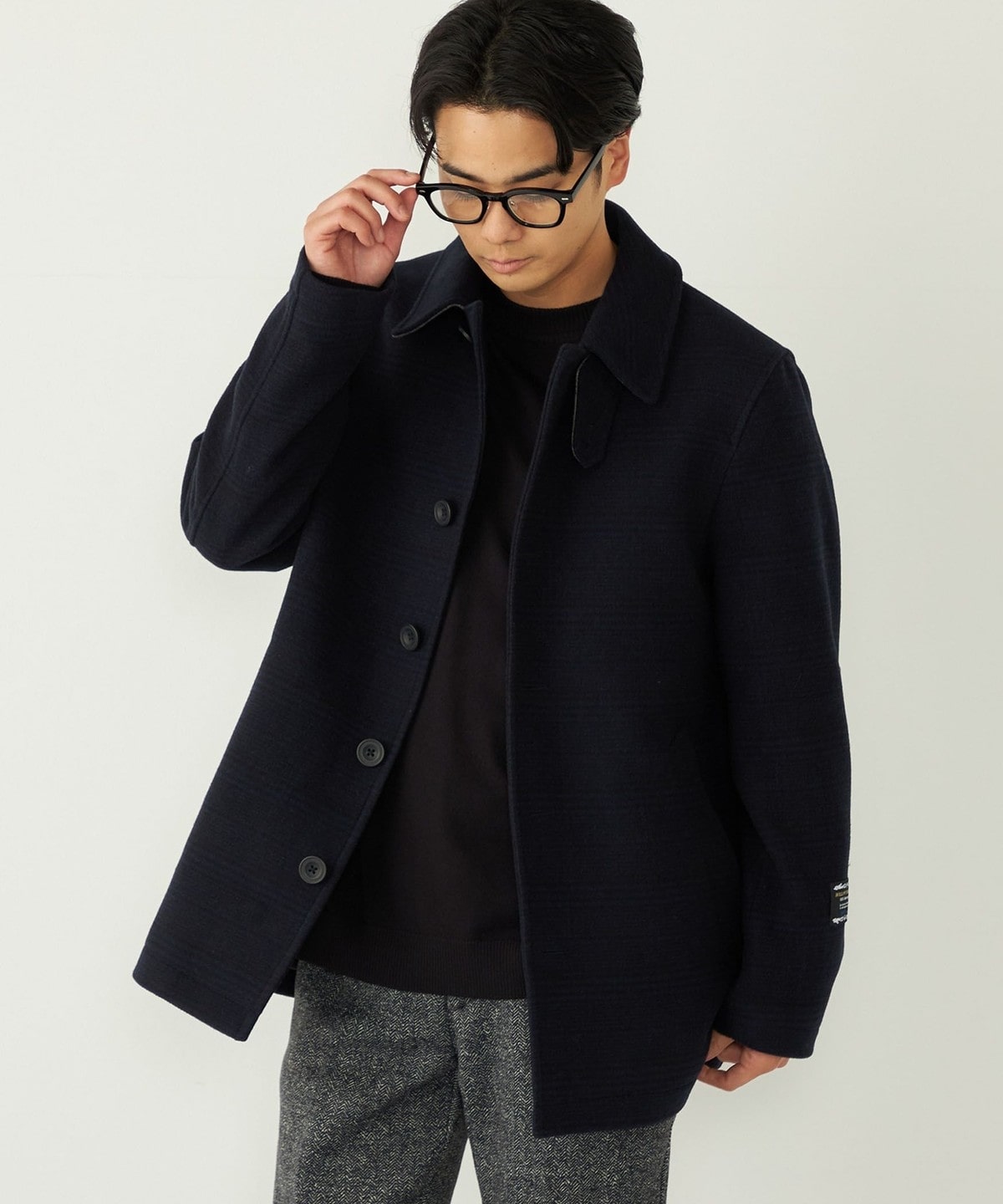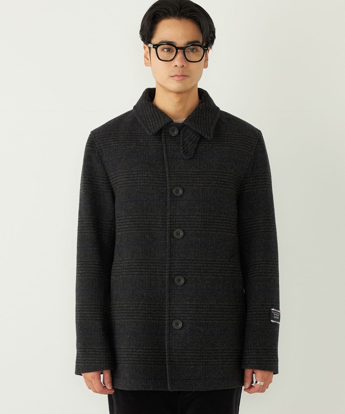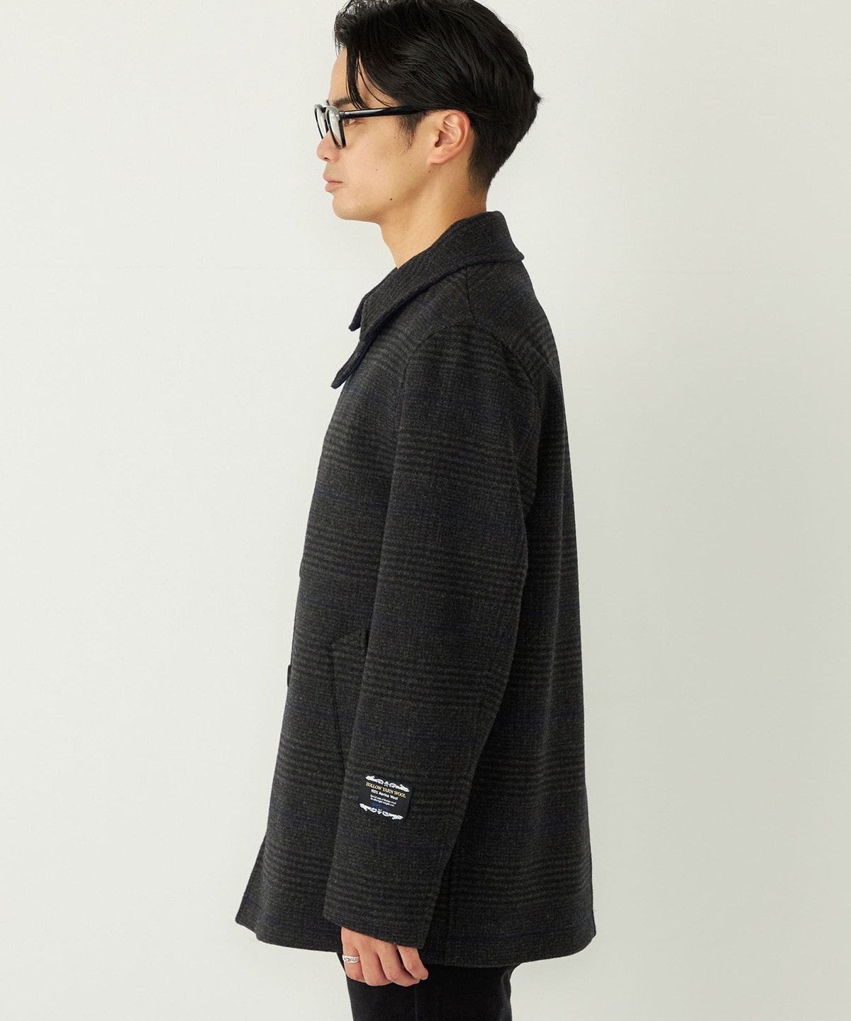SHIPS Colorsで毎シーズンご好評いただいているチェック柄を採用した毛100%のコートに、今季はシングルタイプのピーコートが入荷!