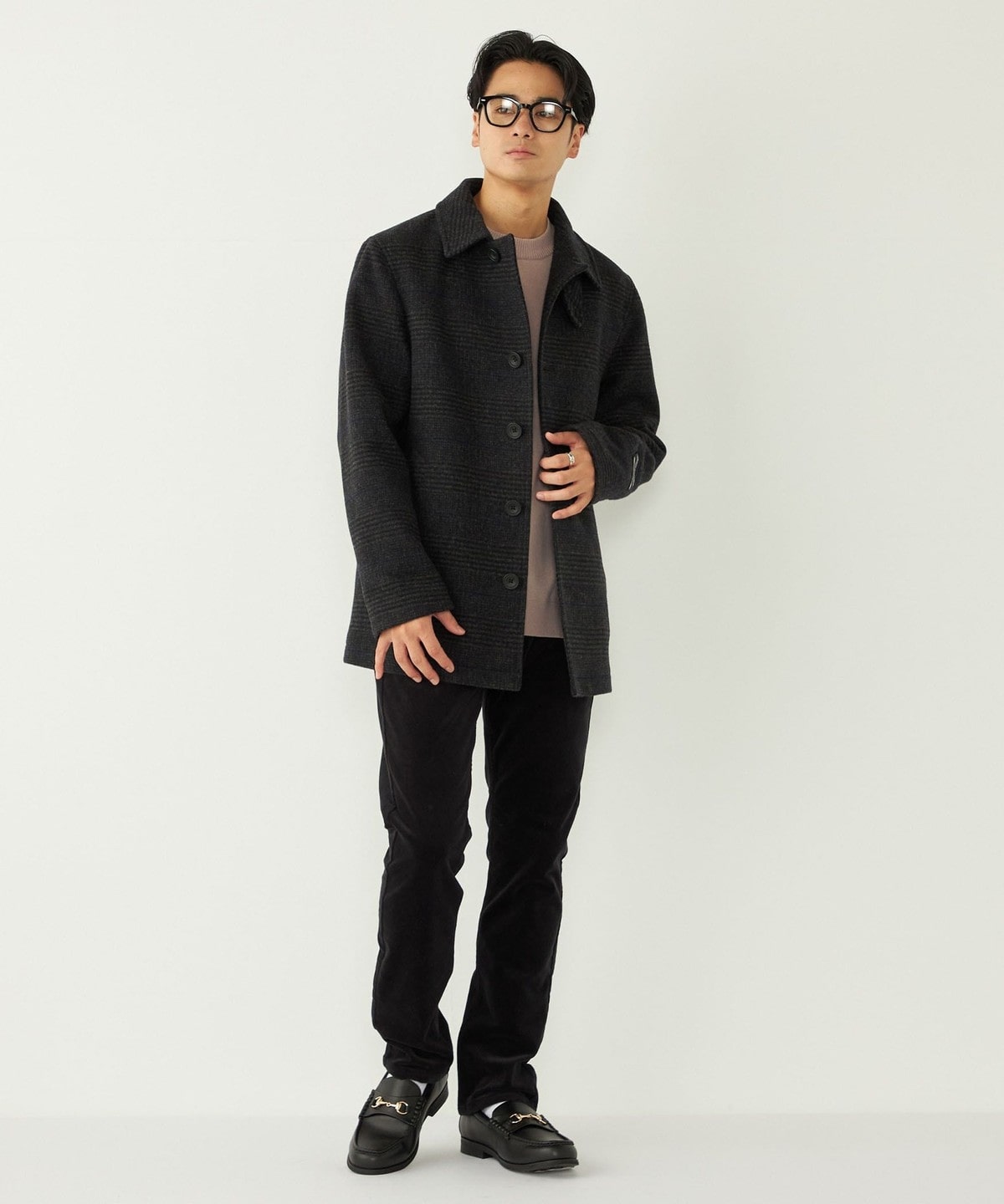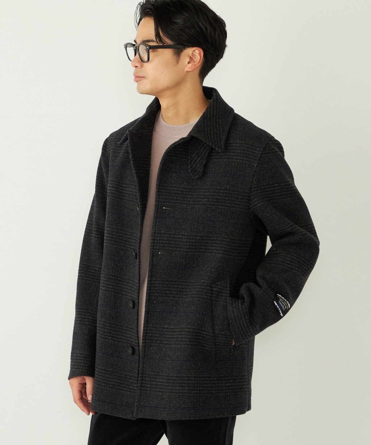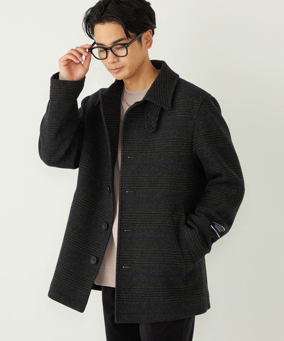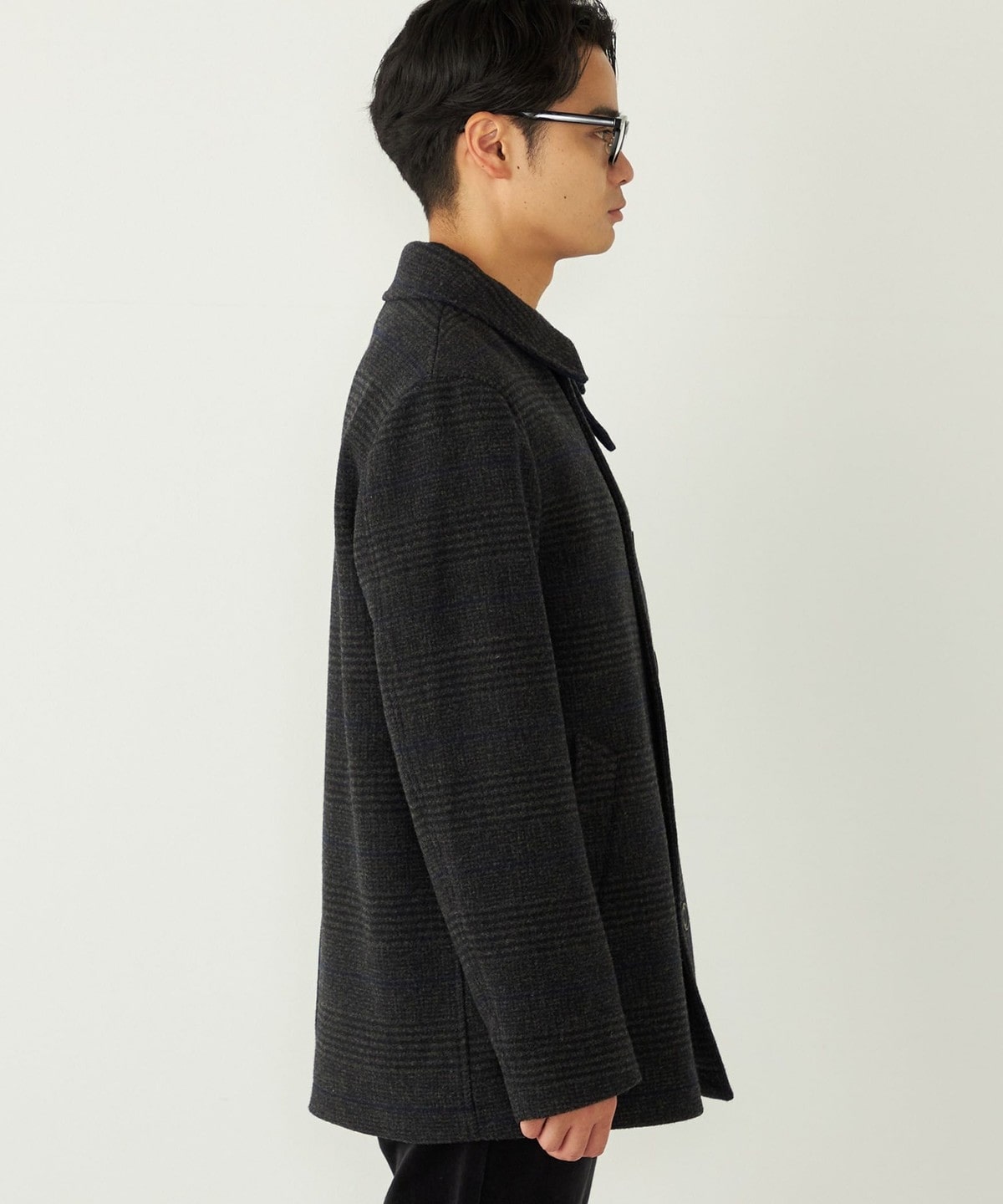落ち着いたチェック柄とカラーリングで、様々なシーンでご着用いただけるコートです。