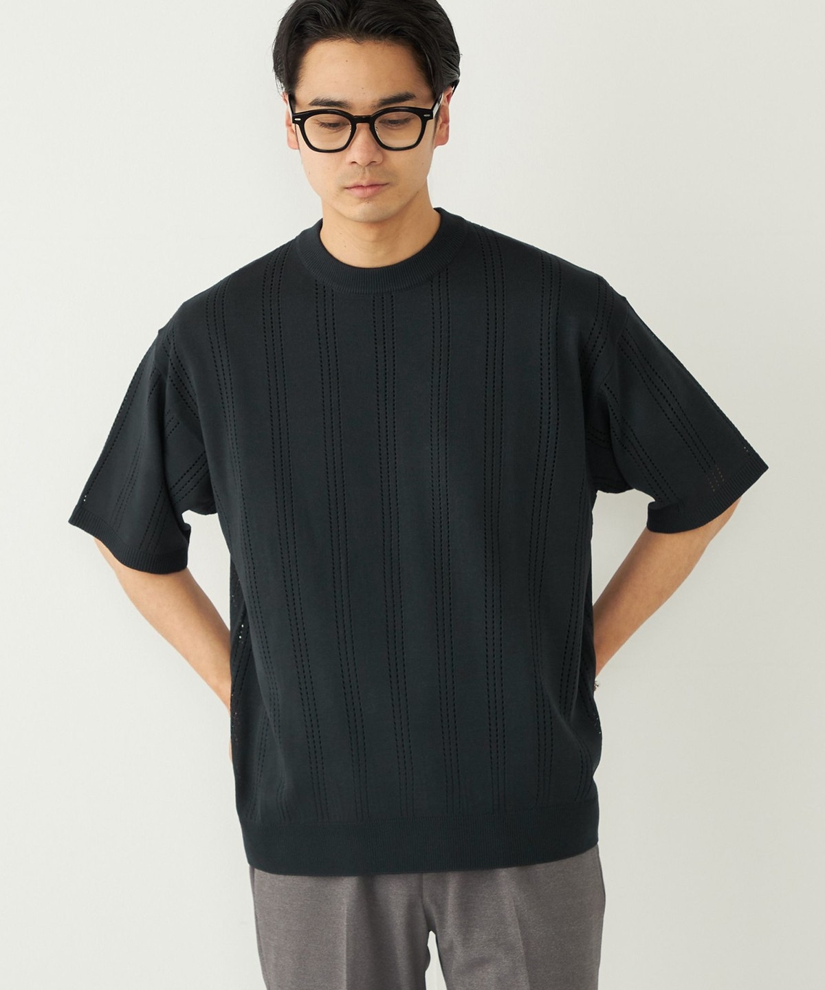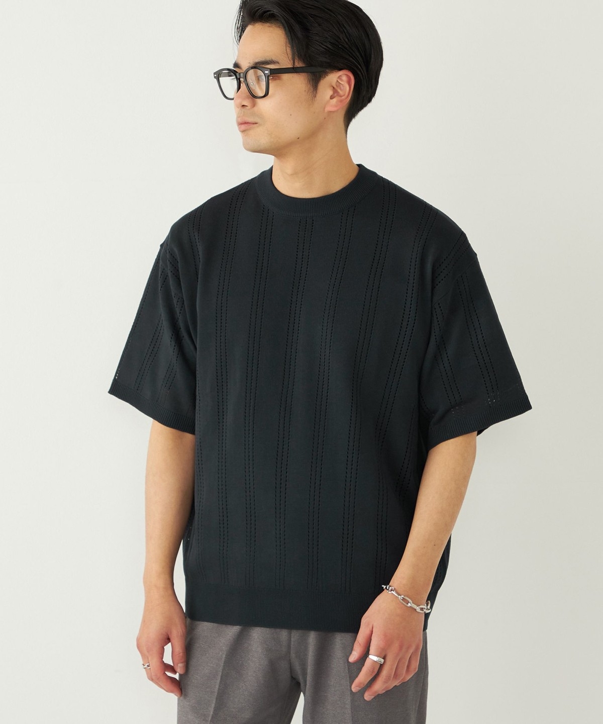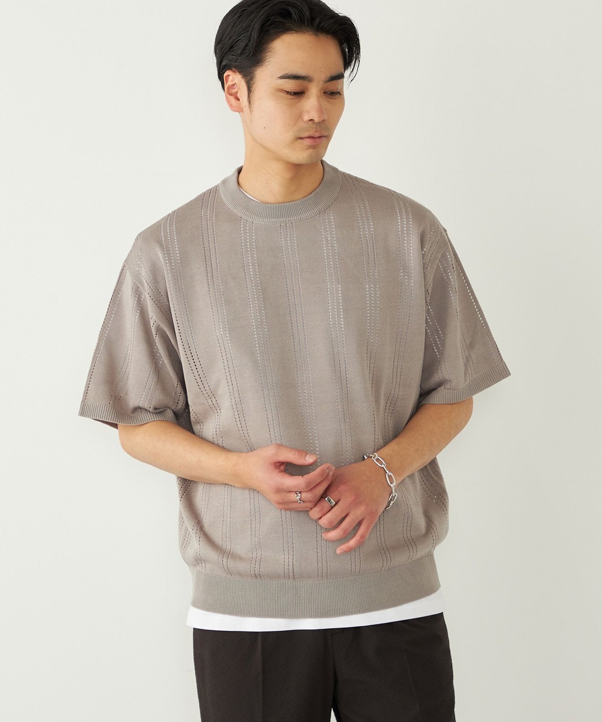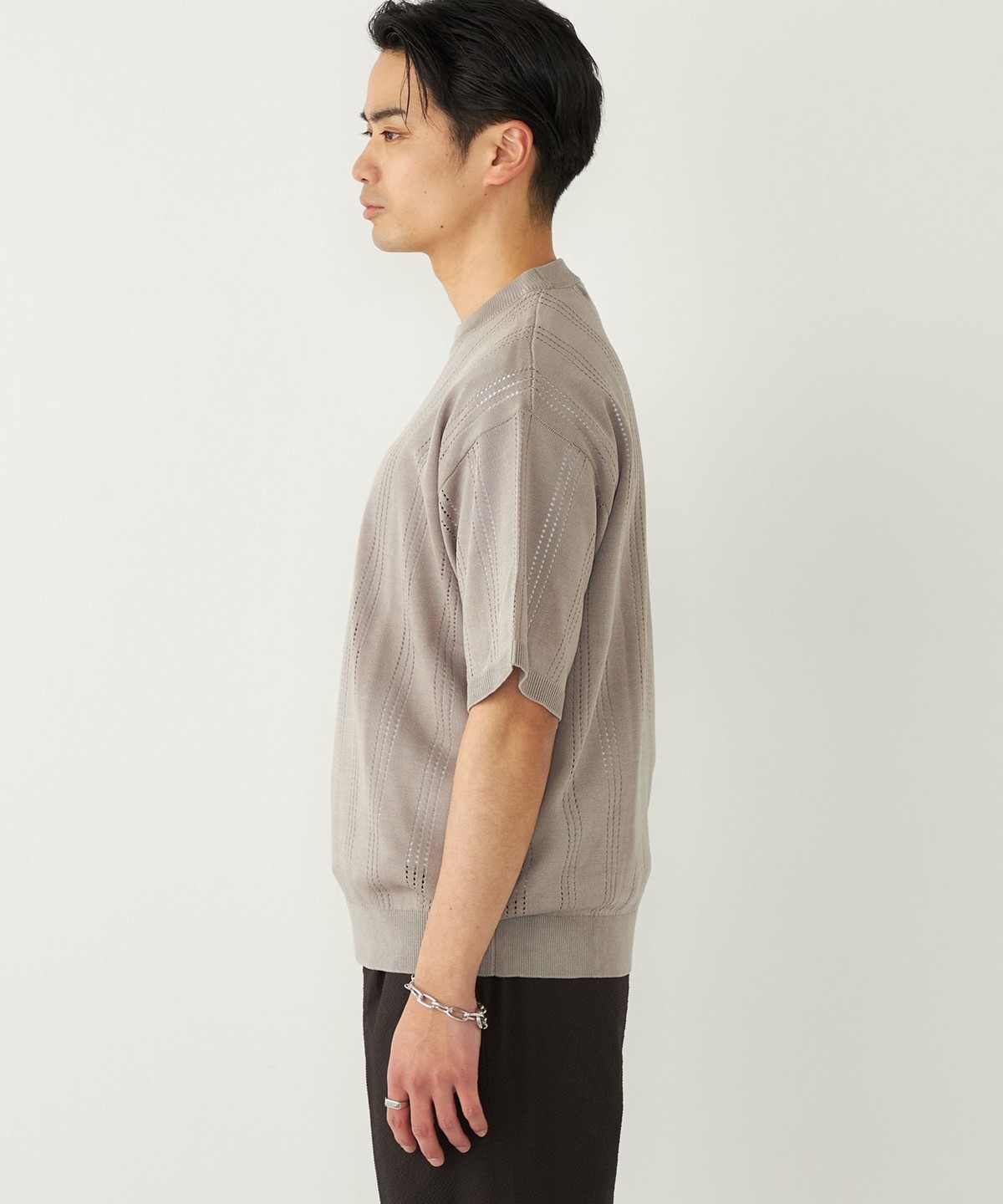 針抜きの間からインナーが見えるデザインで、インナーの色などを変えることによって着こなしの表情の変化をお楽しみいただけます。