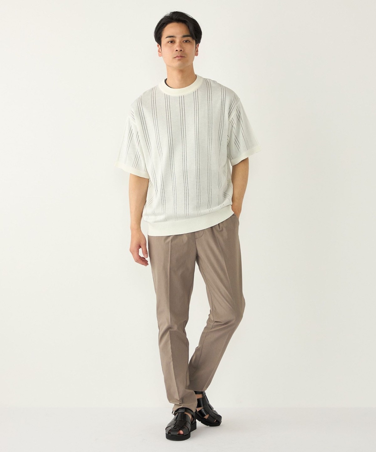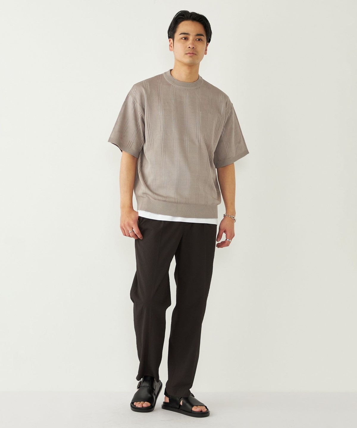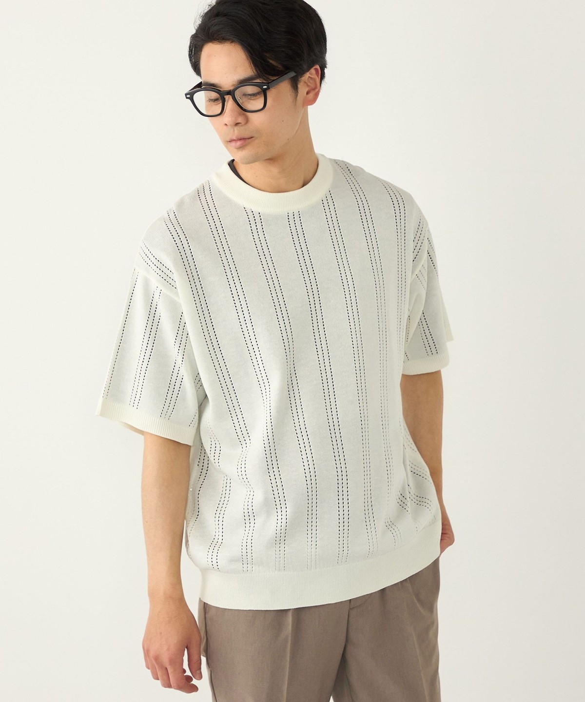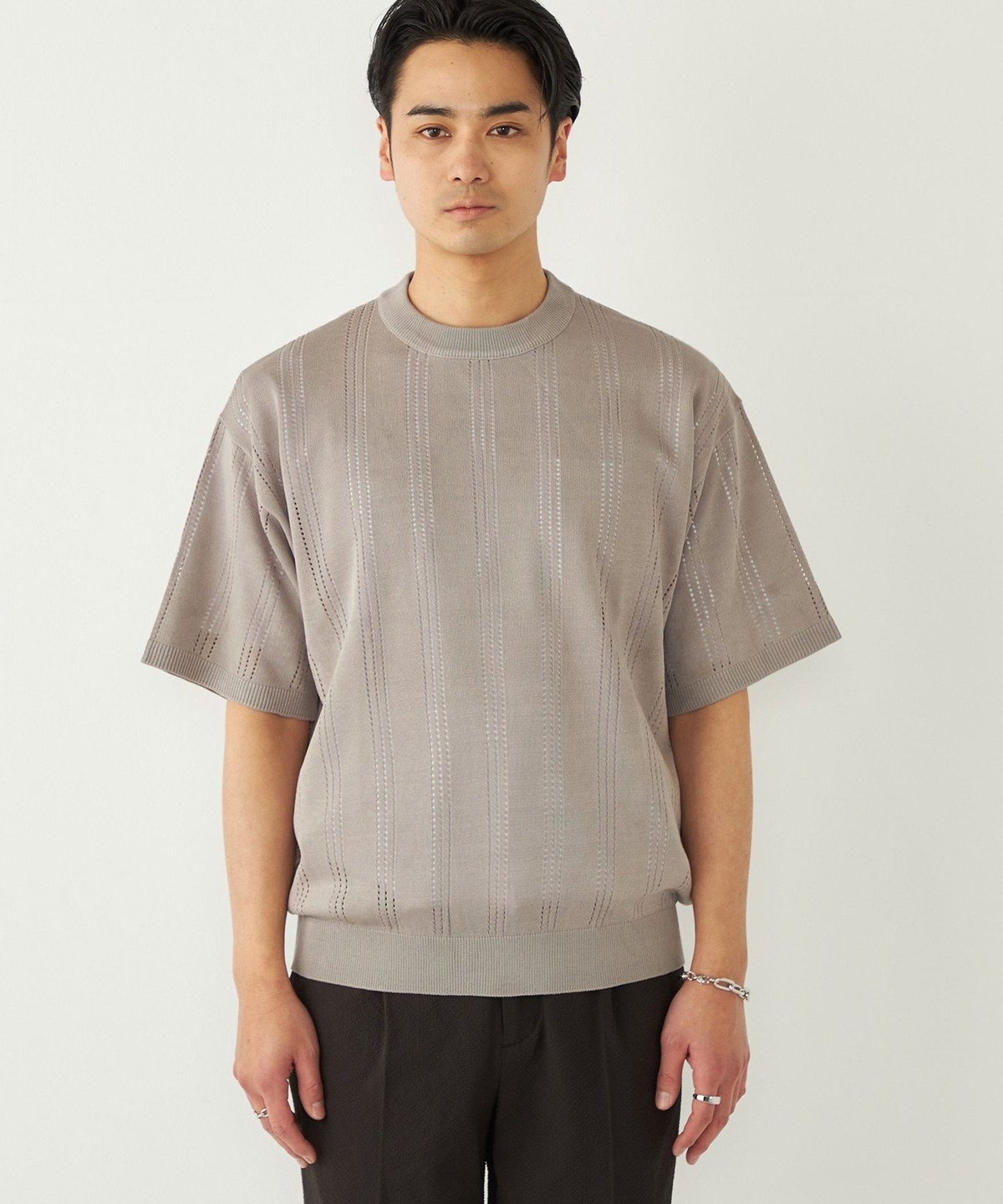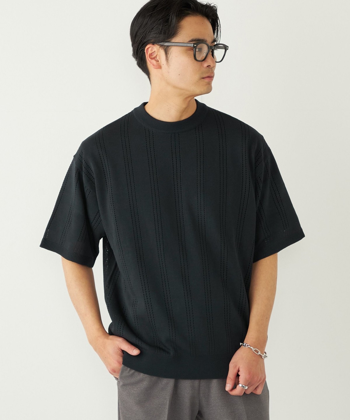 針抜きの間からインナーが見えるデザインで、インナーの色などを変えることによって着こなしの表情の変化をお楽しみいただけます。