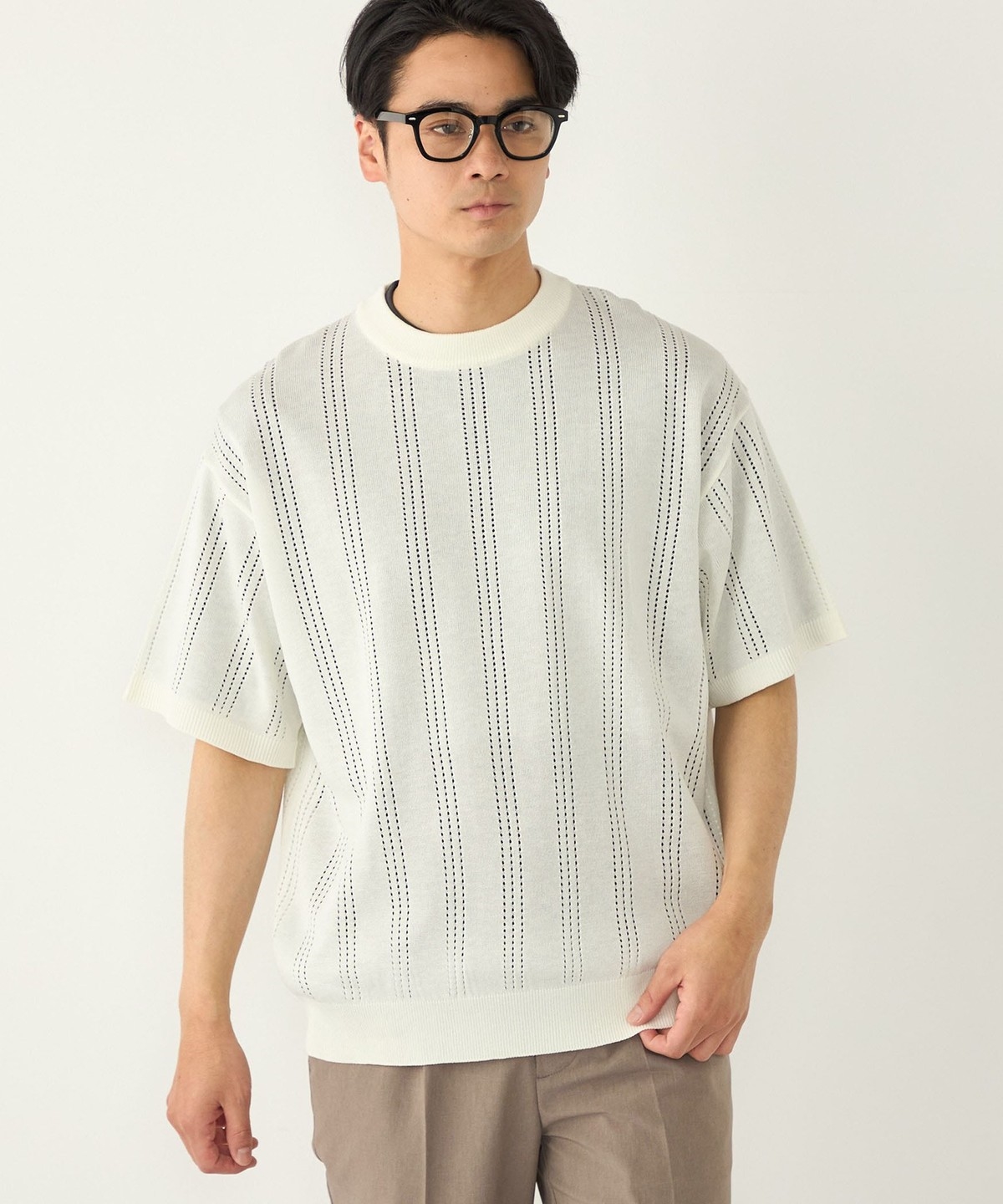 SHIPS ColorsがWEB限定で展開する、ショートスリーブのプルオーバーニット。