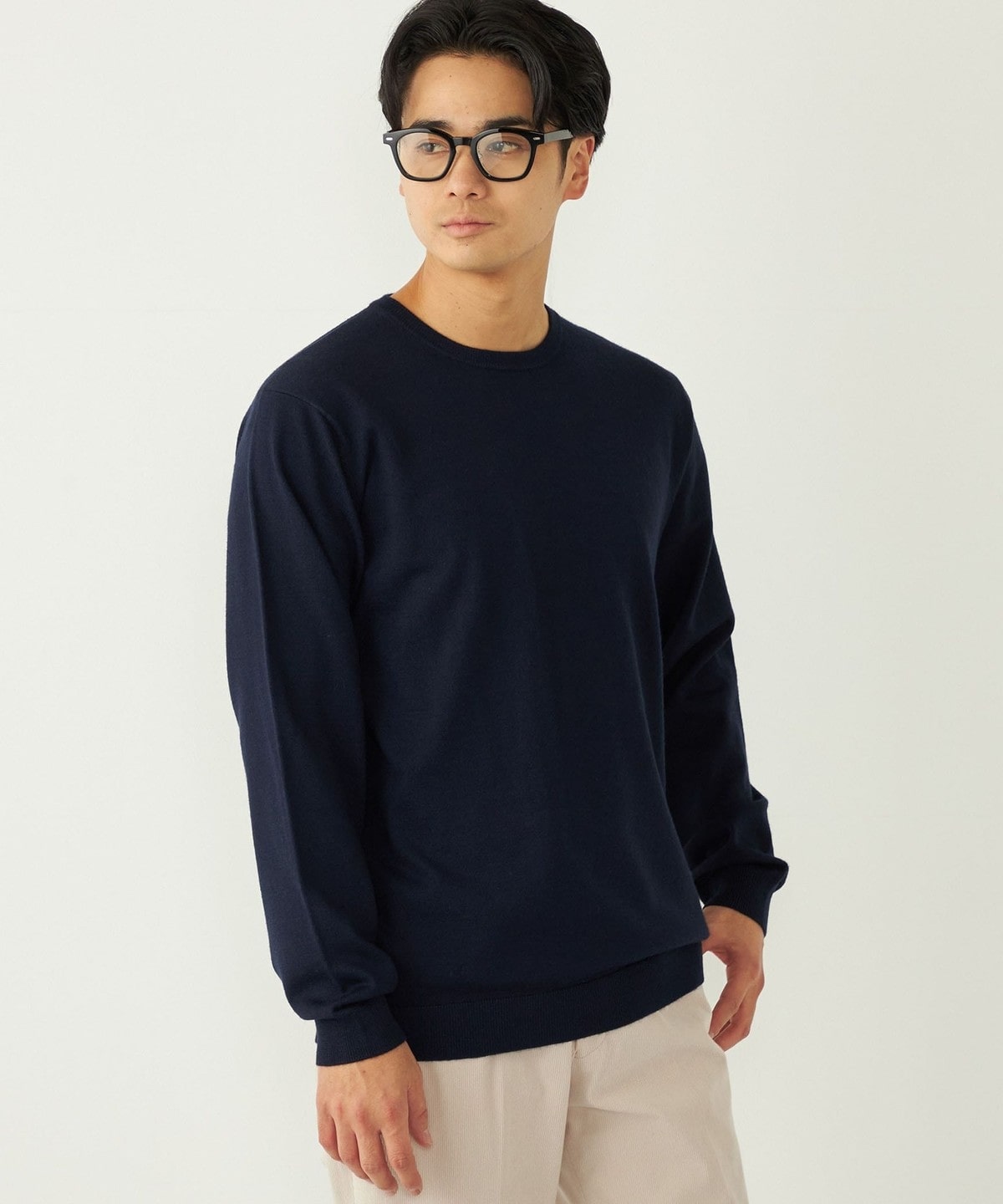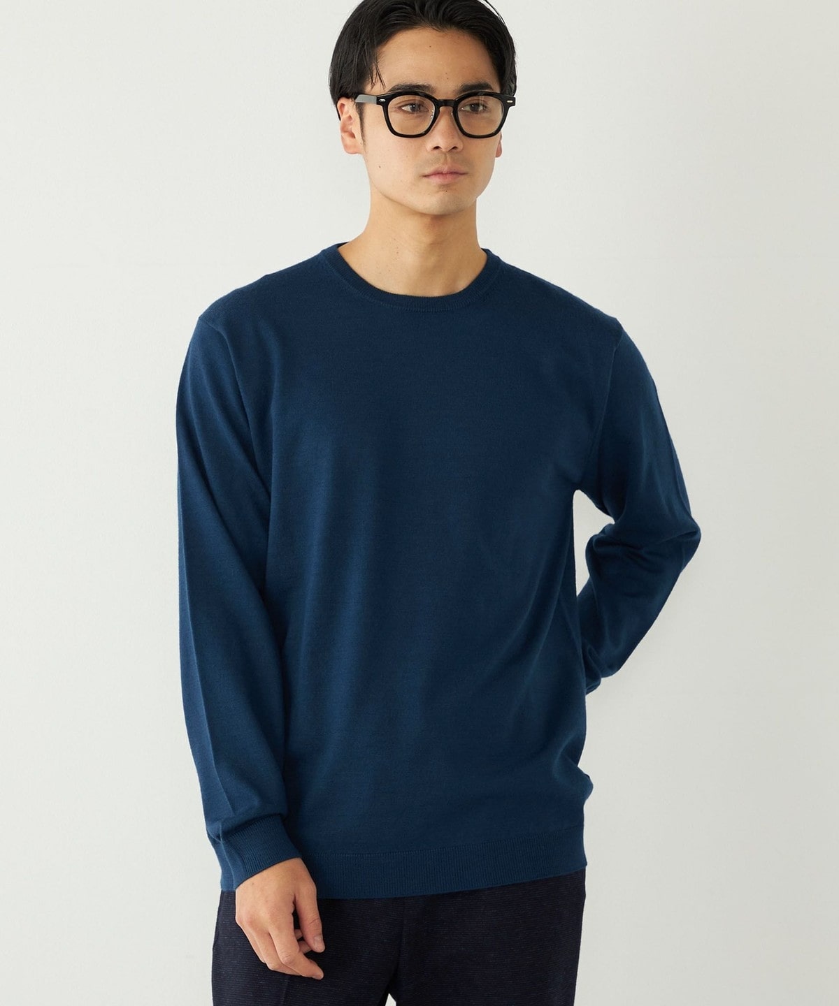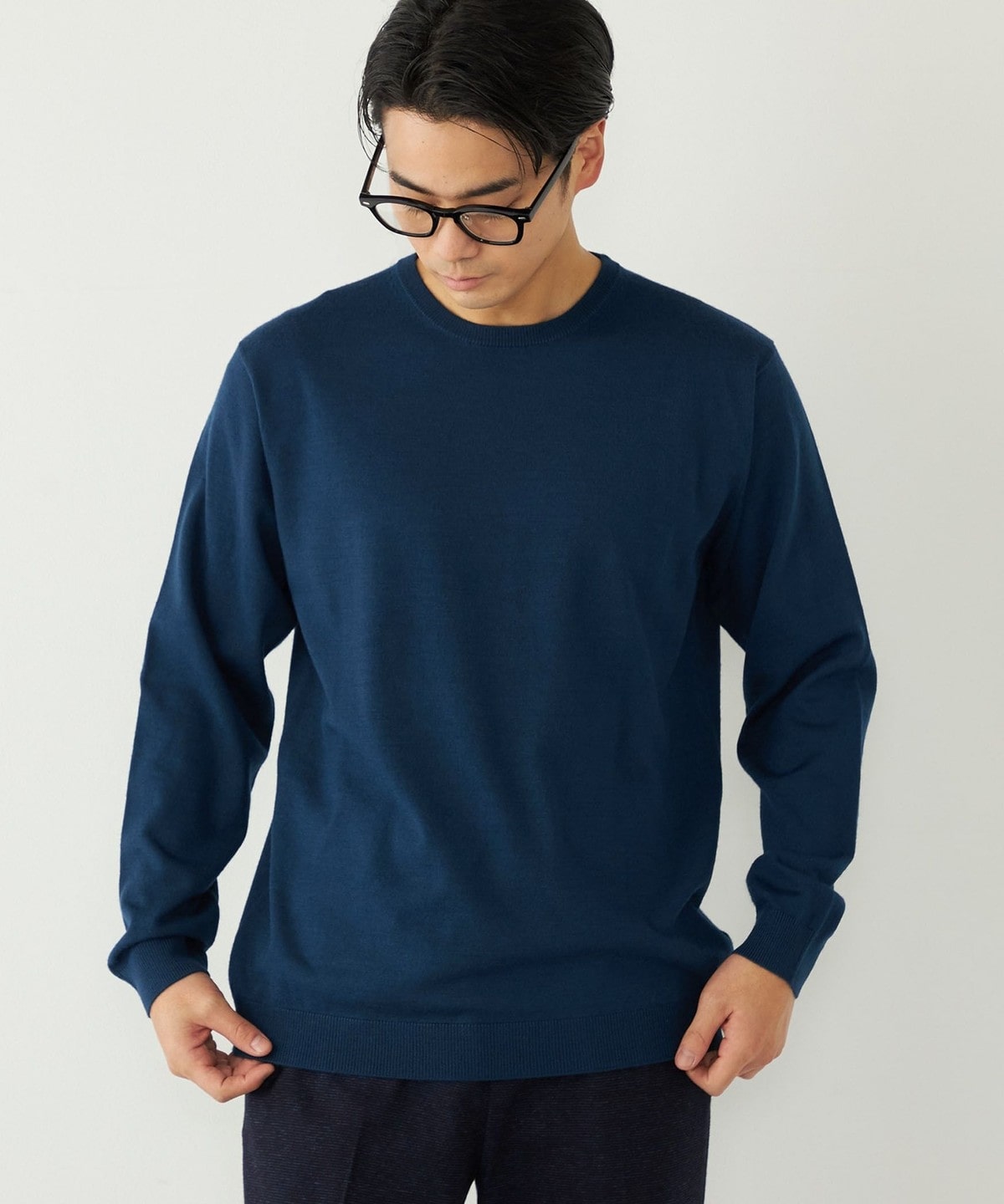 ハイゲージなことできれいめな雰囲気を持った、オーソドックスなクルーネックニットは使い勝手も抜群な1枚です。