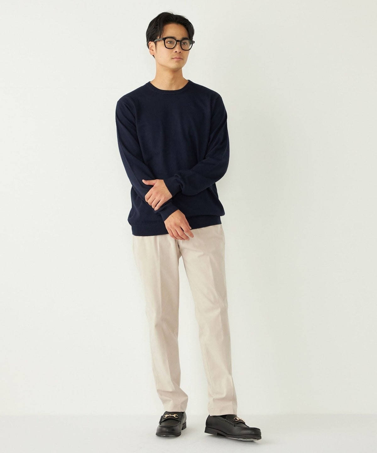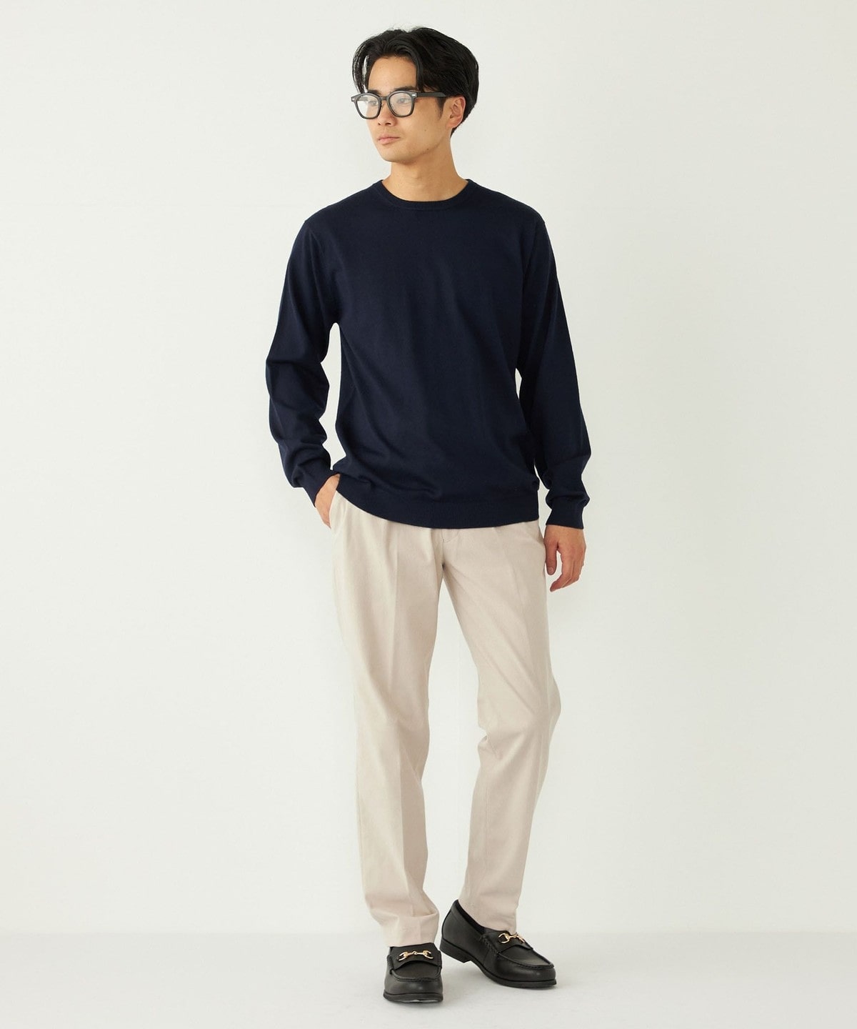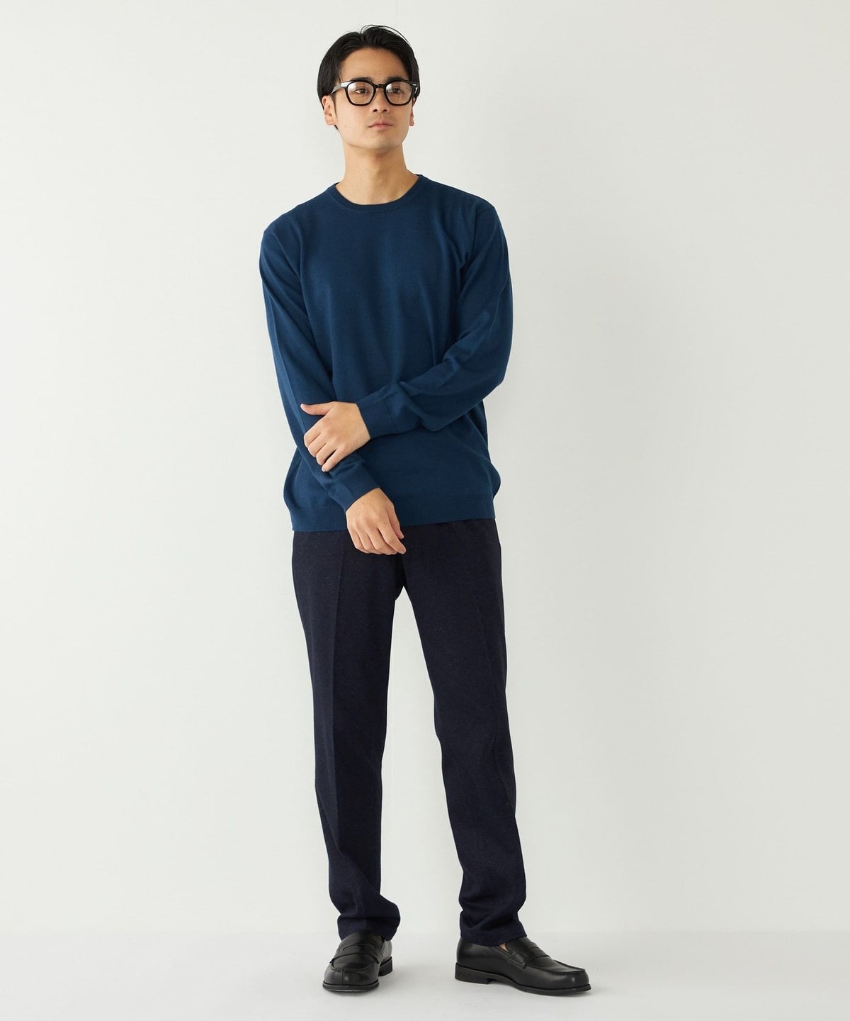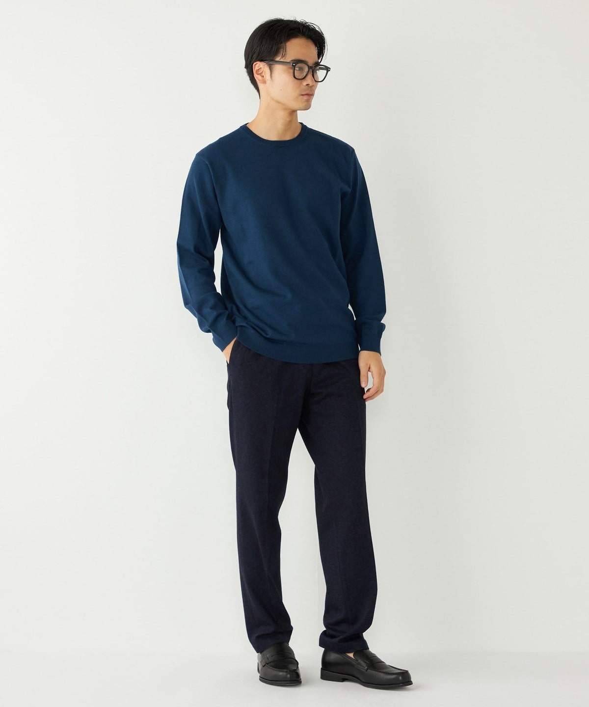 ハイゲージなことできれいめな雰囲気を持った、オーソドックスなクルーネックニットは使い勝手も抜群な1枚です。