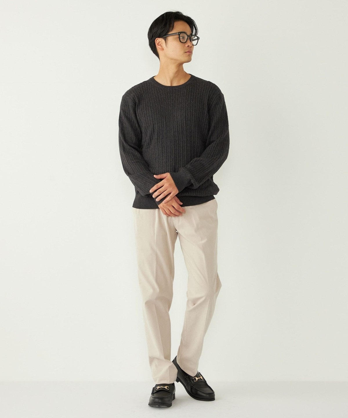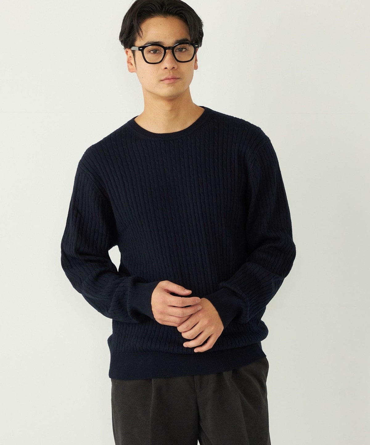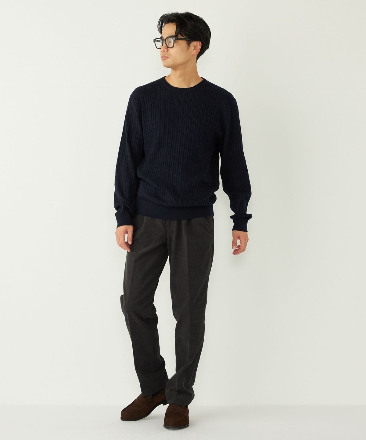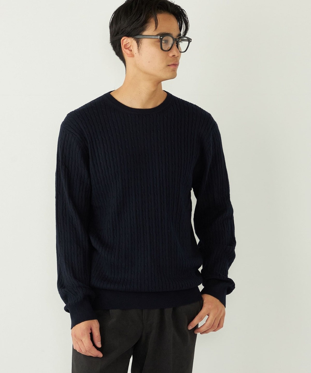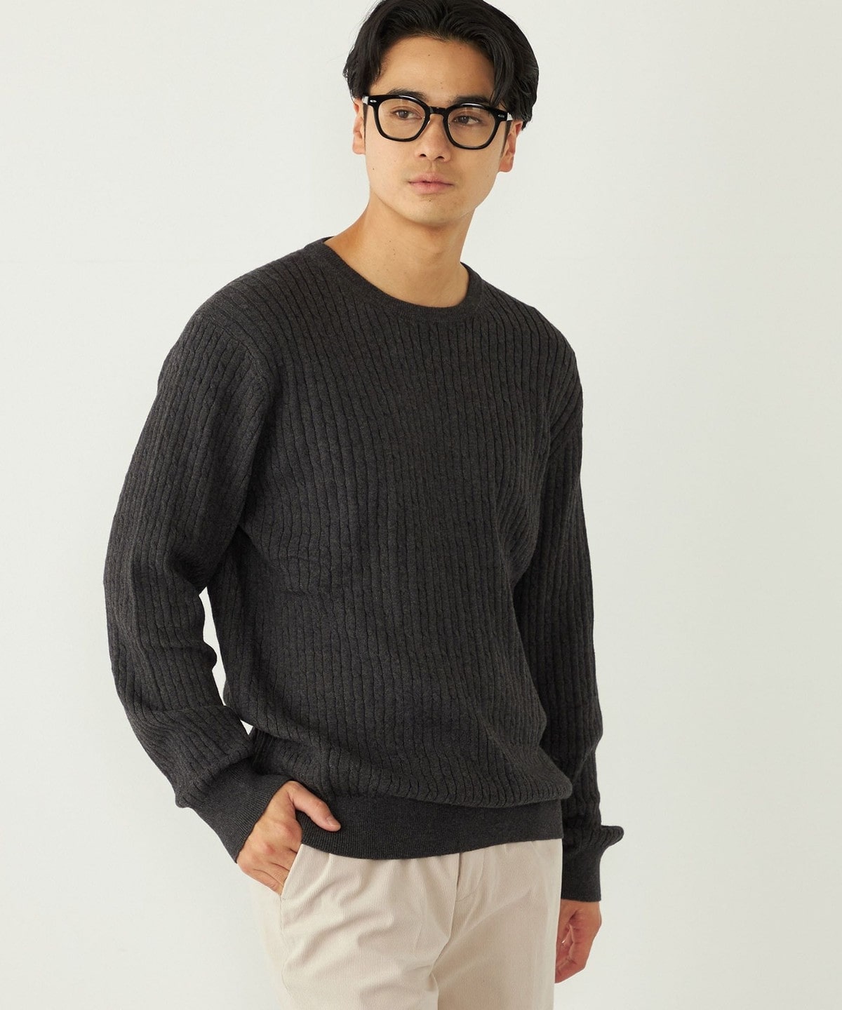 落ち着いた細めのケーブル柄で、トップスとしてはもちろん、ジャケットなどのインナーにもおすすめ。