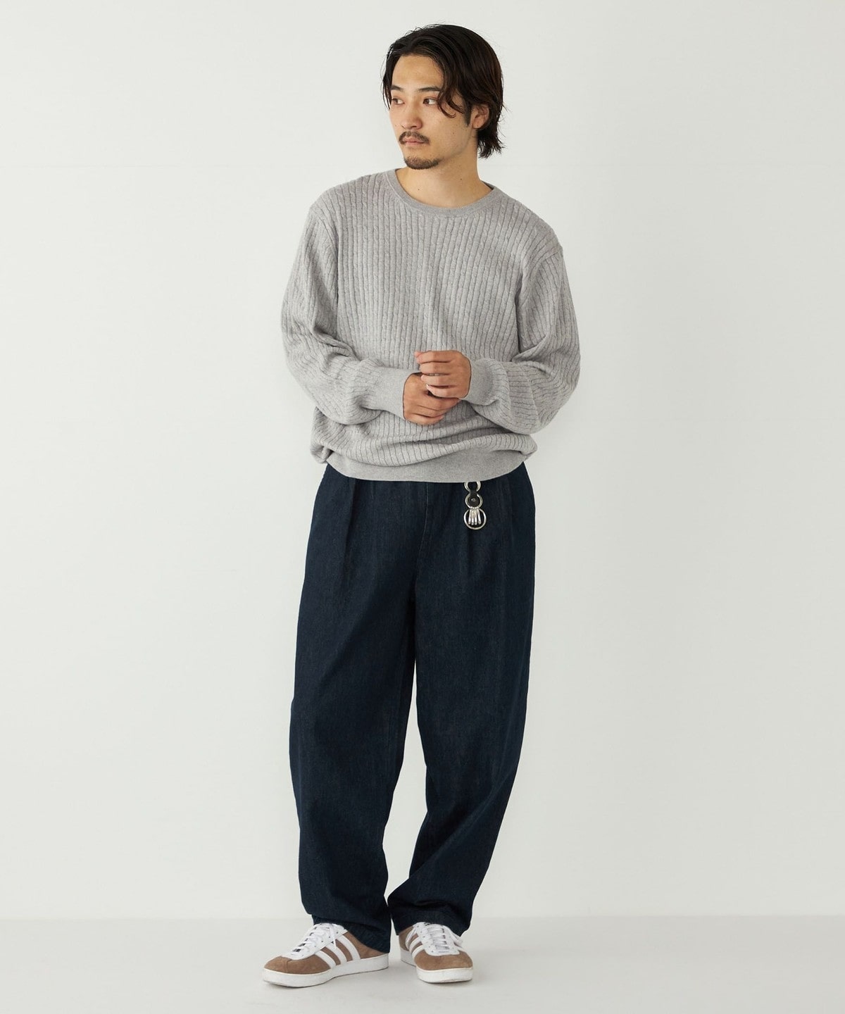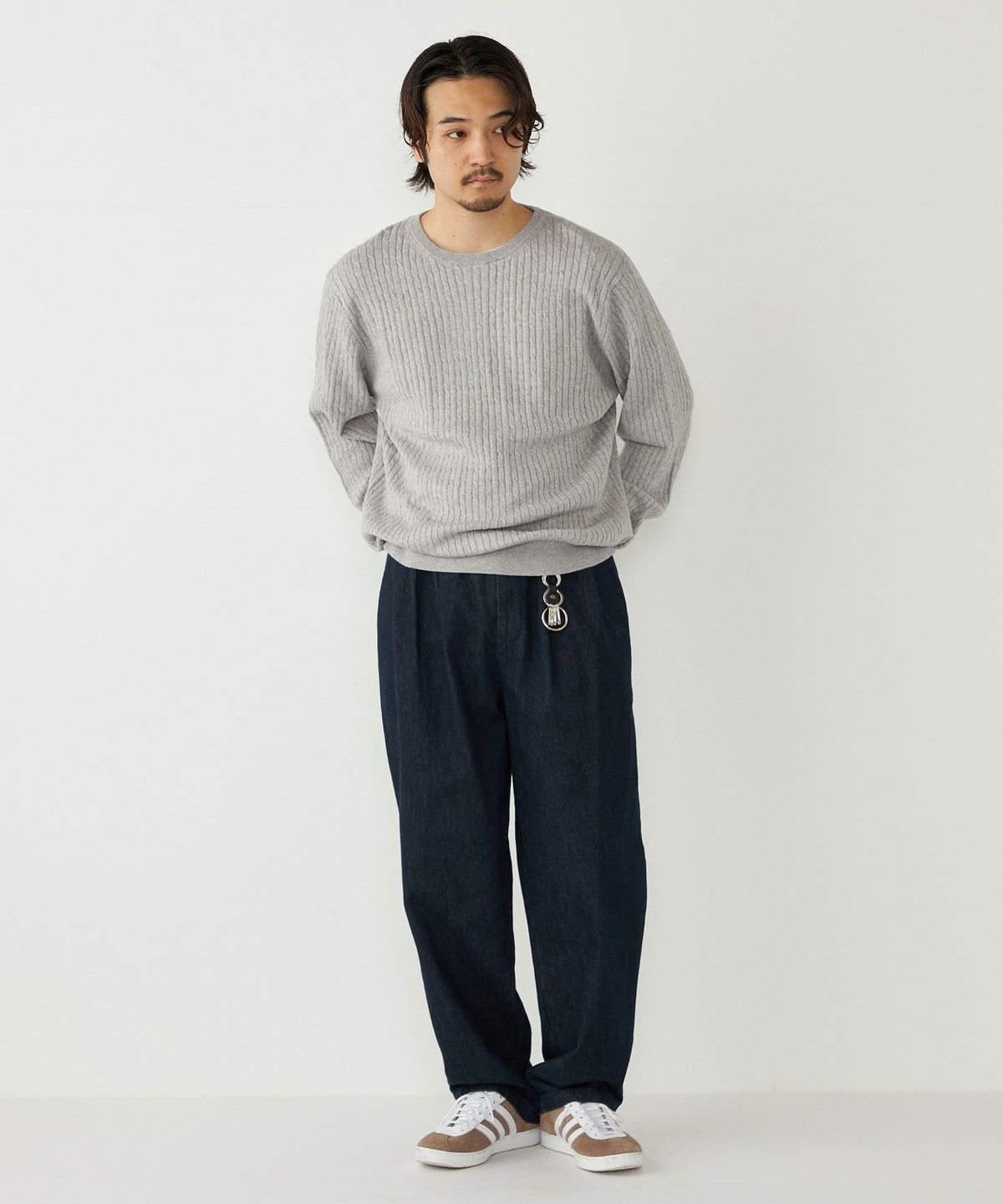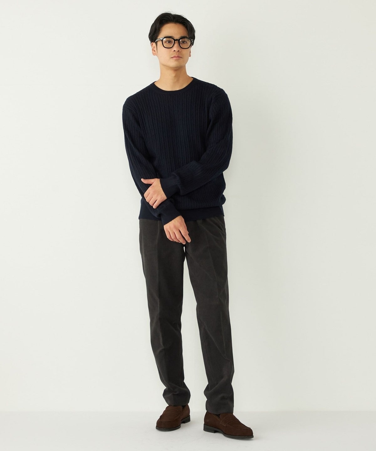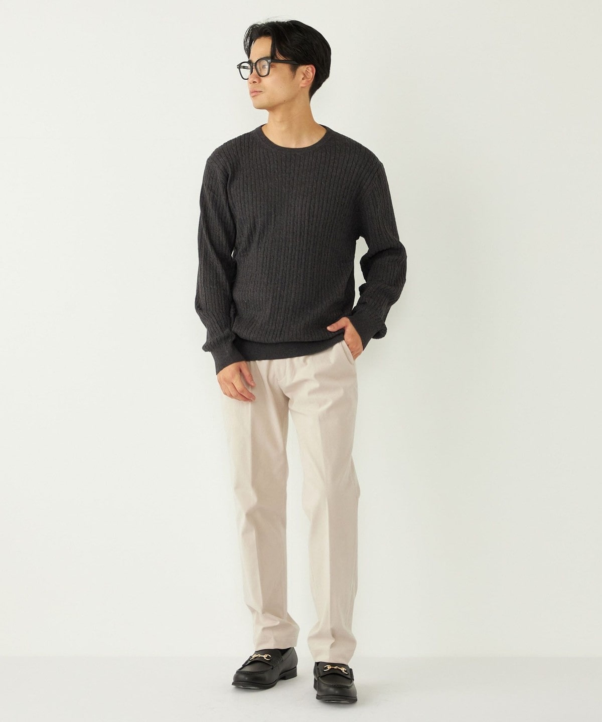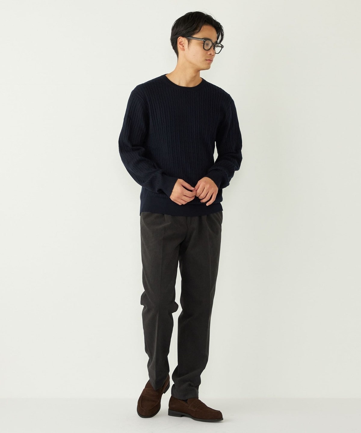 落ち着いた細めのケーブル柄で、トップスとしてはもちろん、ジャケットなどのインナーにもおすすめ。
