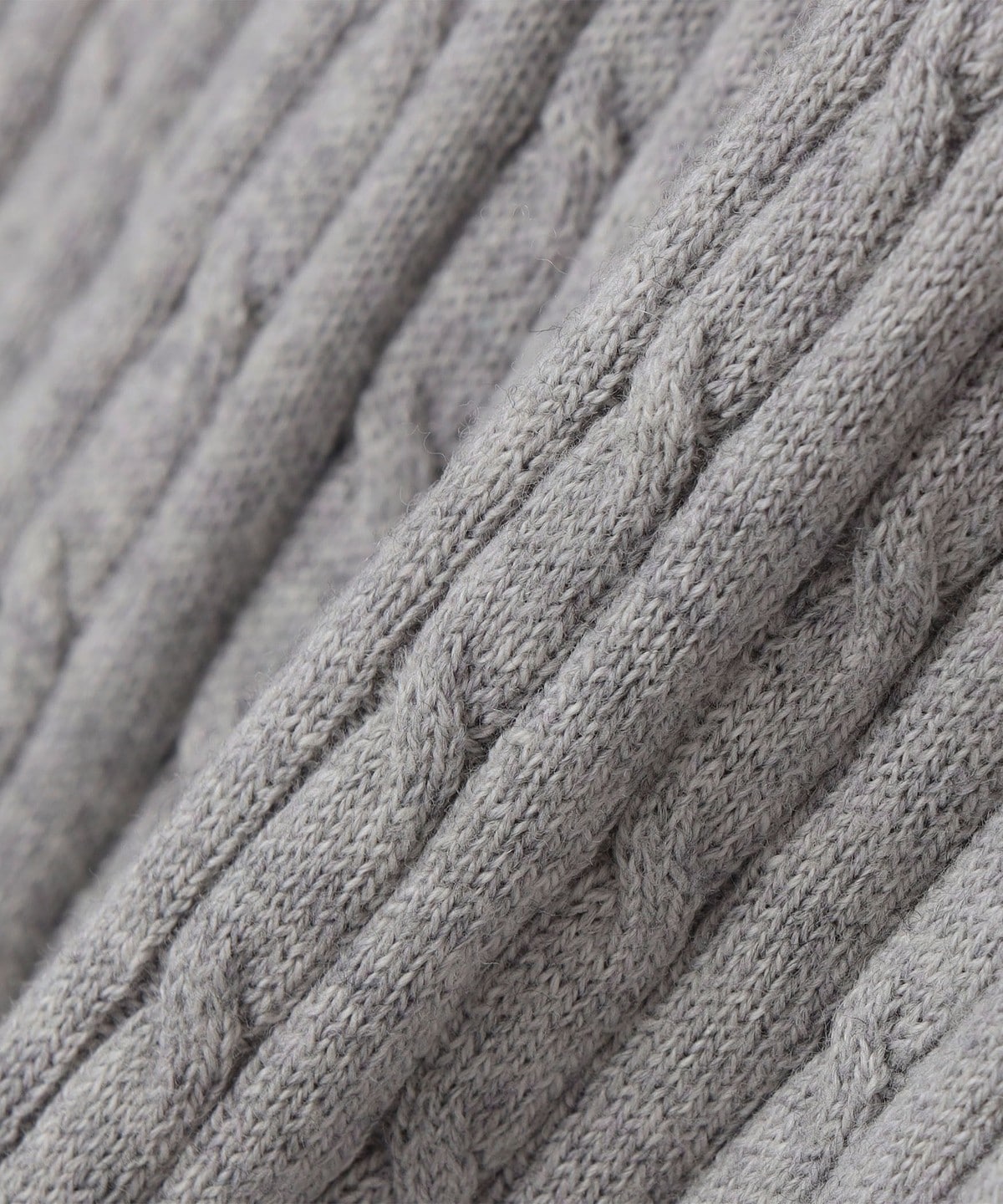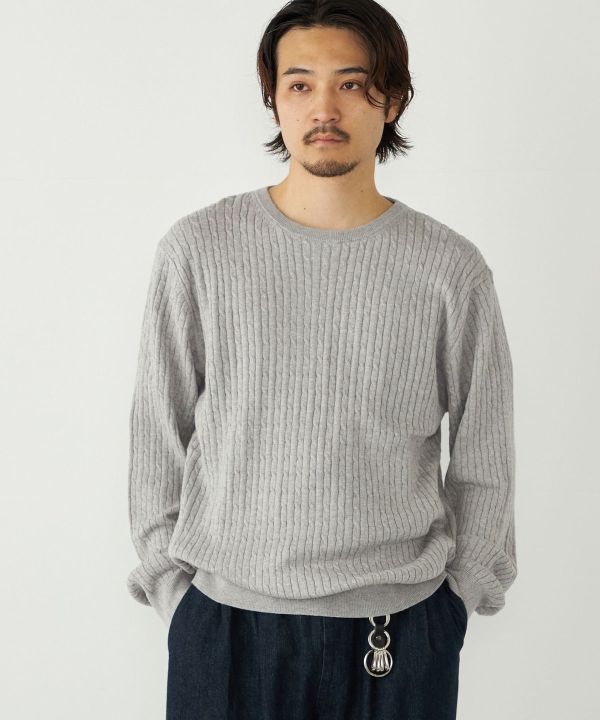 カシミヤを混紡したコットン素材を使用したケーブルニット。