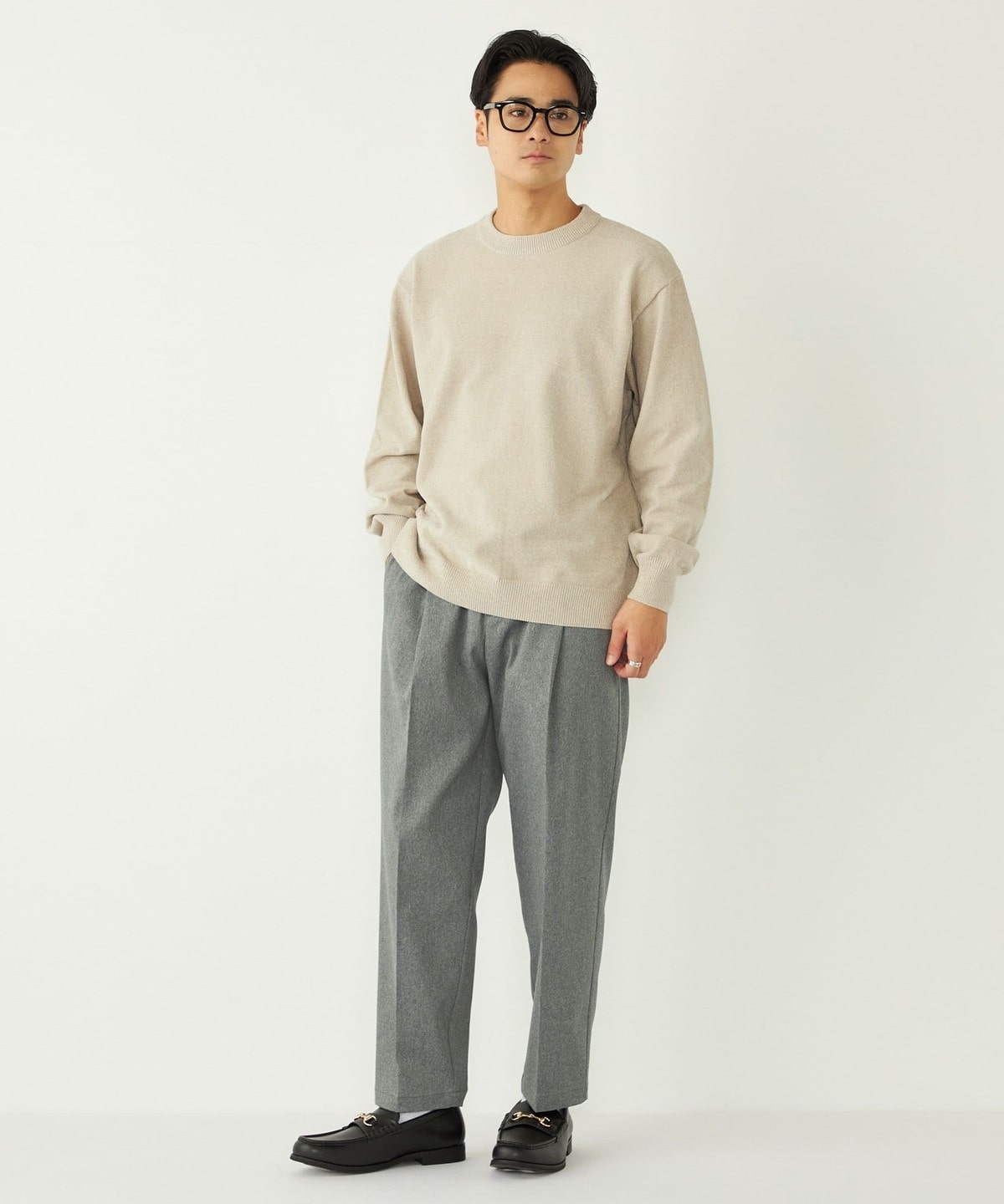 カジュアルなボトムスだけでなく、スラックスなどとのきれいめな合わせもおすすめです。