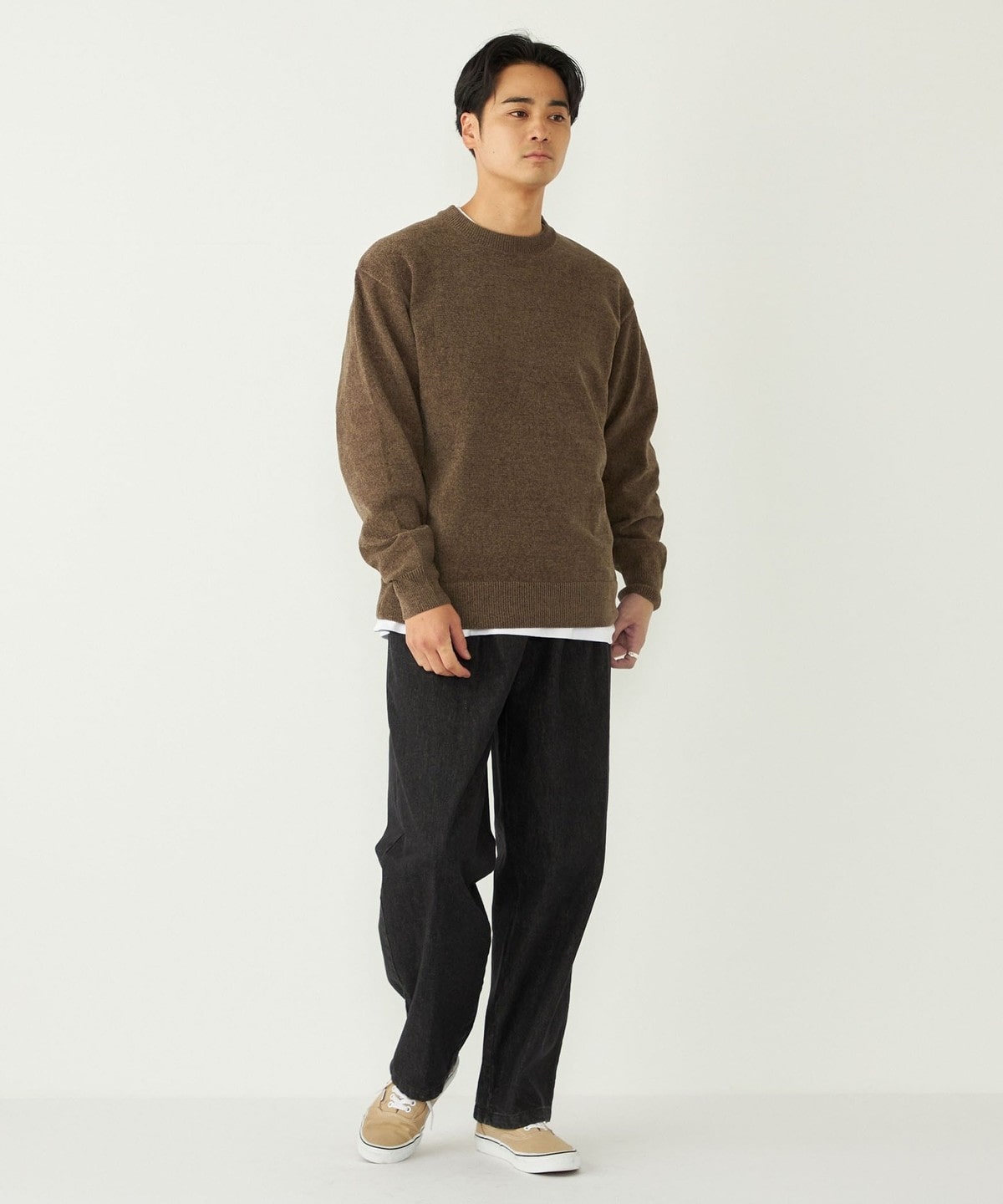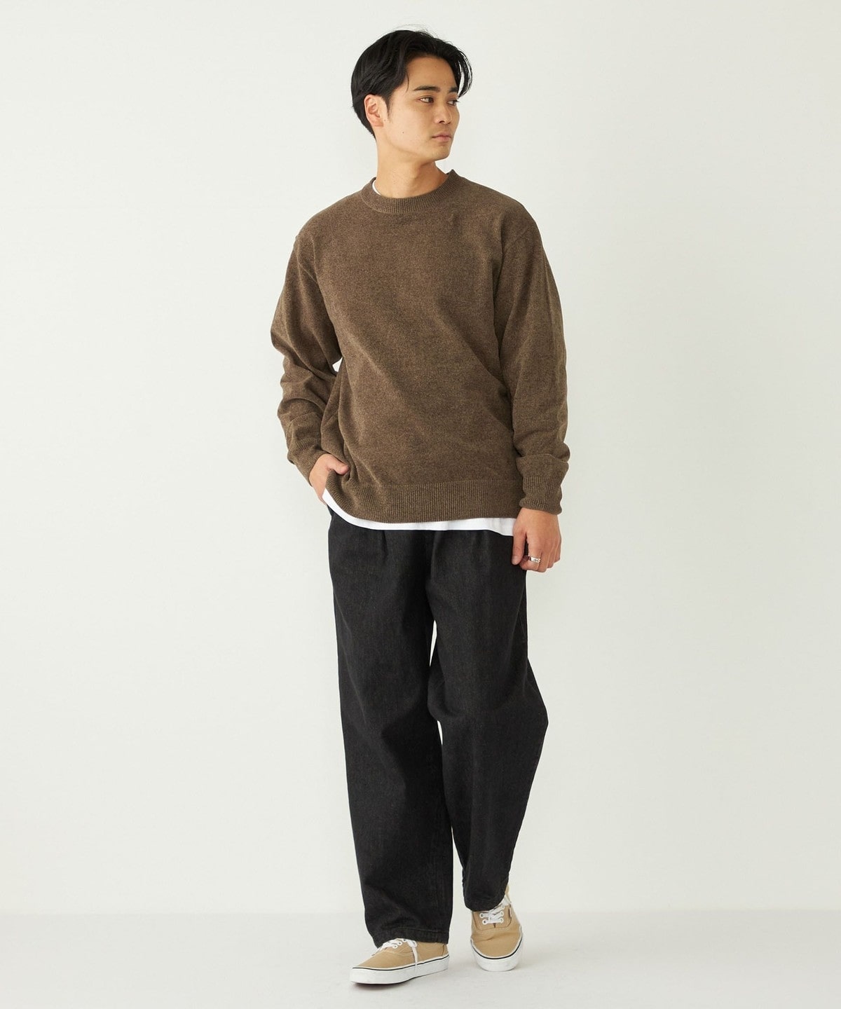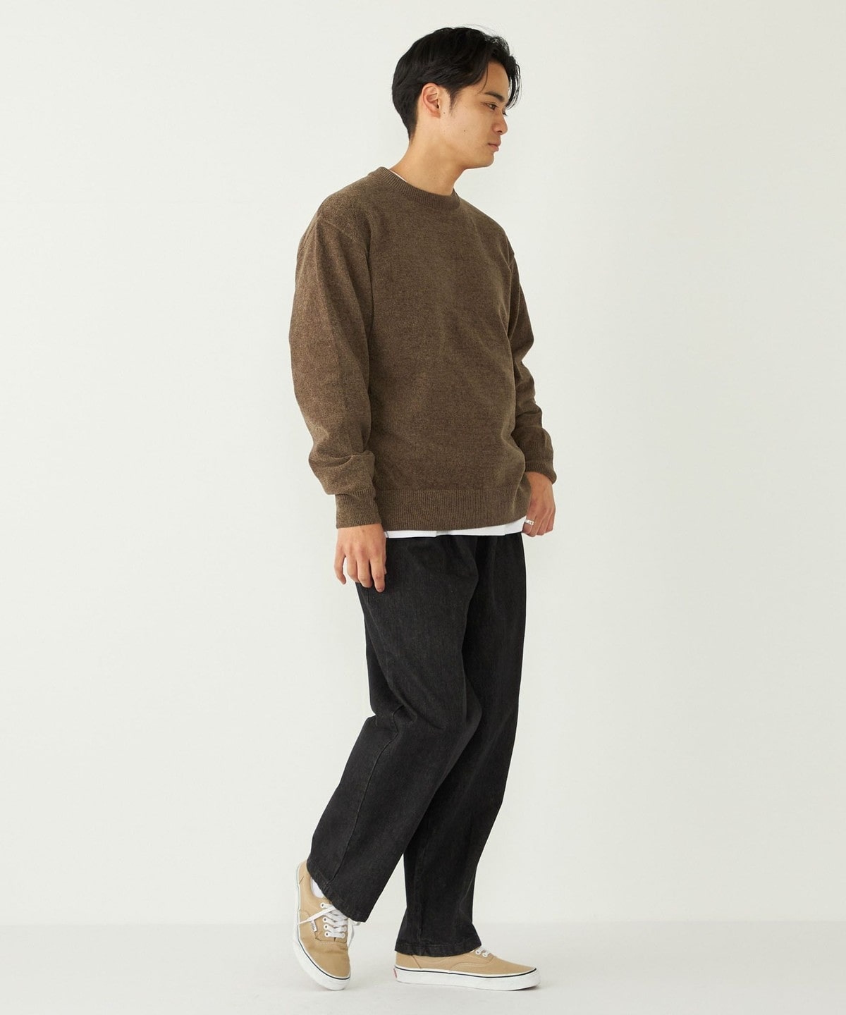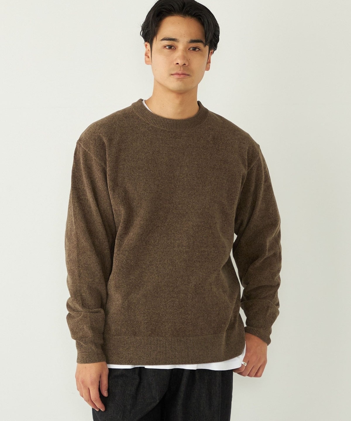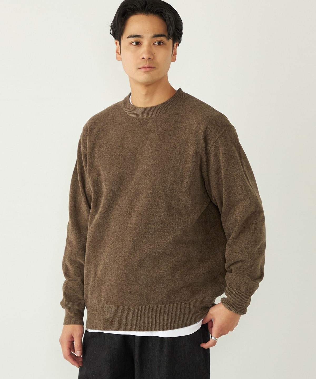モールニット特有の独特なウォーム感も持ち合わせており、着こなしに季節感を与えてくれます。