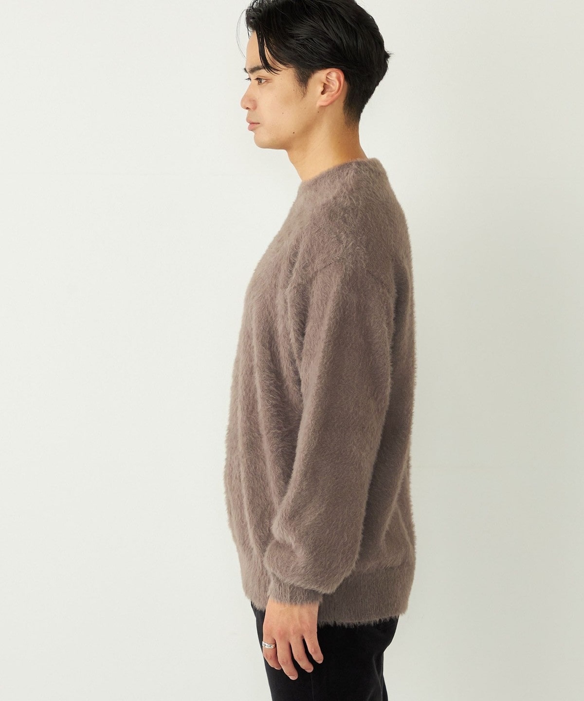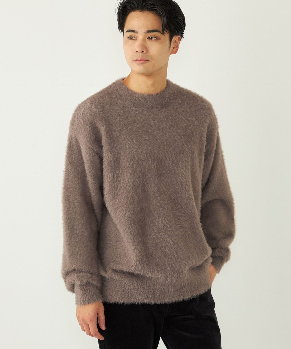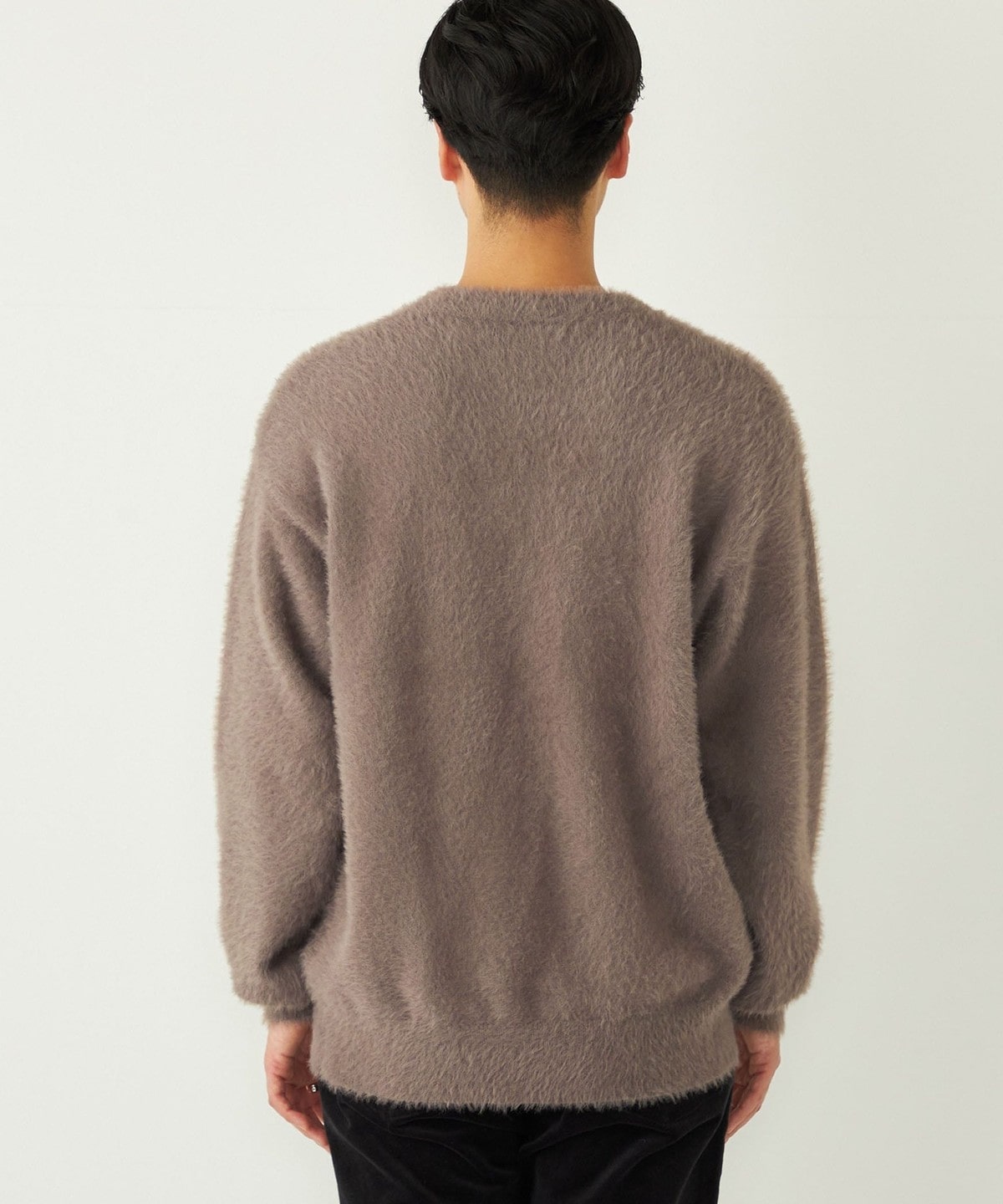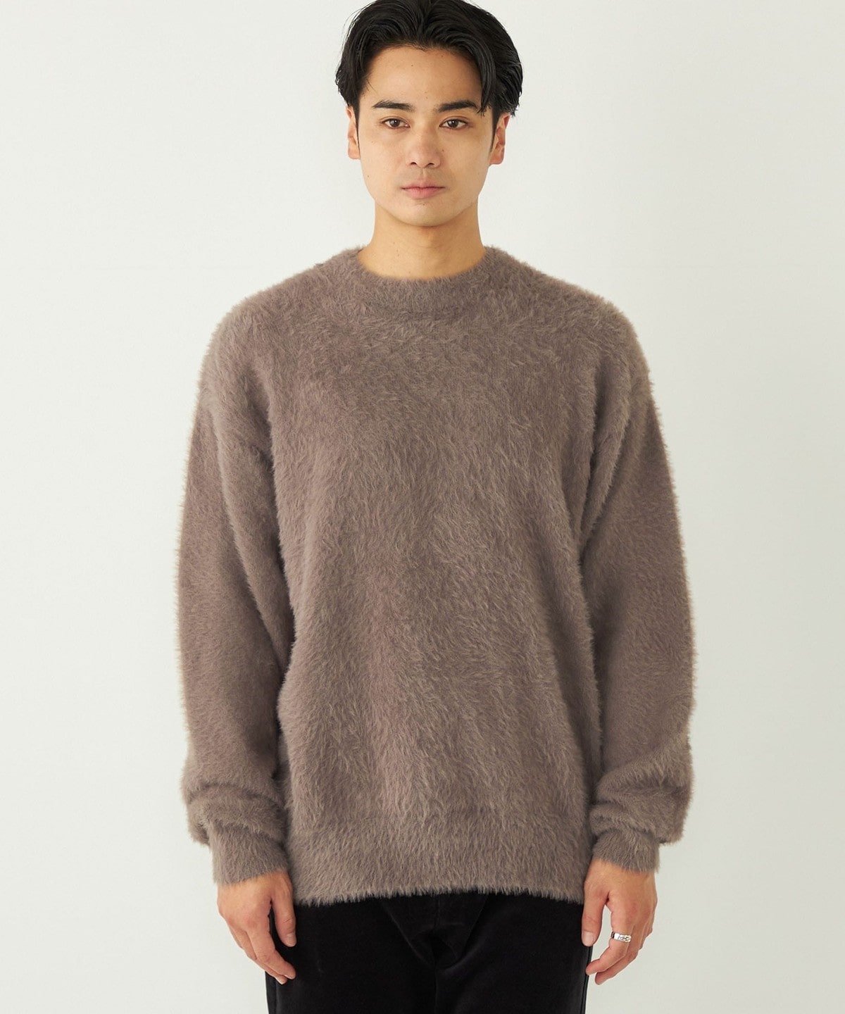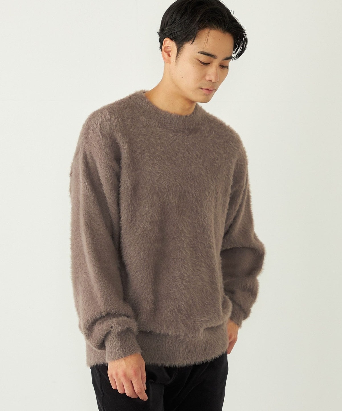 毛足の長いシャギー糸を使用したクルーネックニット。