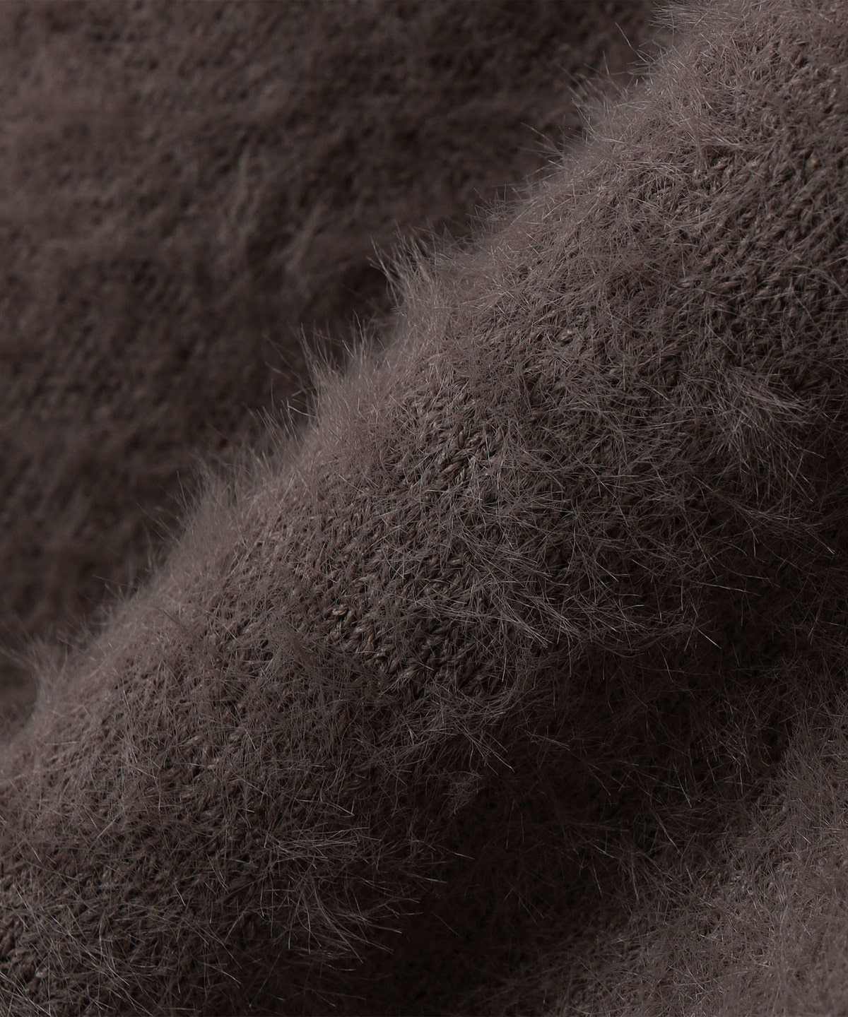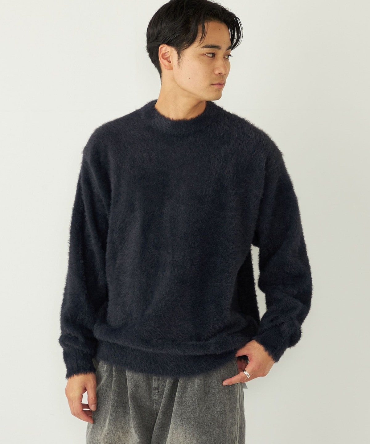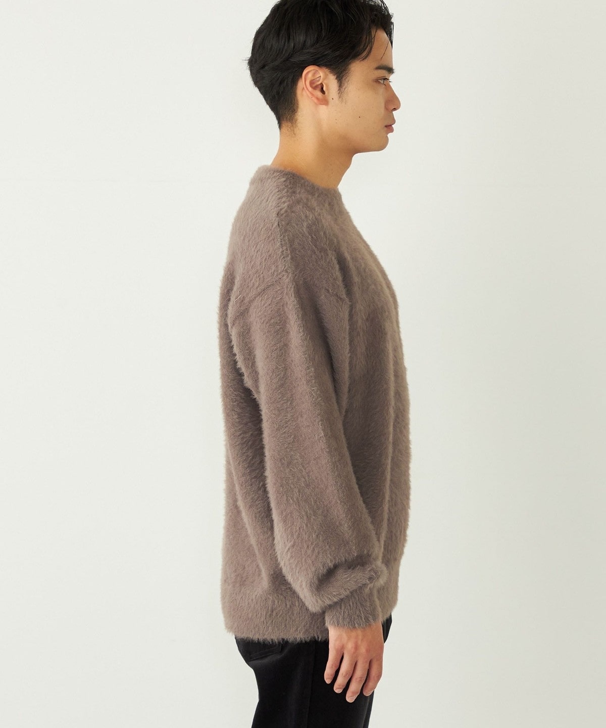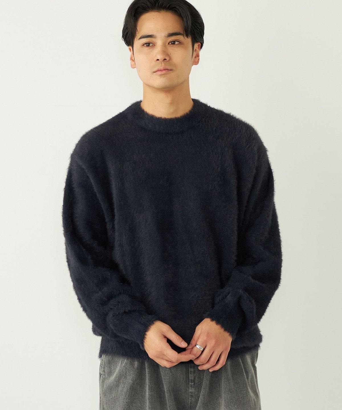 毛足の長いシャギー糸を使用したクルーネックニット。