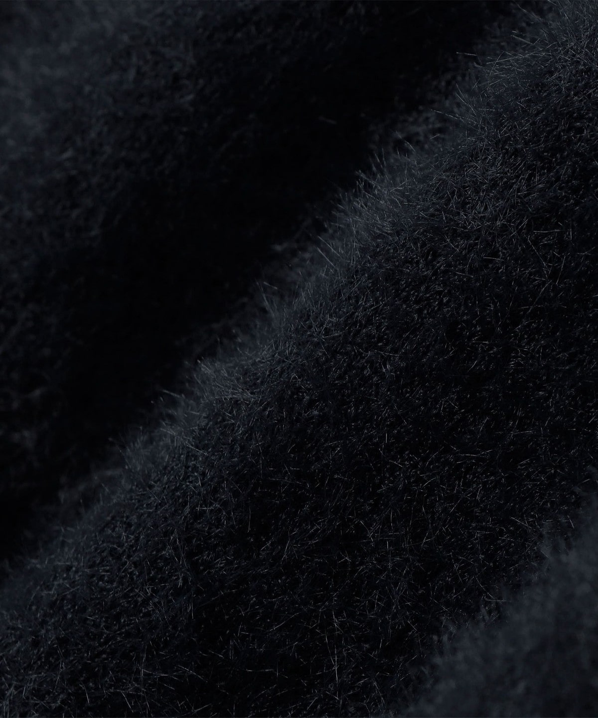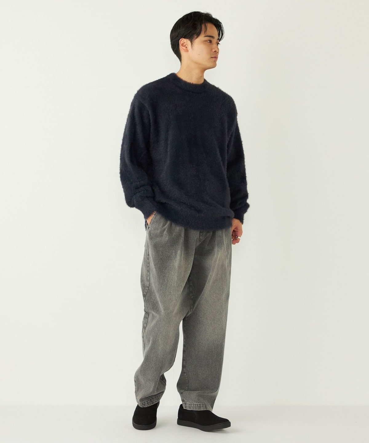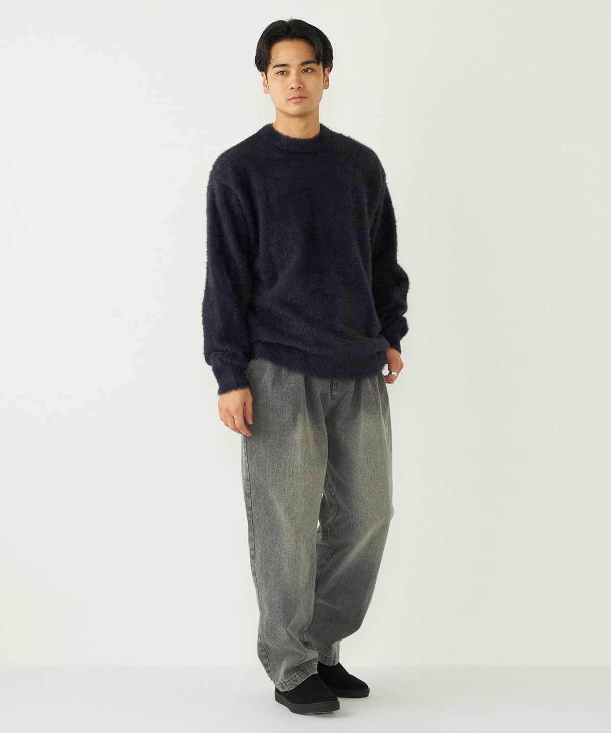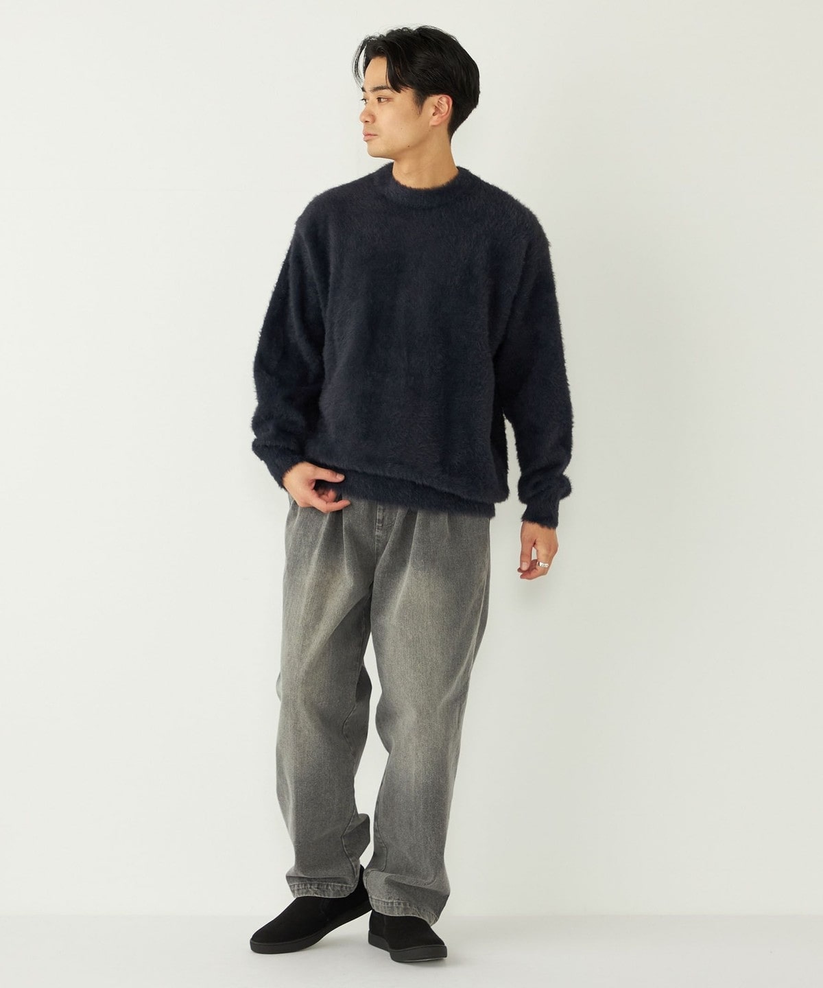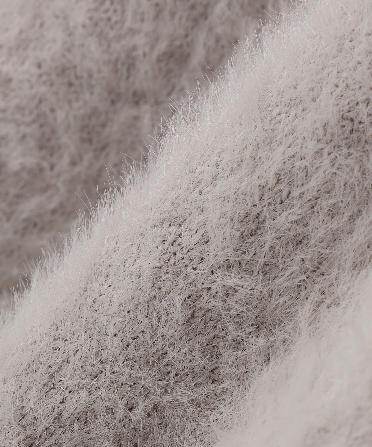 毛足の長いシャギー糸を使用したクルーネックニット。