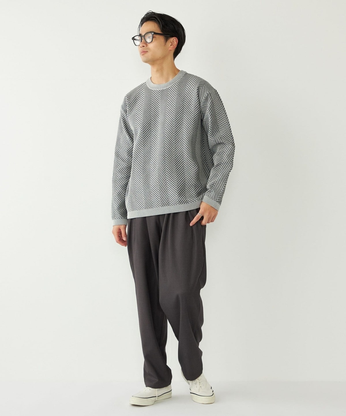 総柄ながらコーディネートに取り入れやすいヘリンボーン柄を採用。