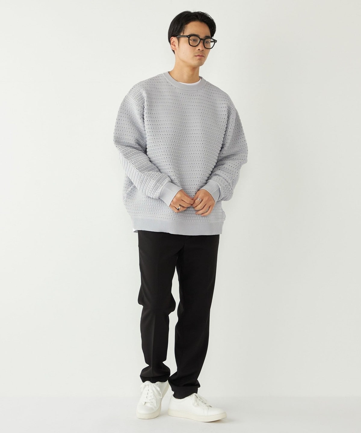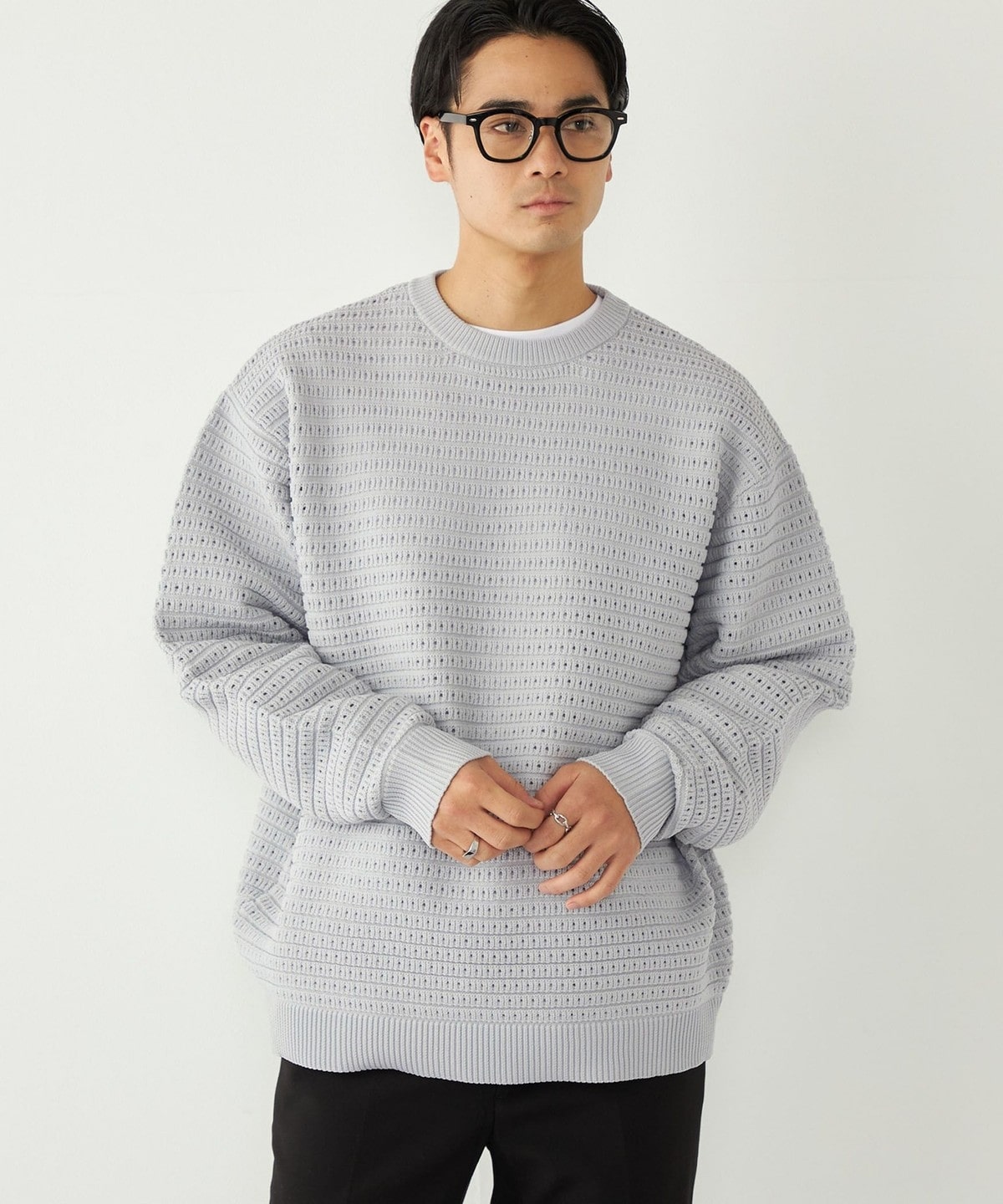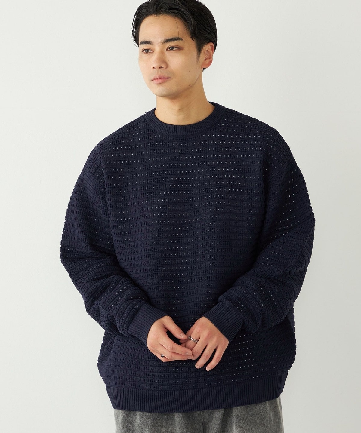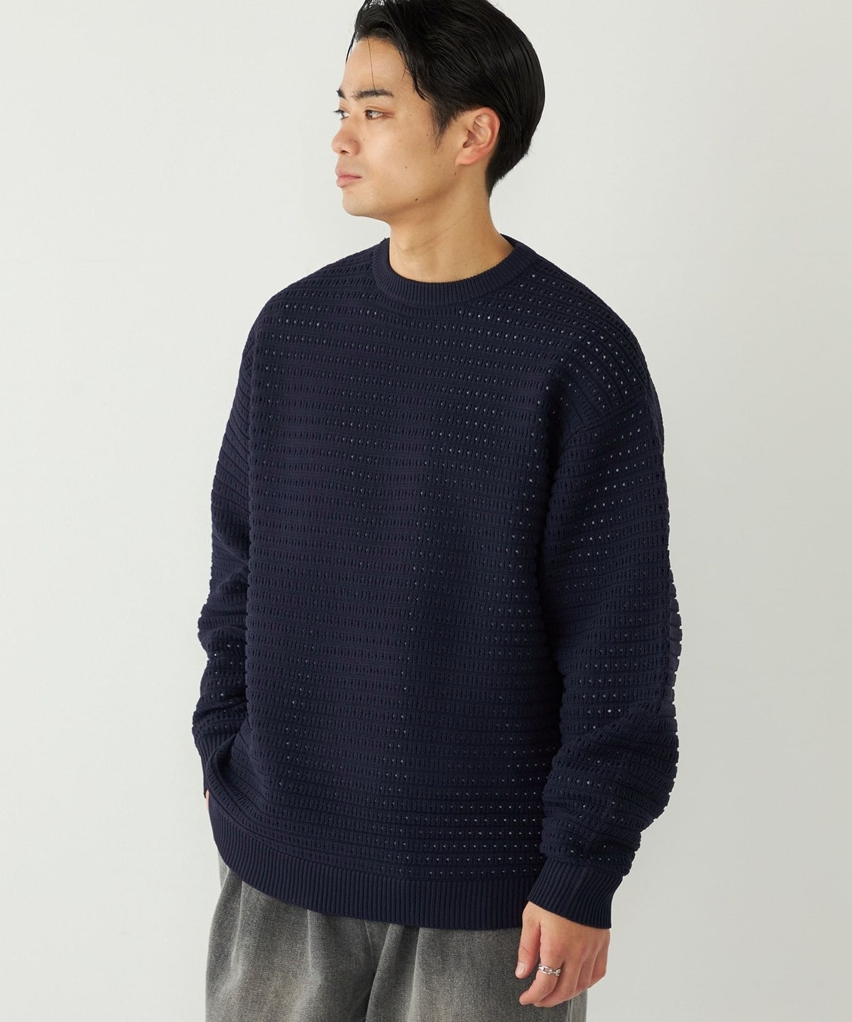 2. 《予約》SHIPS Colors:〈洗濯機可能〉スポンジ メッシュ ニット◆ ライトグレー
