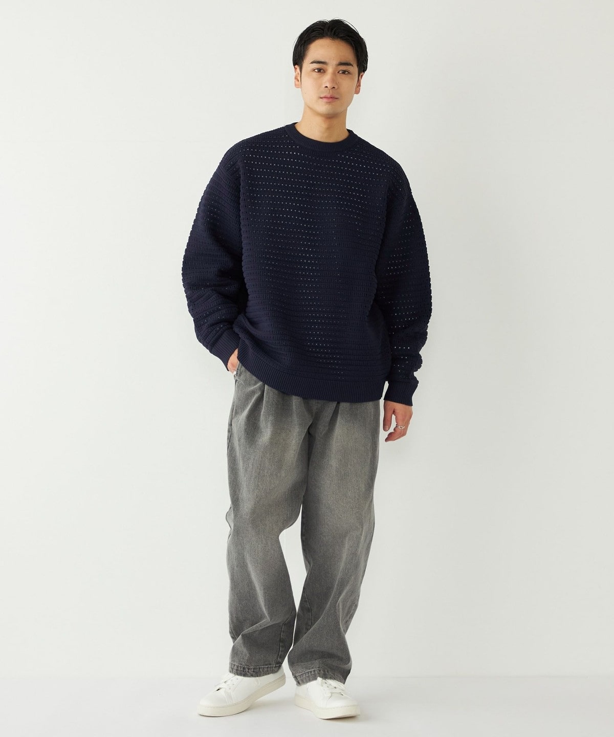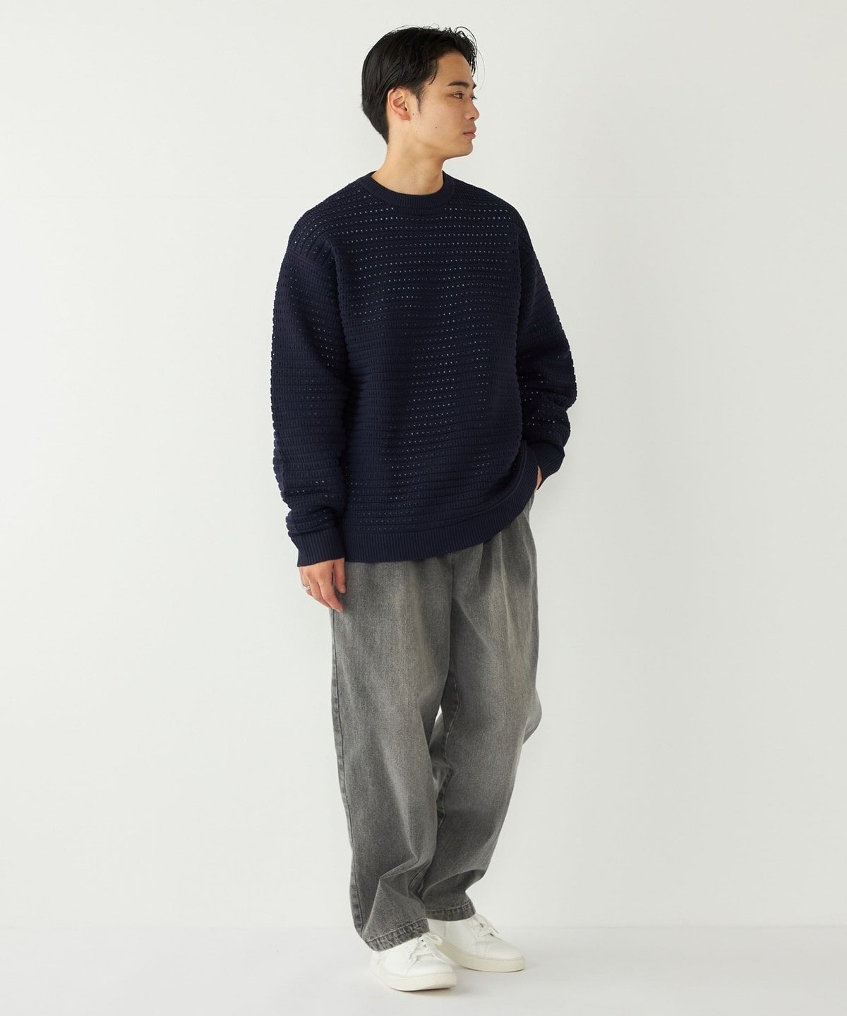 1. 《予約》SHIPS Colors:〈洗濯機可能〉スポンジ メッシュ ニット◆ ネイビー