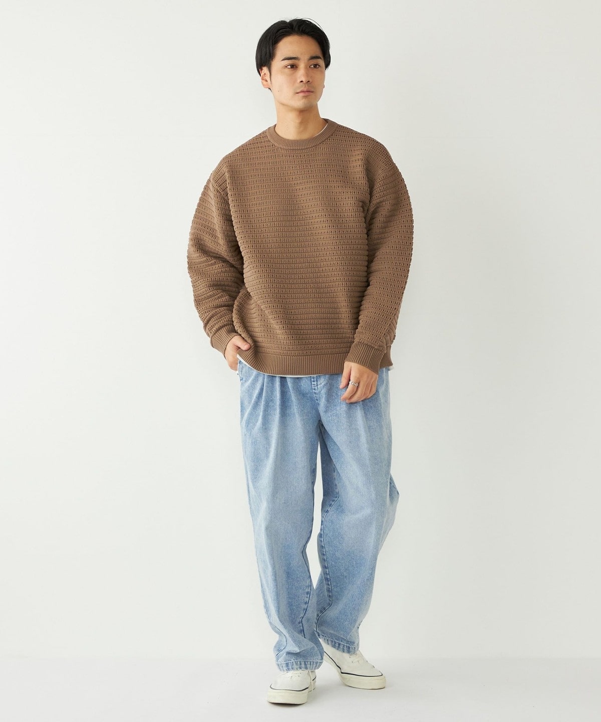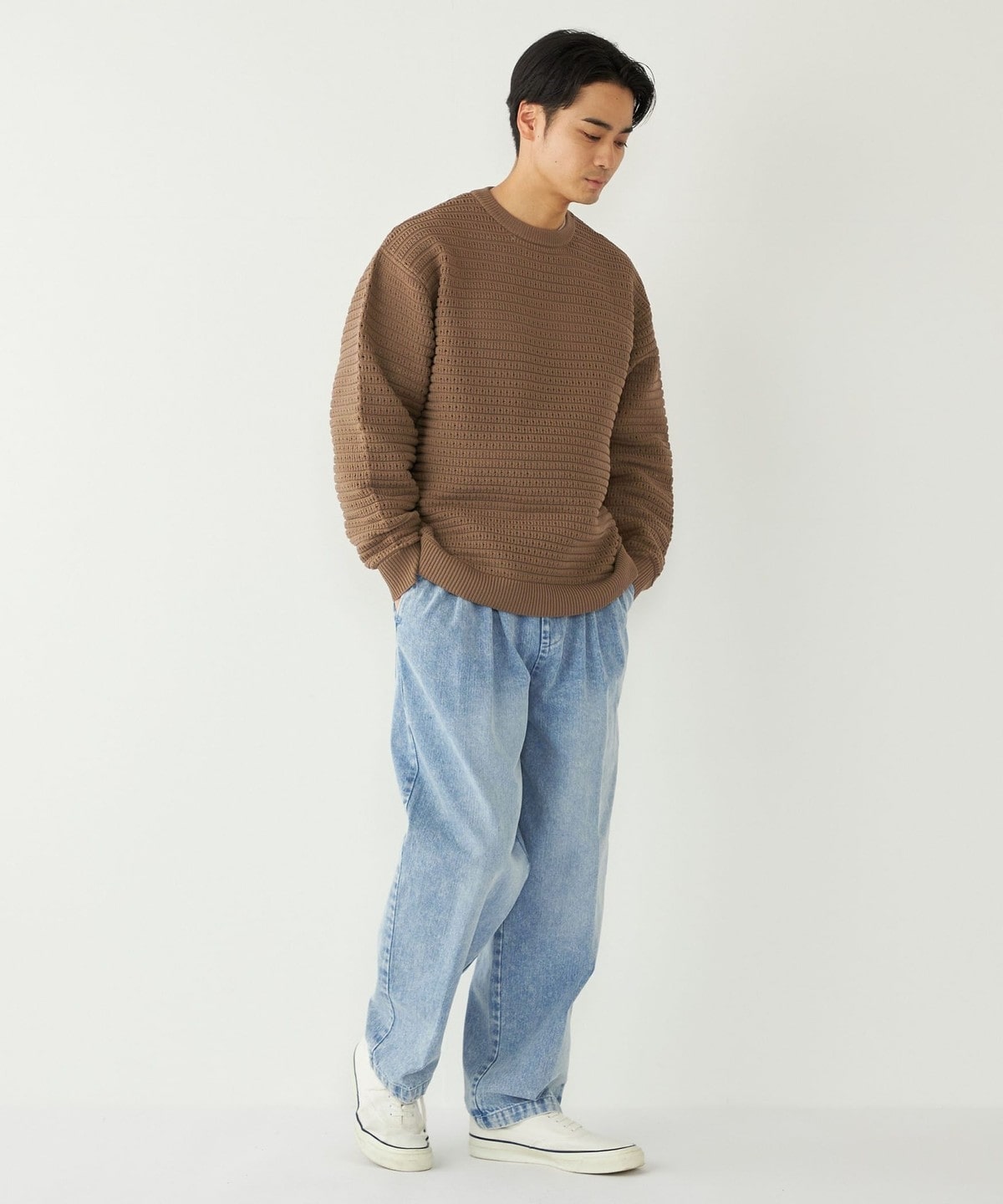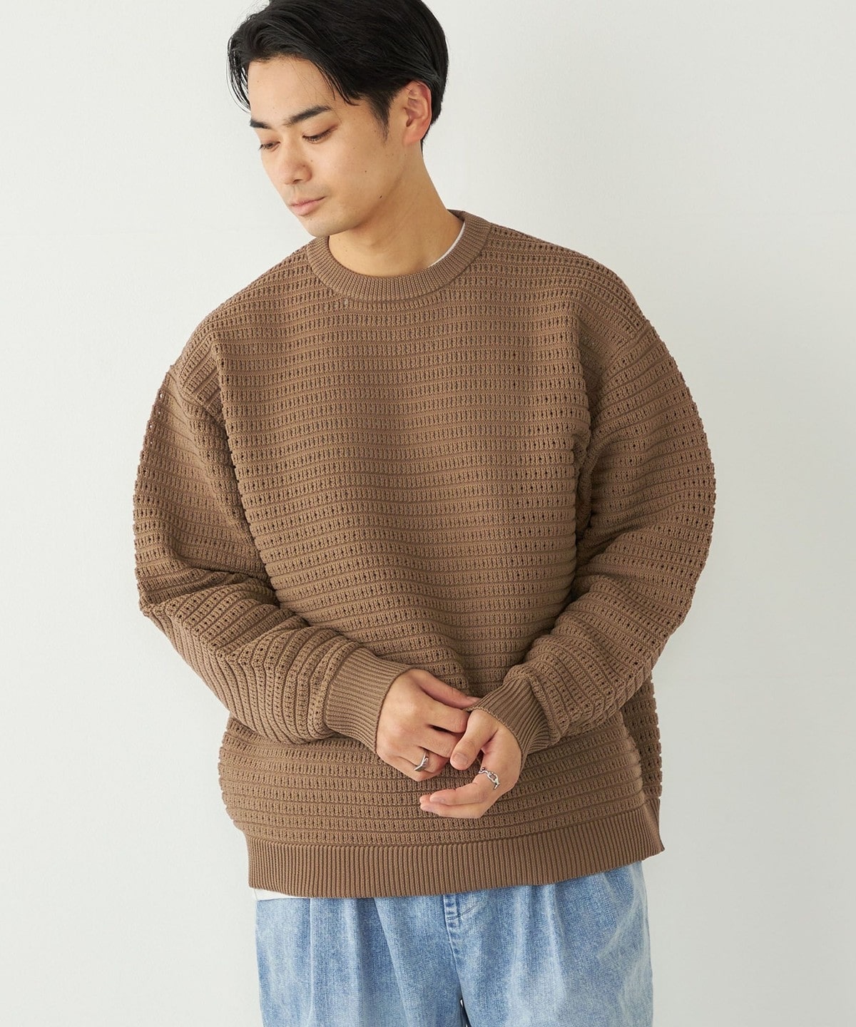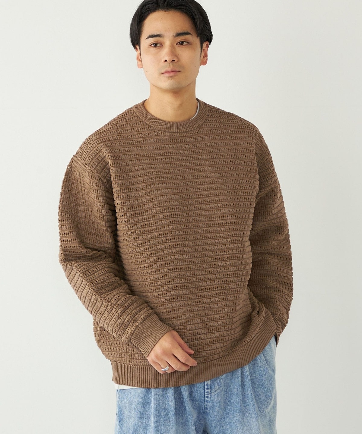 3. 《予約》SHIPS Colors:〈洗濯機可能〉スポンジ メッシュ ニット◆ ブラウン