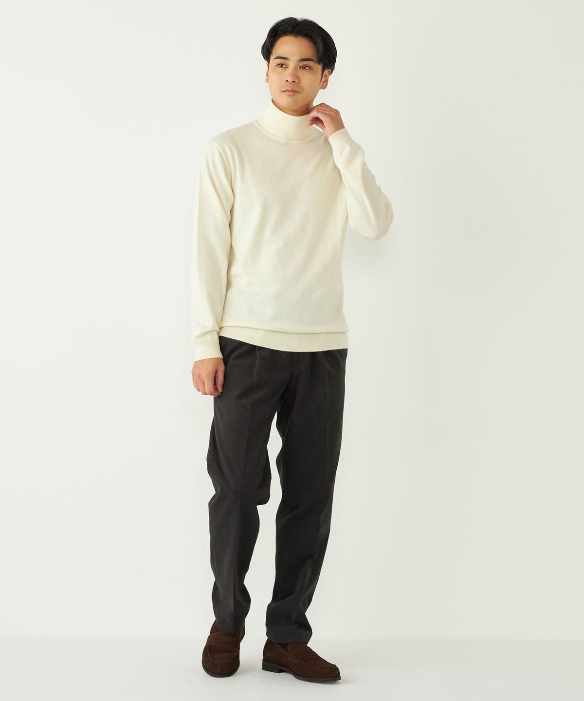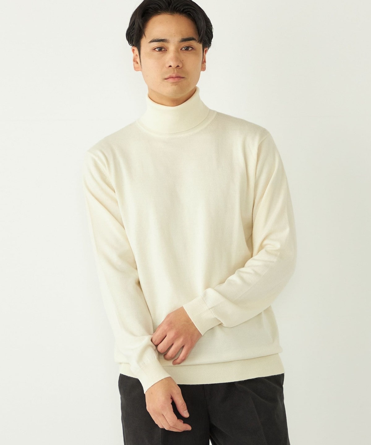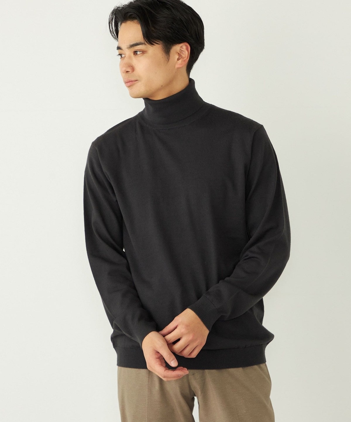 きれいめなタートルネックは一枚でのご着用も様になる1枚。