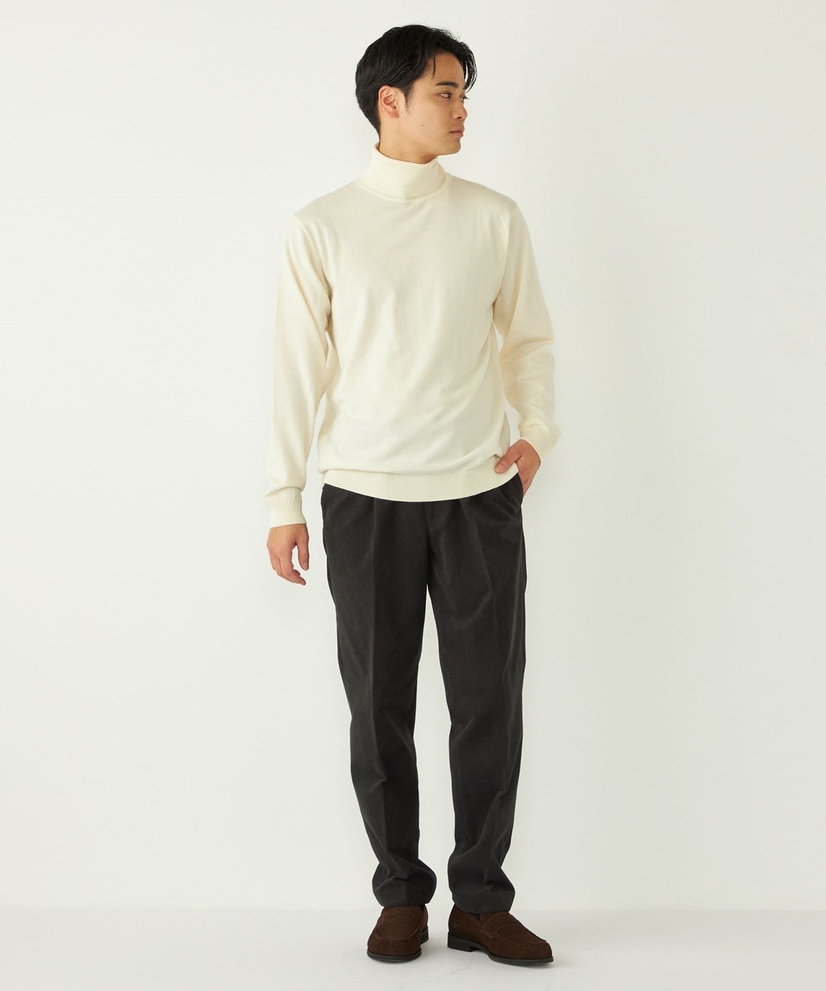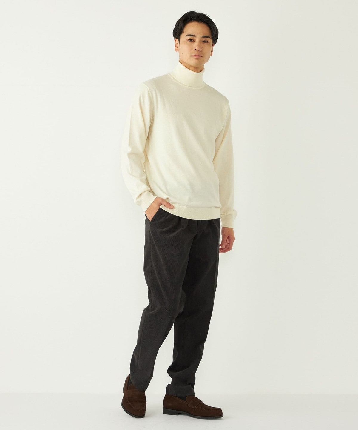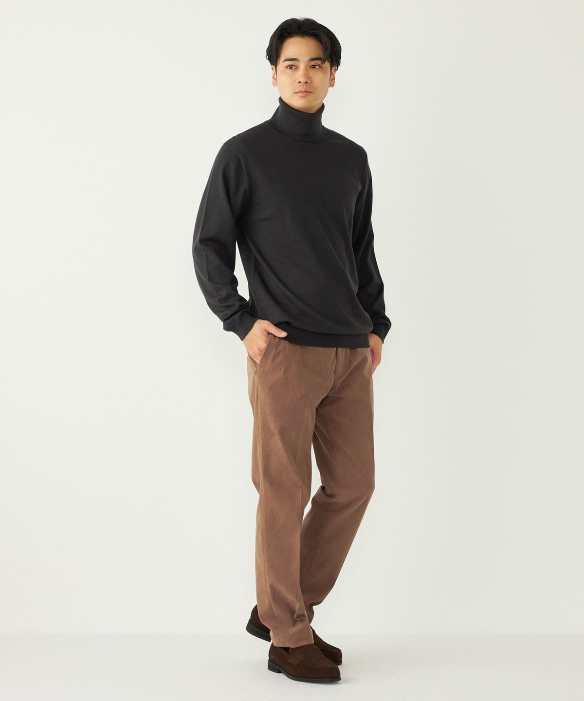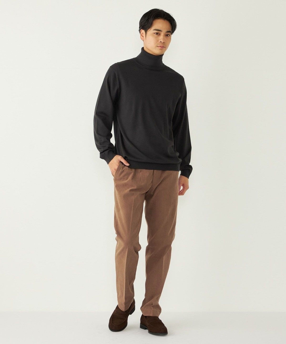 きれいめなタートルネックは一枚でのご着用も様になる1枚。