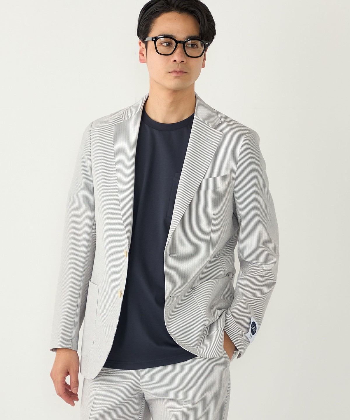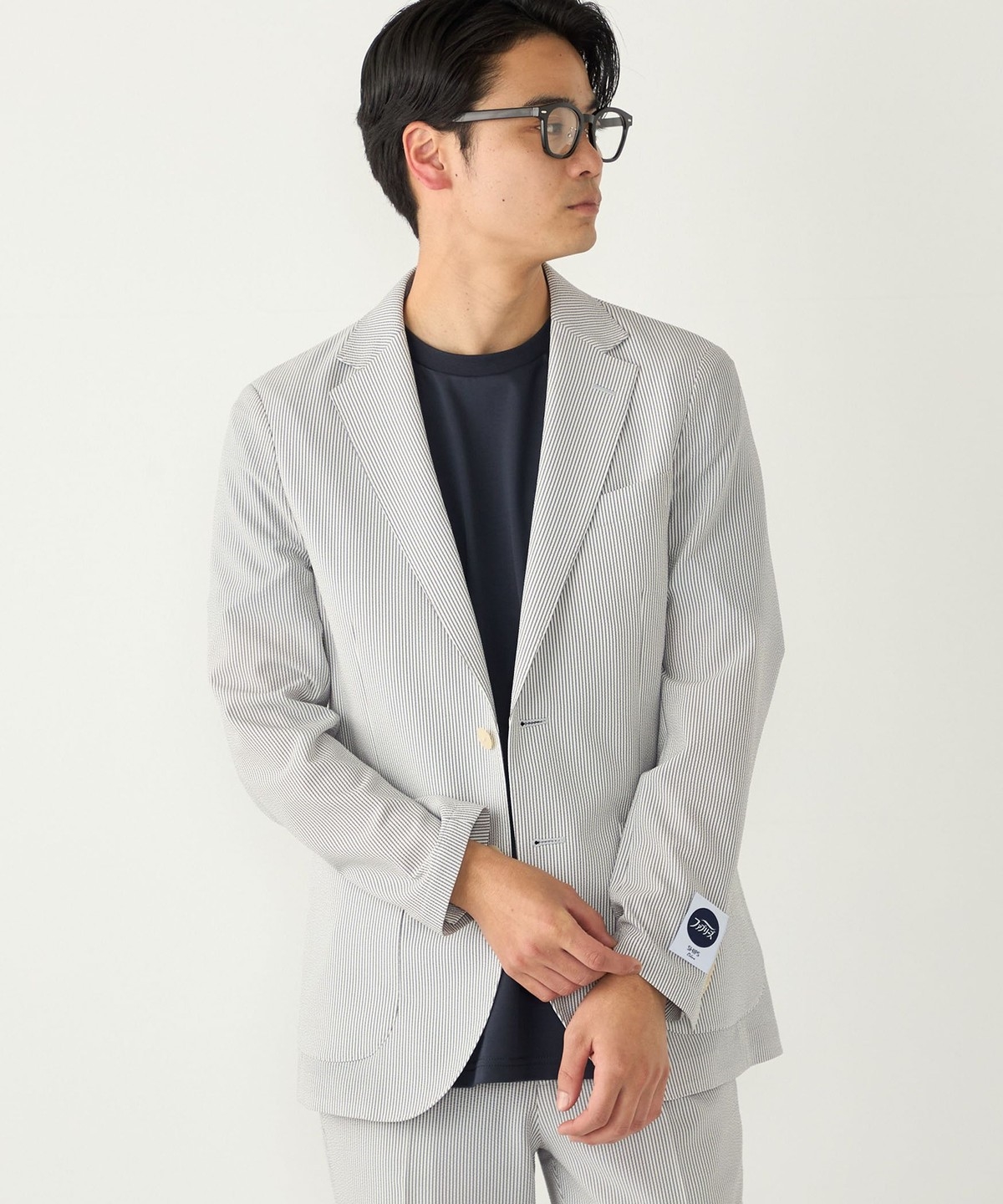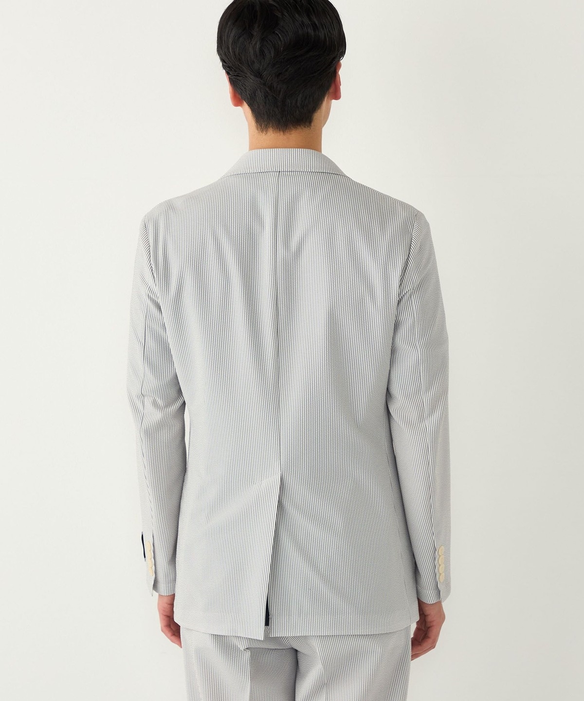 見た目にも涼やかな、シアサッカー特有の凹凸ある生地の表情もポイントです。