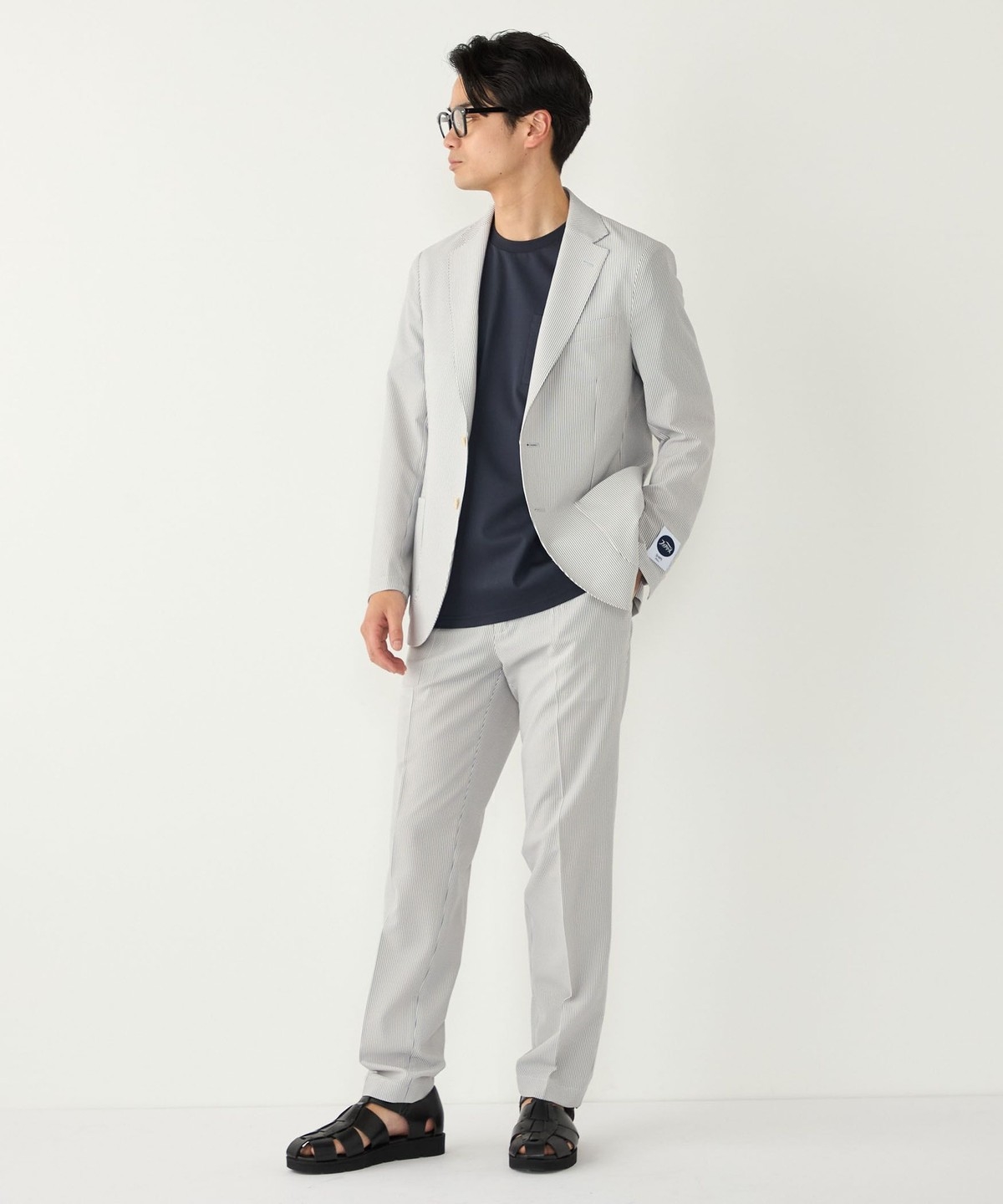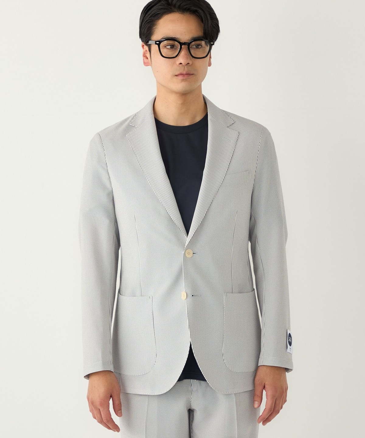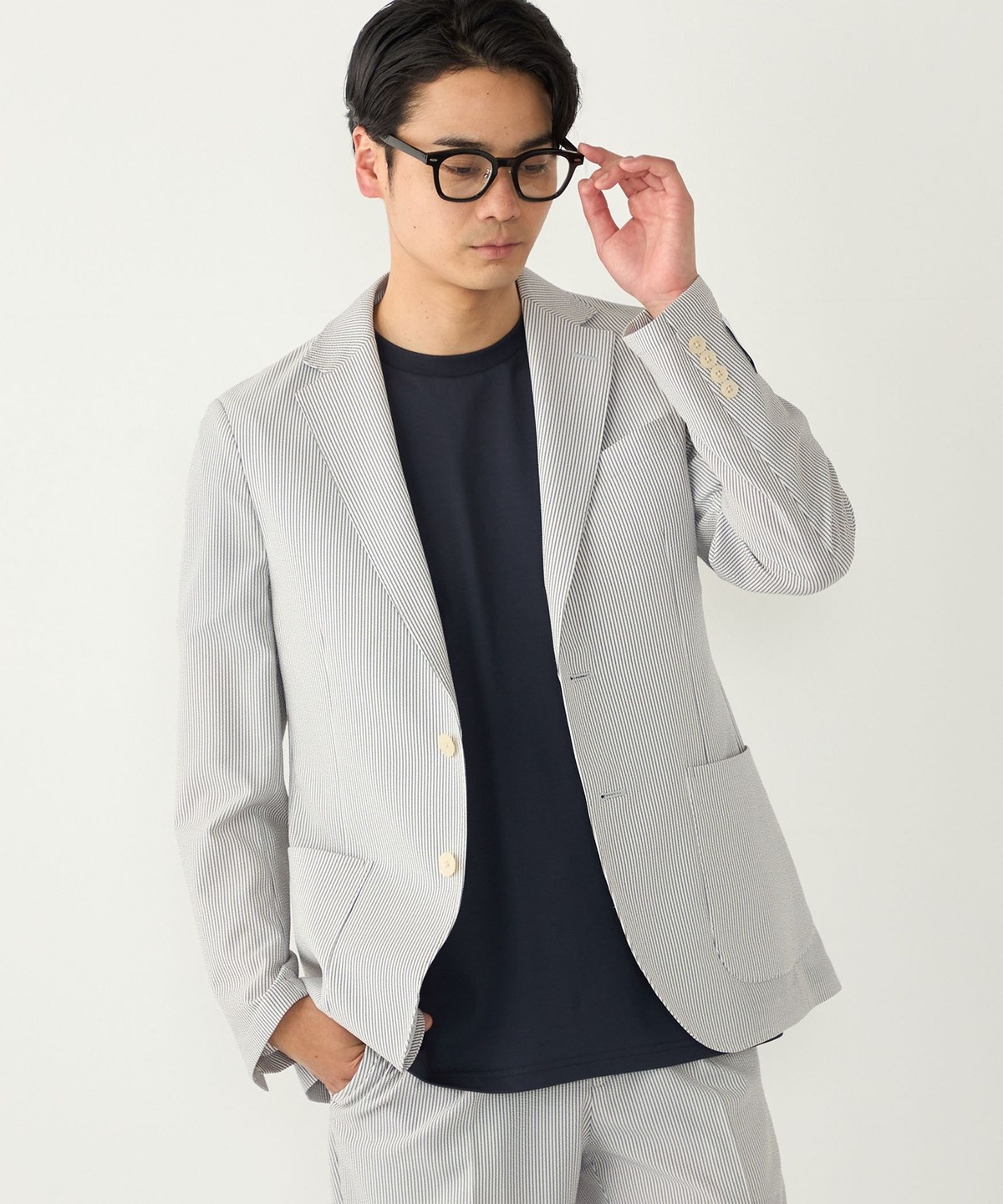 見た目にも涼やかな、シアサッカー特有の凹凸ある生地の表情もポイントです。