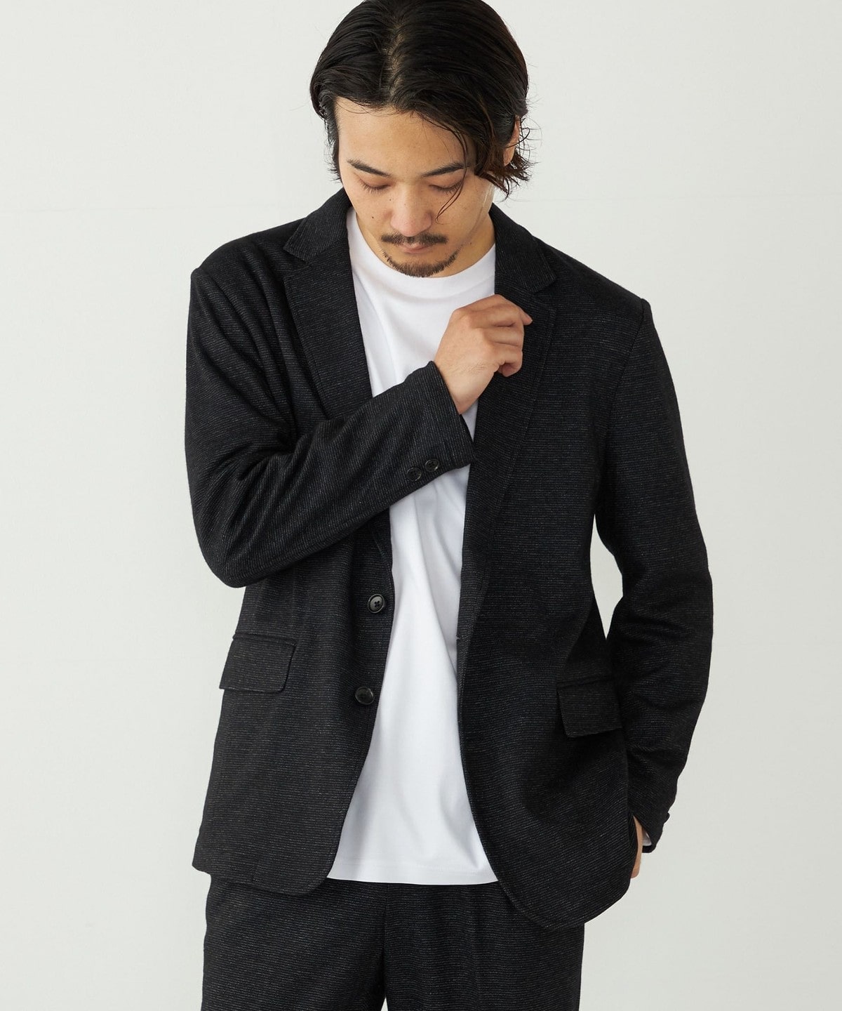 休日のコーディネートはもちろん、オフィスなどでも活躍してくれる万能なジャケットです。